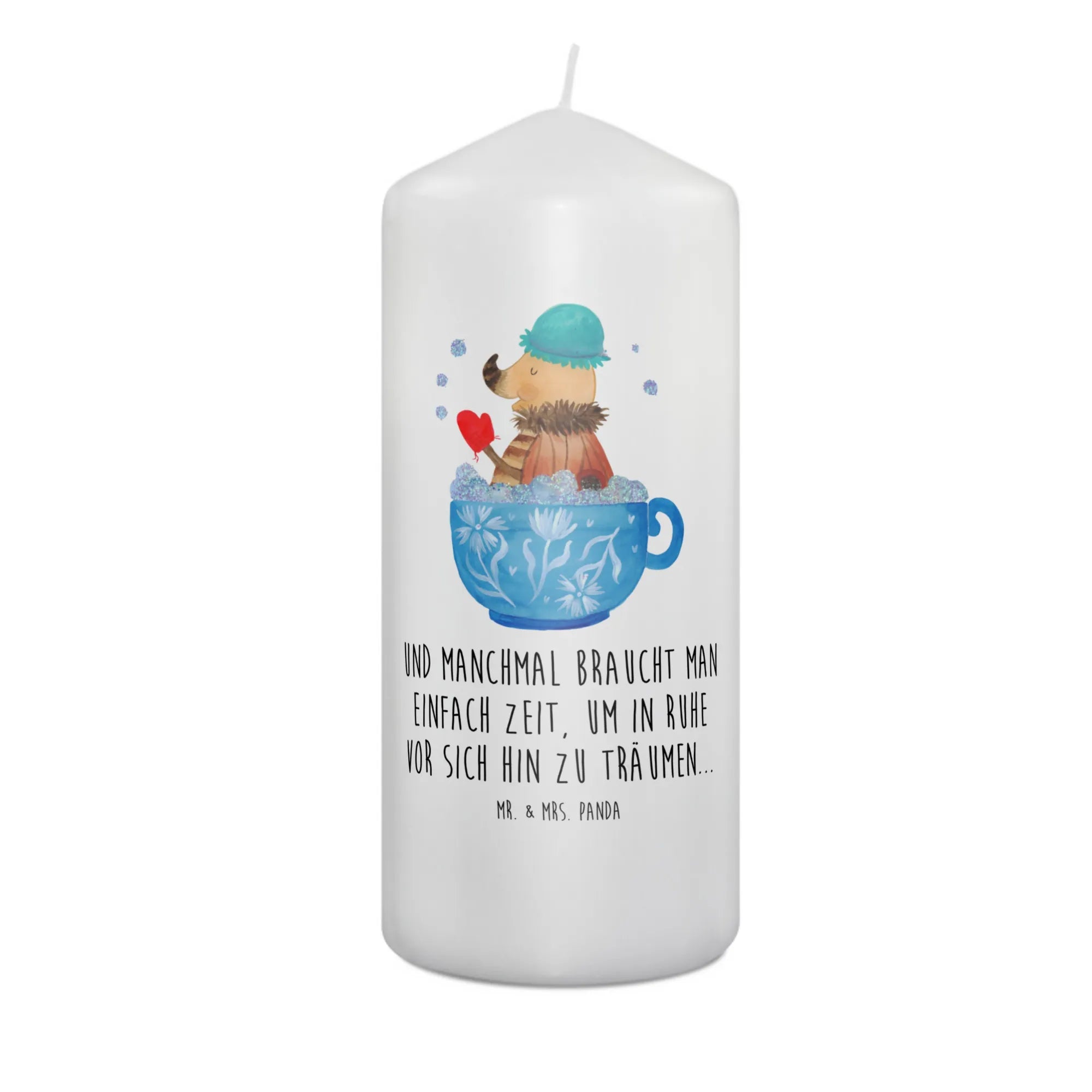 Die stilvolle Kerze von Mr. & Mrs. Panda macht aus jedem Raum ein gemütliches Zuhause! Mit 290 mm Höhe und 80 mm Durchmesser überzeugt sie durch ihr ansprechendes Design. Mit einem Gewicht von 400 g und hergestellt aus hochwertigem Paraffinwachs, spendet sie nicht nur Licht, sondern auch ein wohltuendes Ambiente. Die einzigartigen Sprüche und niedlichen Designs bringen Freude und Wärme in den Alltag. Die hauchdünne Wachsschicht schmilzt beim Abbrennen und sorgt für wunderschöne Lichteffekte. Ideal als Geschenk für Geburtstage oder Jubiläen, und auch als Trost in schweren Zeiten als Trauerkerze verfügbar. Achten Sie darauf, sanfte Reinigungsmittel zu verwenden, um die Kerze zu pflegen und ihre Schönheit zu bewahren.