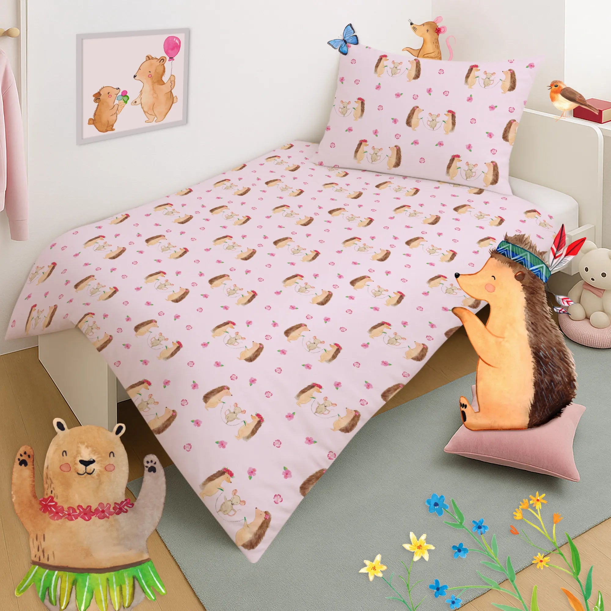 Diese Kinderbettgarnitur ist perfekt für Kleinkinder und Schulkinder. Sie eignet sich hervorragend als Geschenk zur Einschulung, Taufe oder zum Geburtstag und ist eine besondere Aufmerksamkeit von Oma und Opa, Patentante oder als Mitbringsel aus dem Kindergarten. Das fröhliche Tiermotiv zaubert gute Laune und lädt zum Träumen ein – ideal für gemütliche Vorleseabende oder entspannte Kuschelstunden.