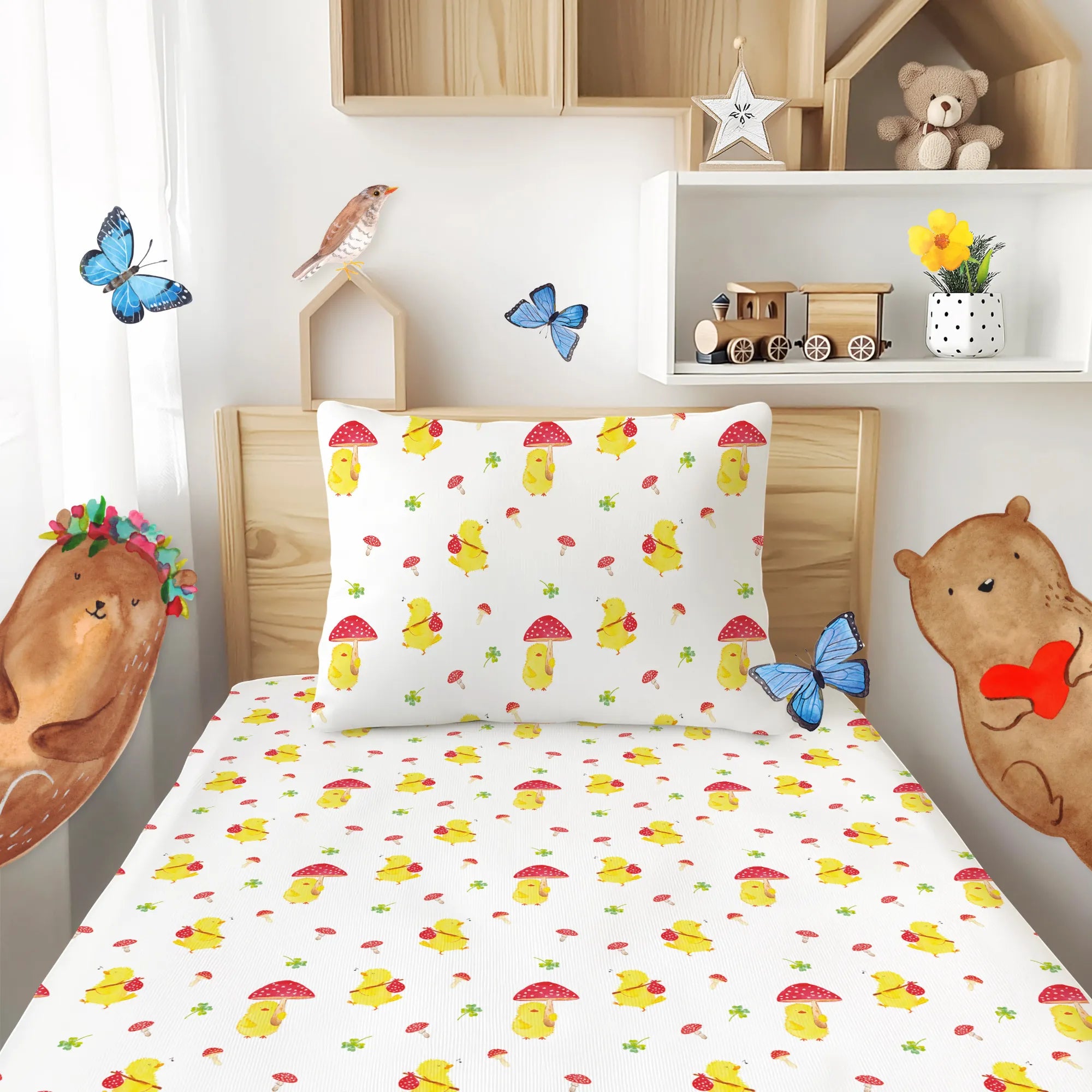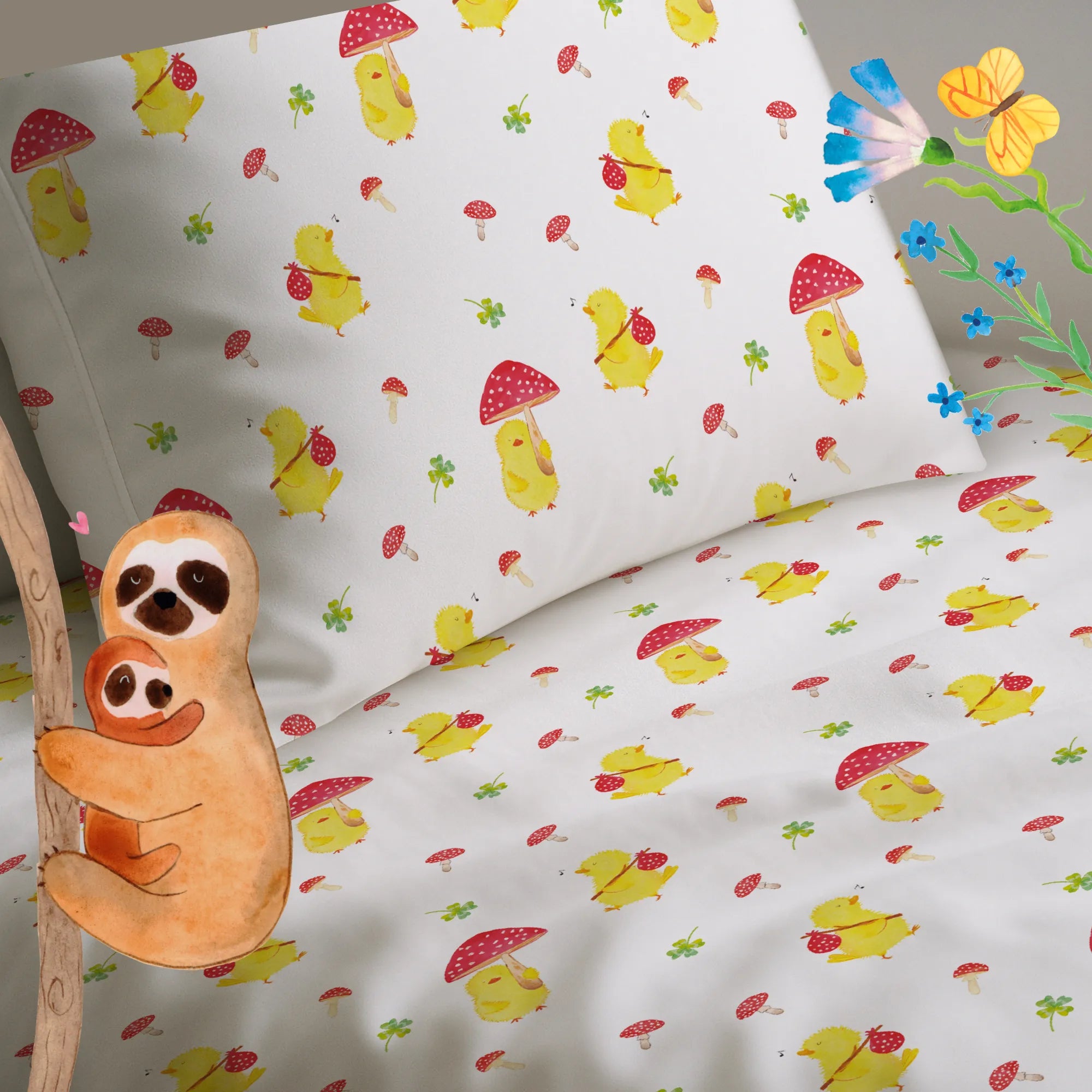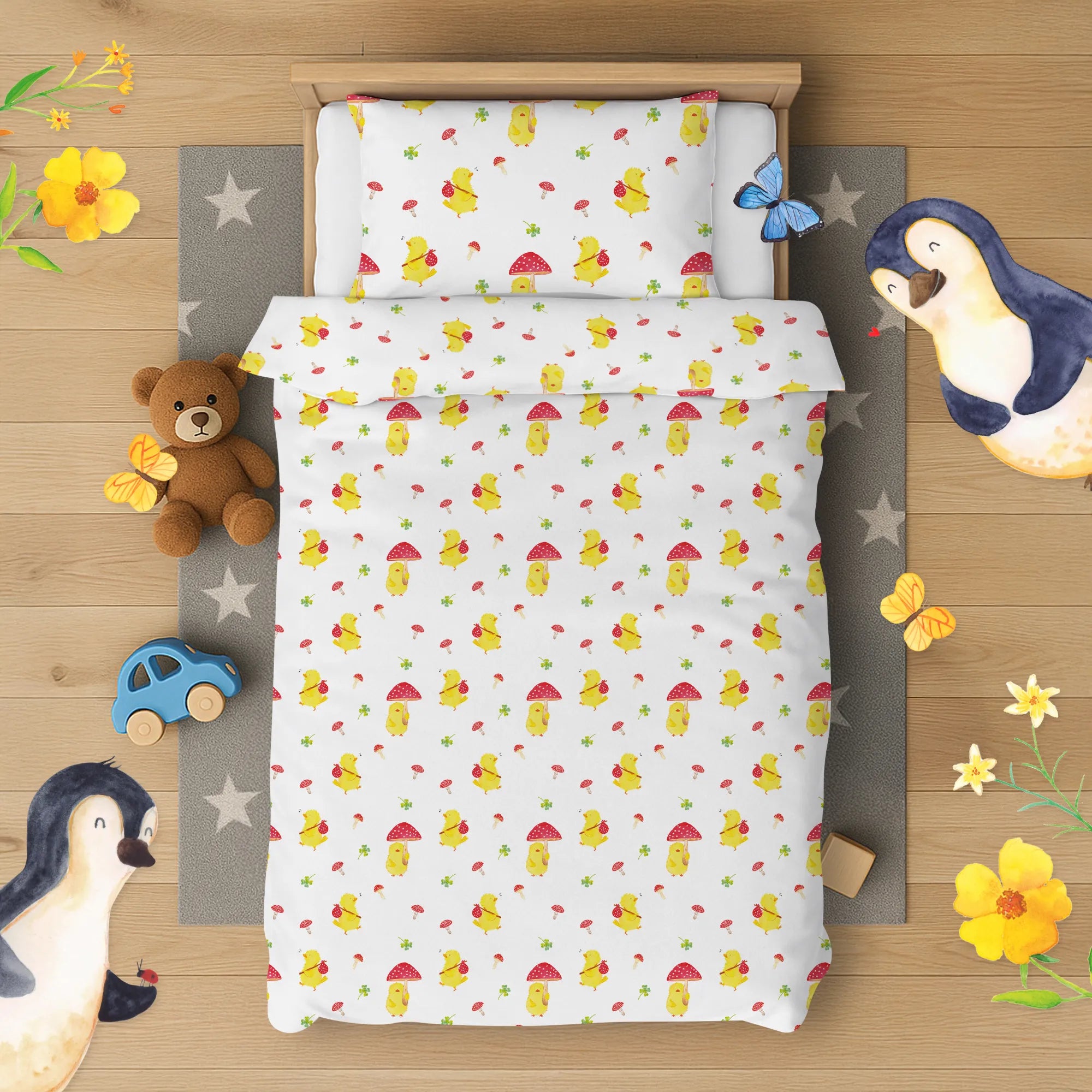 Kinderbettwäsche Küken Fliegenpilz Muster