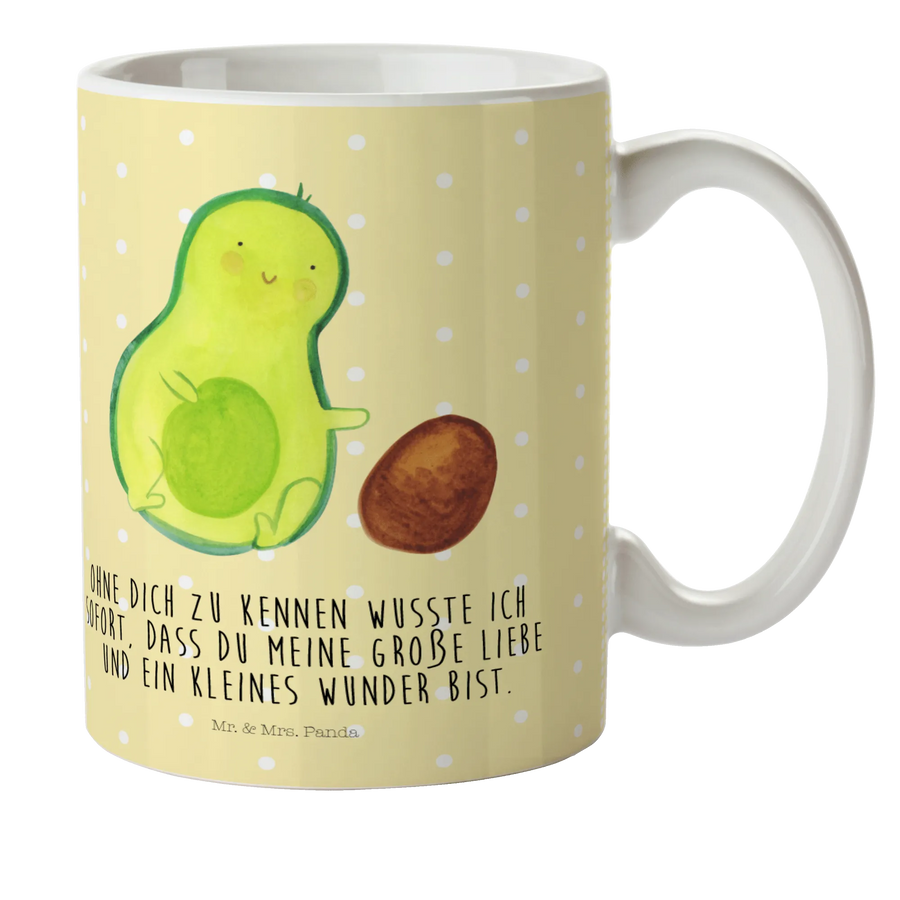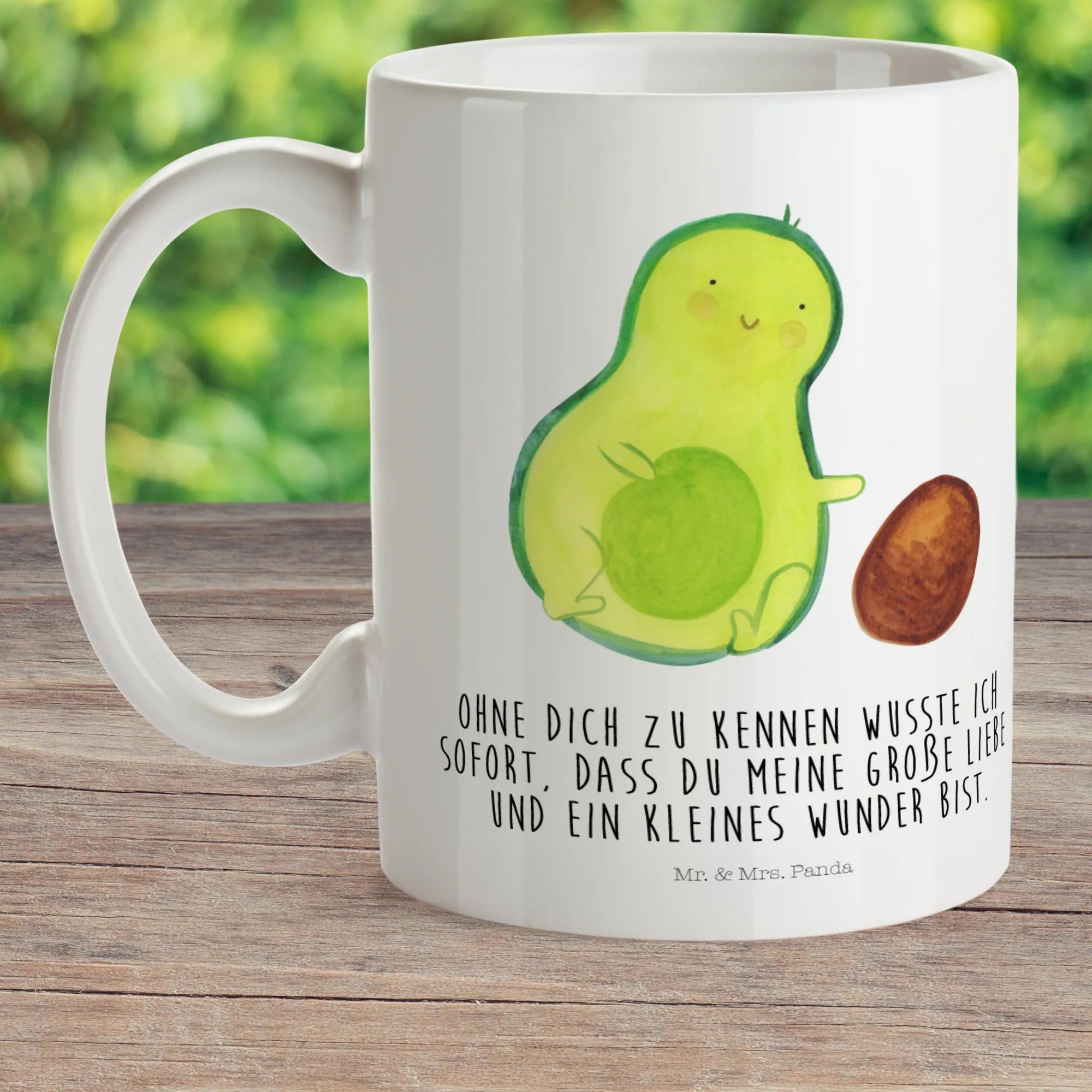 Die tolle Kindertasse "Avocado rollt Kern" von Mr. & Mrs. Panda ist das perfekte Geschenk für kleine Abenteurer und die ganze Familie! Sie ist nicht nur ein farbenfroher Trinkbecher aus robustem Kunststoff, sondern auch ein absoluter Hit für jedes Kinderzimmer oder Frühstückstisch. Mit einem liebevoll handgezeichneten Motiv einer süßen Avocado, die ihren Kern vor sich her rollt, bringt diese Tasse ein Lächeln in jedes Kinderzimmer. Der Slogan "Ohne dich zu kennen wusste ich sofort, dass du meine große Liebe und ein kleines Wunder bist" gibt der Tasse eine besonders persönliche Note und macht sie ideal als Geschenk zur Geburt, zur Babyparty oder zum ersten Geburtstag.