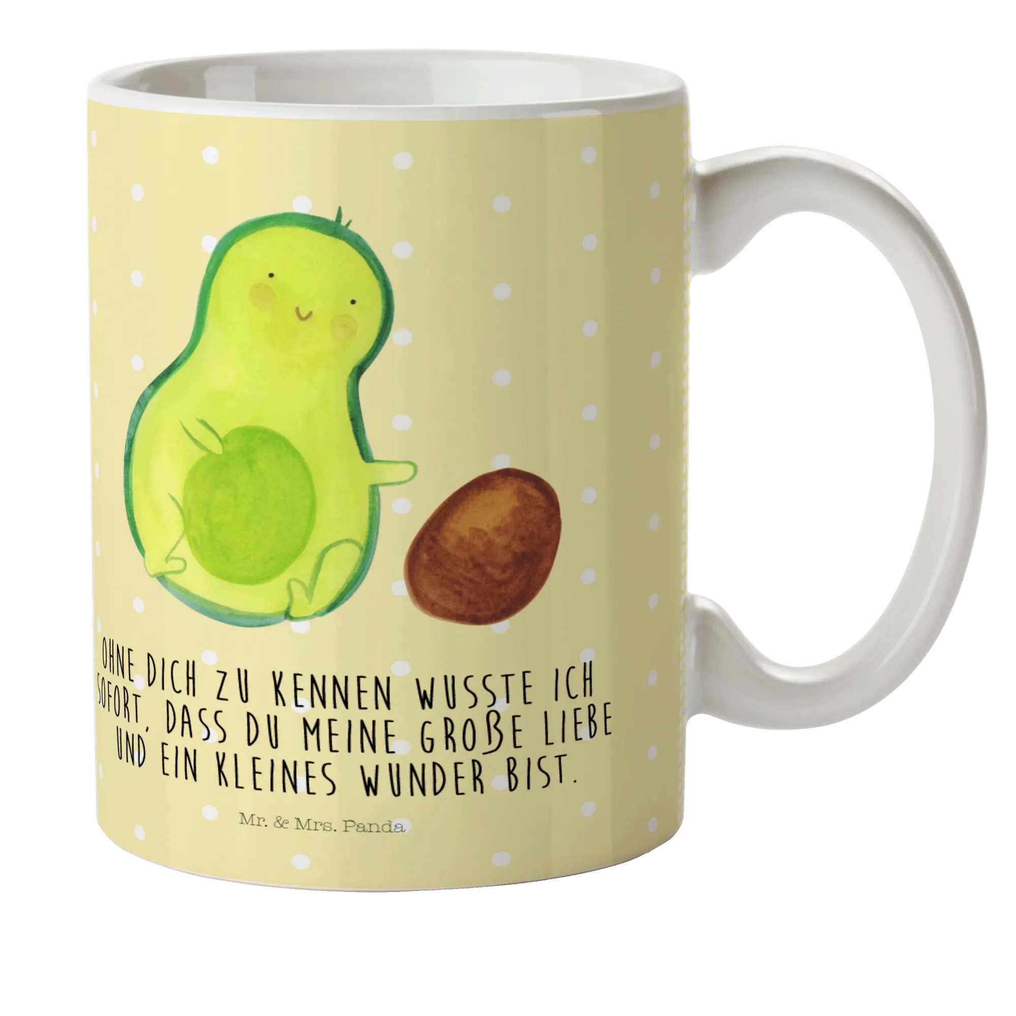 Kindertasse Avocado Kern rollt - mit Spruch - Gelb Pastell