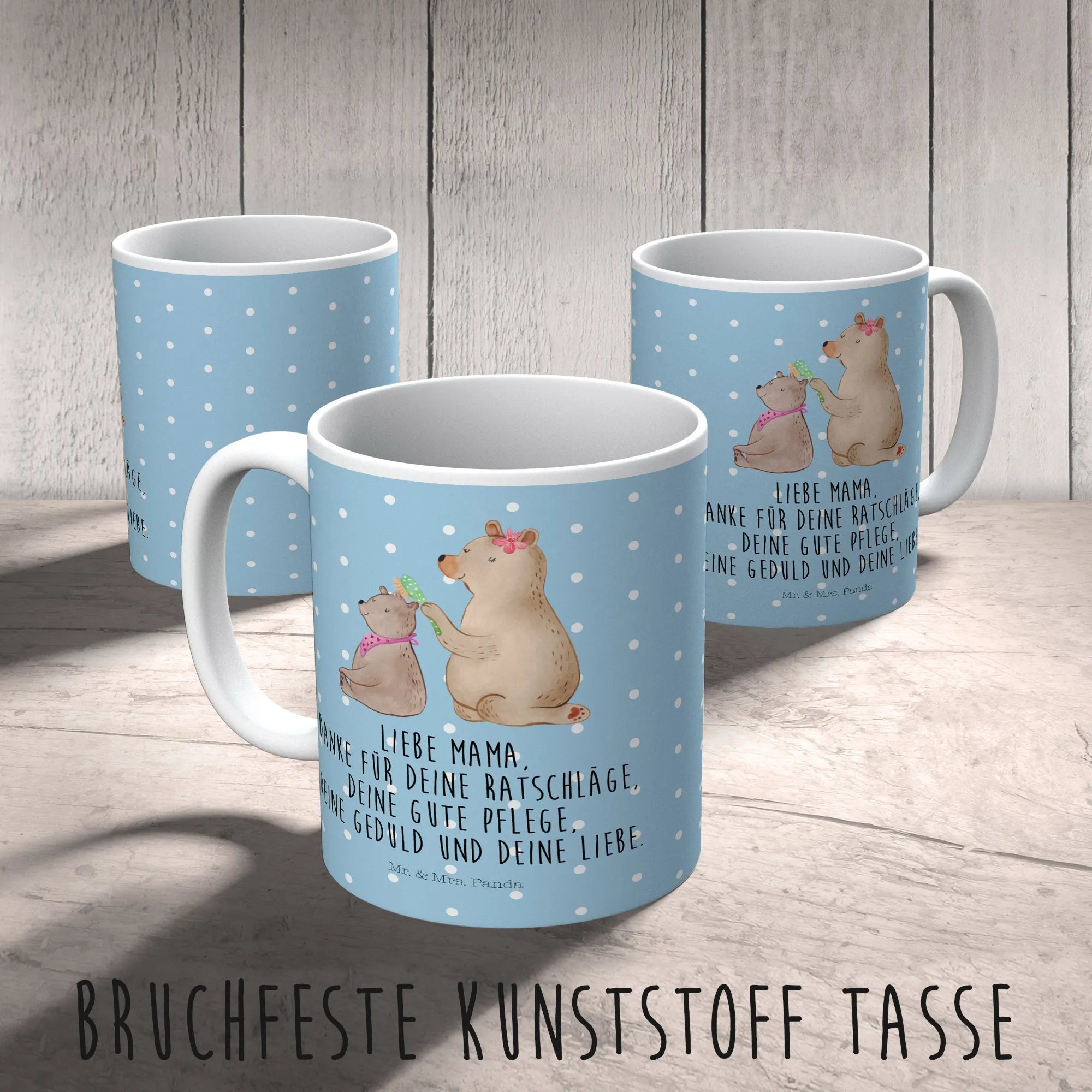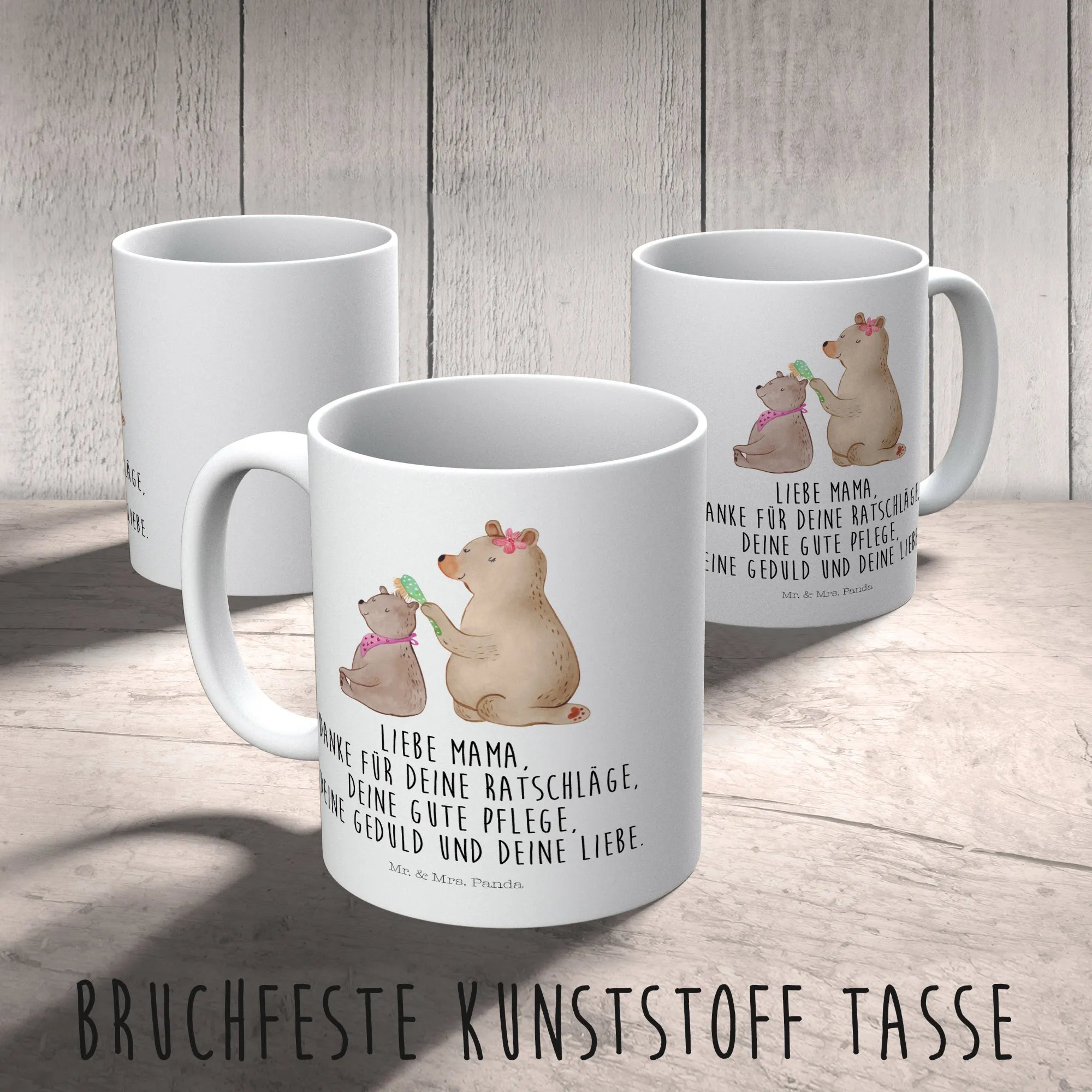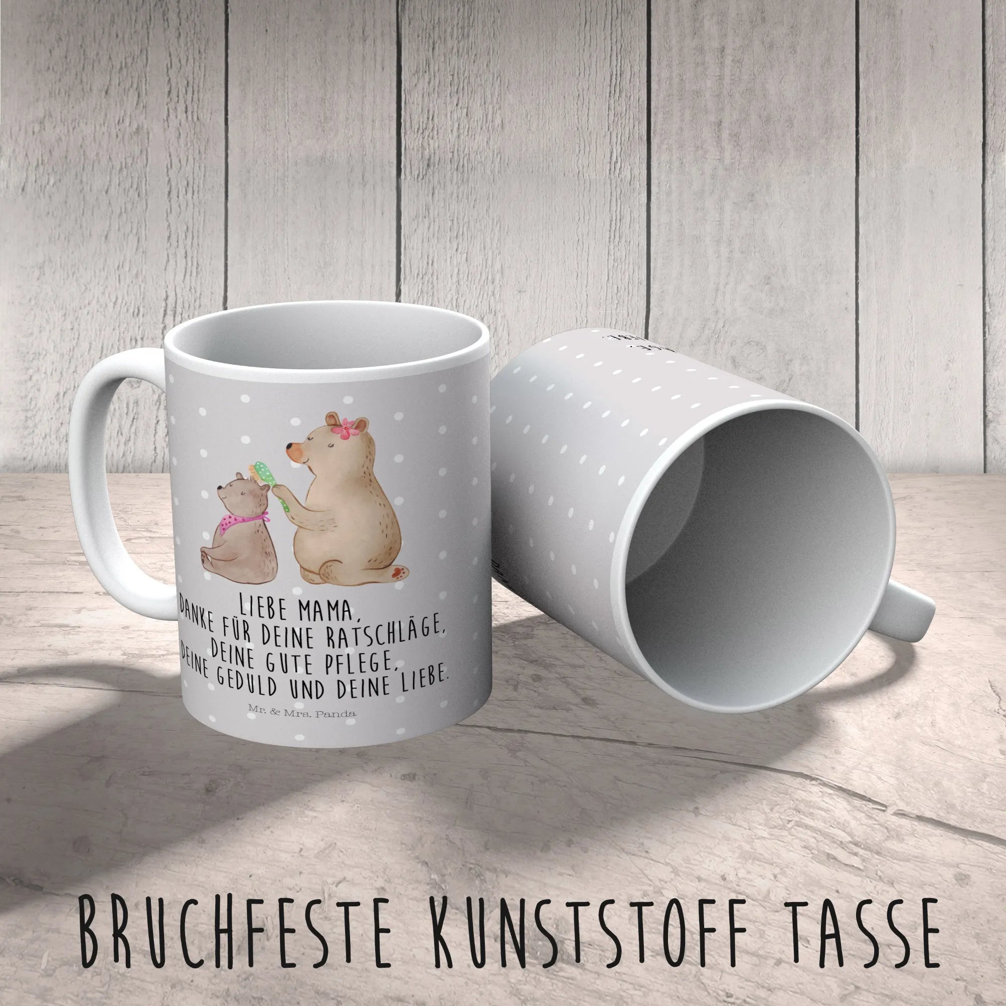 Entdecke die zauberhafte Kindertasse "Bär mit Kind" von Mr. & Mrs. Panda – das perfekte Geschenk für Mama oder für dein eigenes Kind! Diese bunte und robuste Kunststofftasse ist nicht nur bezaubernd, sondern auch äußerst praktisch.