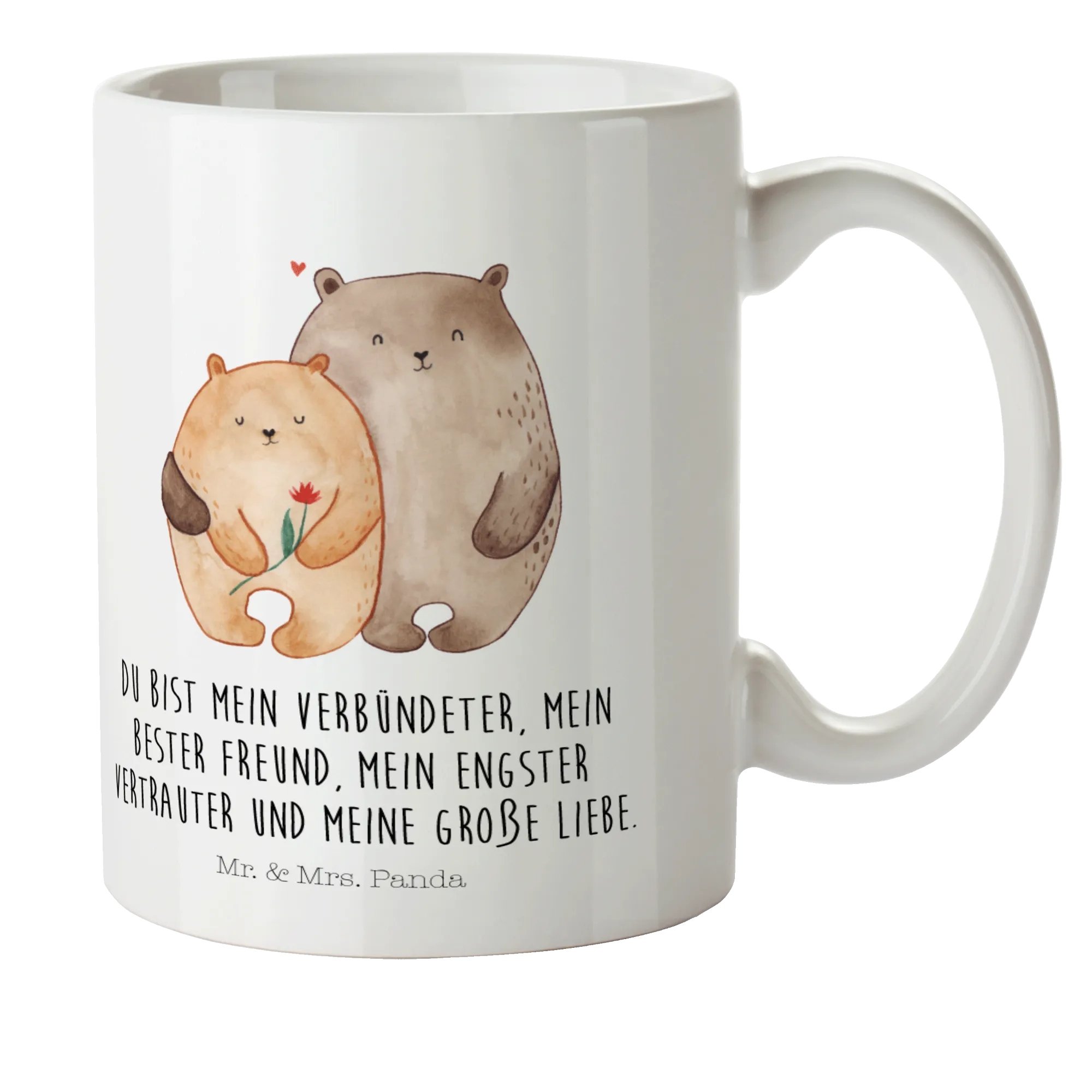Die Kindertasse "Bären Liebe" aus der liebevollen Kollektion von Mr. & Mrs. Panda ist das perfekte Geschenk für alle kleinen, aber auch großen Liebenden! Mit ihrem süßen Design und dem liebevollen Slogan "Du bist mein Verbündeter, mein bester Freund, mein engster Vertrauter und meine große Liebe" bringt sie ein Lächeln in jedes Gesicht.