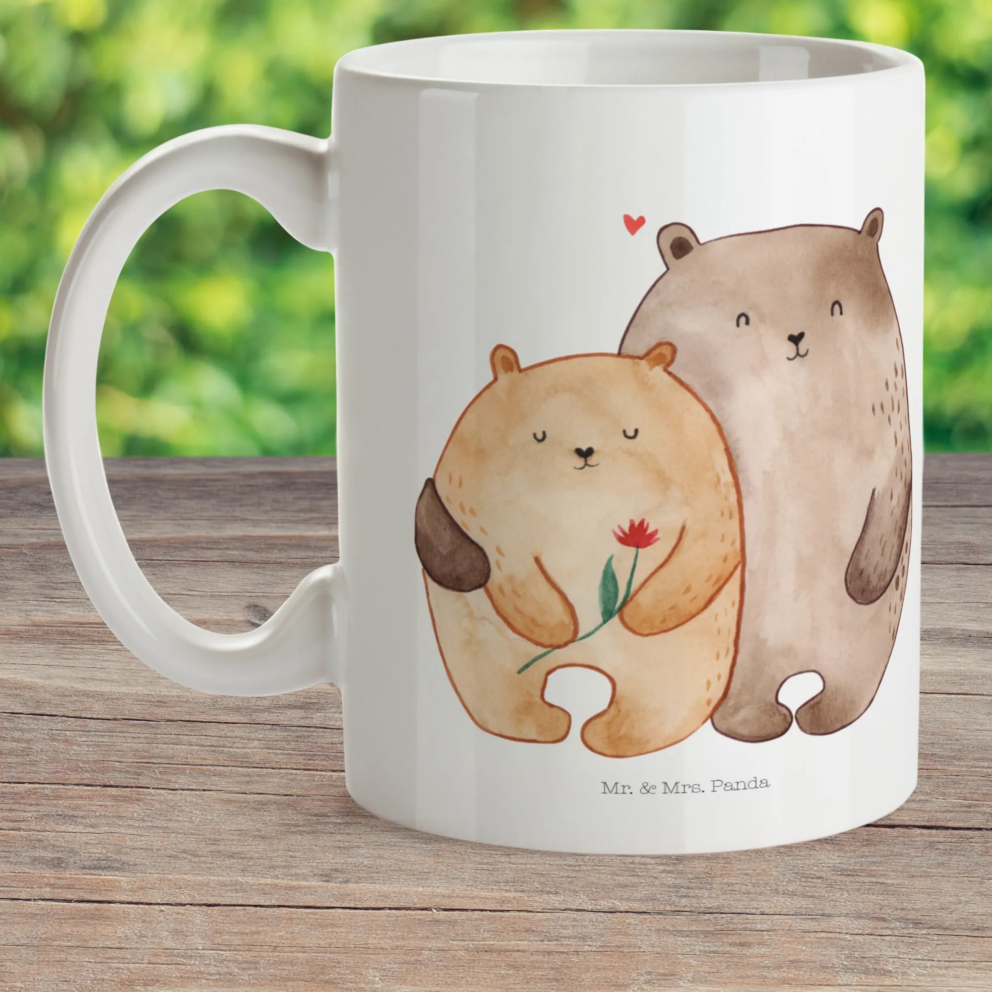 Die Kindertasse "Bären Liebe" von Mr. & Mrs. Panda ist das perfekte Geschenk für deine kleinen Lieblinge! Diese farbenfrohe und robuste Kindertasse aus weißem Kunststoff bringt nicht nur Freude beim Trinken, sondern erzählt auch eine rührende Liebesgeschichte von zwei Bären, die sich ganz innig verbunden fühlen.