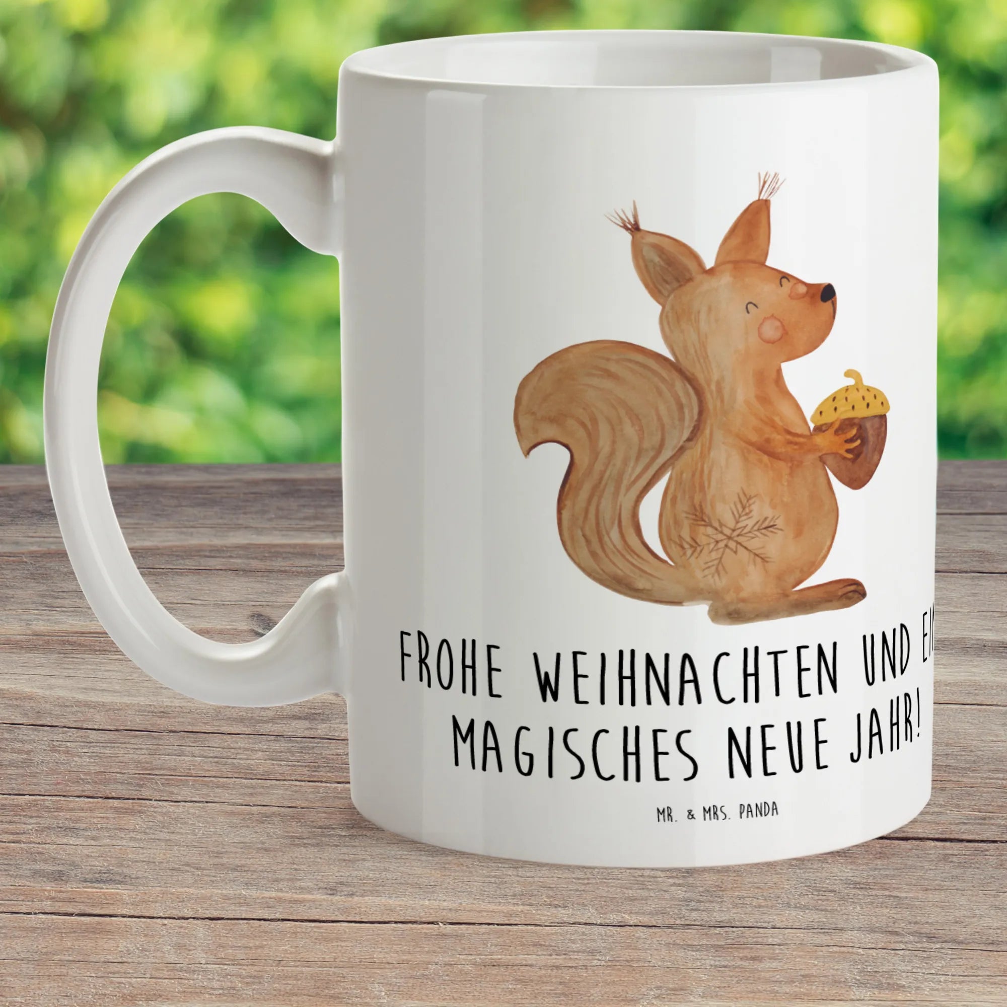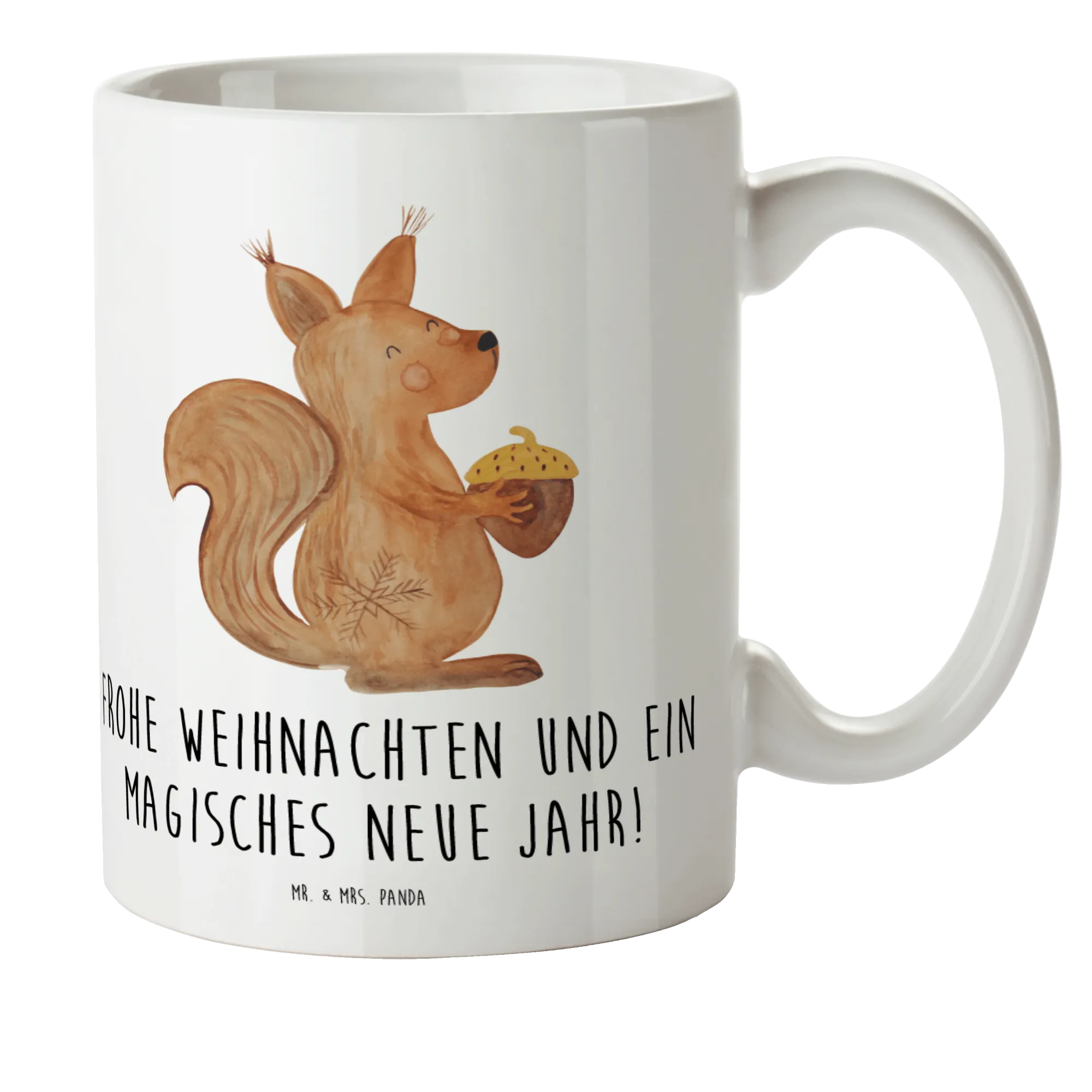 Auf der Tasse prangt ein liebevoll gestaltetes Eichhörnchen, das mit einer Eichel in der Pfote fröhlich in die Welt schaut – einfach entzückend! Der brilliante Druck sorgt dafür, dass das Motiv auch nach vielen Benutzungen noch strahlend schön bleibt. Der Spruch "Frohe Weihnachten und ein magisches neues Jahr!" macht die Tasse zu etwas ganz Besonderem und untermalt die besinnliche Zeit perfekt.