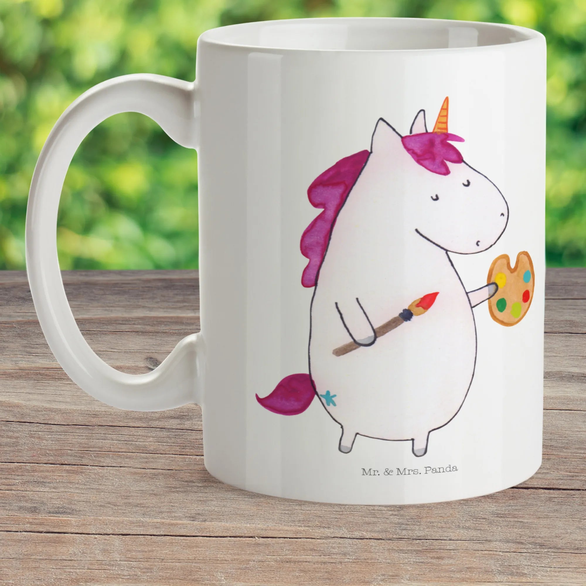 Die Kindertasse mit dem zauberhaften Einhorn-Motiv "Einhorn Künstler" aus der Einhorn - Kollektion von Mr. & Mrs. Panda ist das perfekte Geschenk für alle kleinen und großen Künstler! Ob für den Kindergarten, eine Übernachtung beim Camping oder einfach zu Hause beim Malen – diese farbenfrohe und bruchfeste Tasse ist ideal für alle kreativen Köpfe, die ihre Welt nach ihren Vorstellungen gestalten möchten.