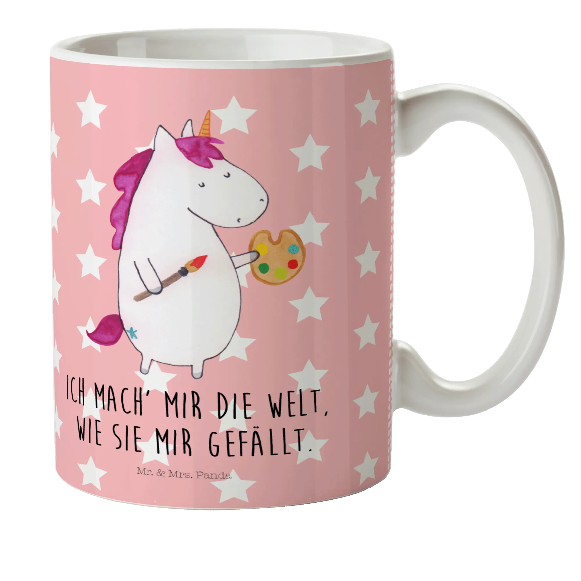 Kindertasse Einhorn Künstler - mit Spruch - Rot Pastell