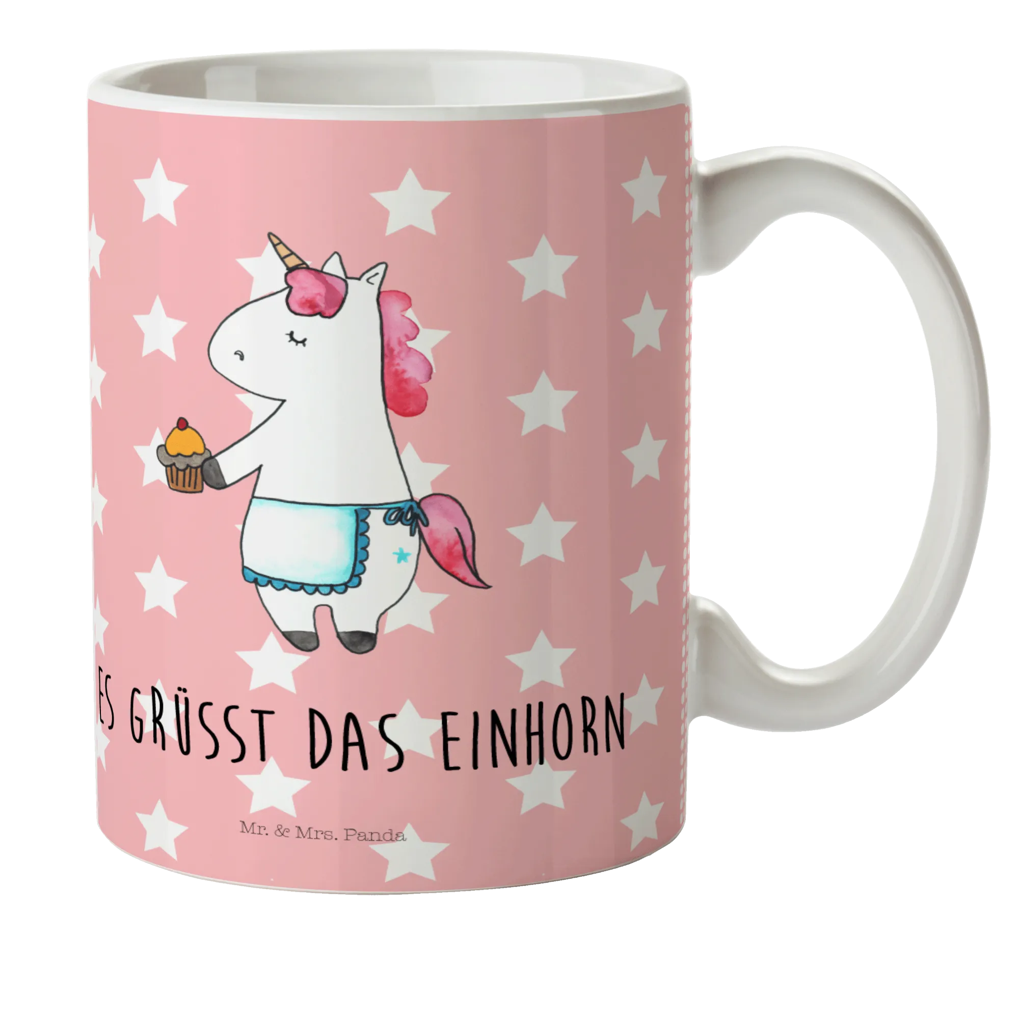 Das liebevoll handgezeichnete Motiv zeigt ein niedliches Einhorn, das stolz einen selbstgebackenen Muffin präsentiert. Wer freut sich nicht über Grüße von einem Einhorn? Die Tasse ist mit dem süßen Slogan "Es grüsst das Einhorn." versehen, der jede Trinkpause zu etwas ganz Besonderem macht.