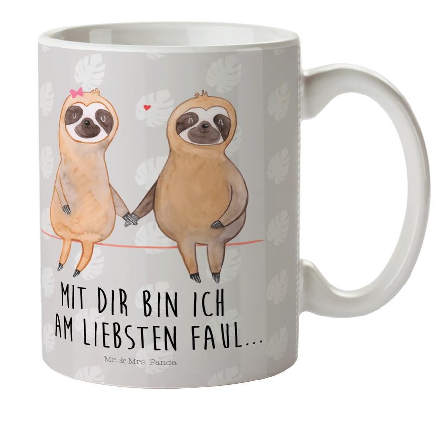 Auf dieser Tasse prangt ein niedliches Aquarell-Gemälde zweier Faultiere, die sich an den Händen halten und mit dem süßen Slogan 'Mit dir bin ich am Liebsten faul...' laden sie dazu ein, gemeinsam entspannende Zeiten zu genießen.