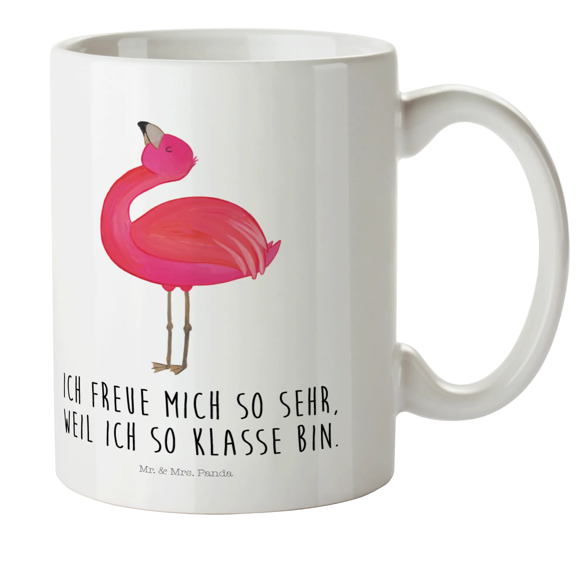 Verwöhne die Kleinen oder Dich selbst mit einem Stück Sommer an jedem Tag. Jedes Mal, wenn Du aus dieser schönen Tasse trinkst, fühlst Du Dich ein Stück mehr wie ein stolzer Flamingo! Immerhin, "Ich freue mich so sehr, weil ich so klasse bin" – das bringt auch der Slogan, der dich beim Trinken begleiten wird.