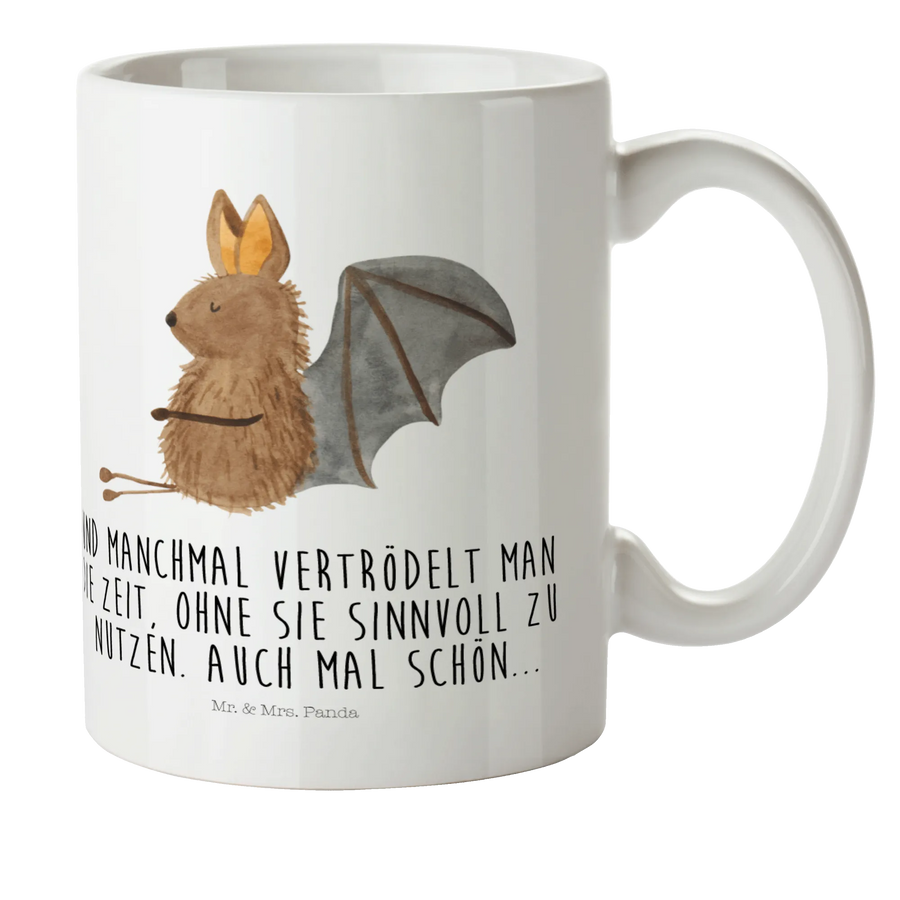 Kindertasse Fledermaus Sitzen - mit Spruch - Weiß