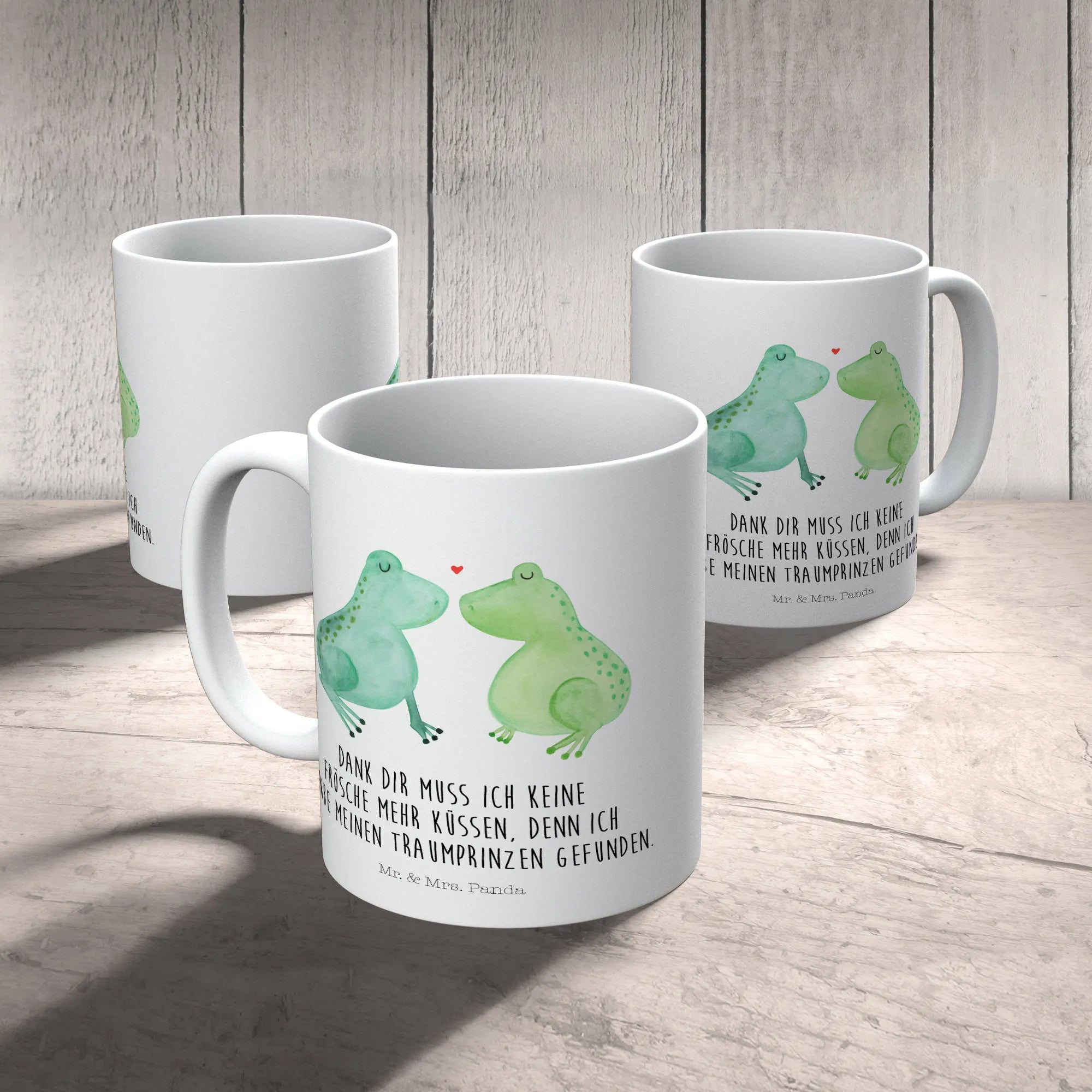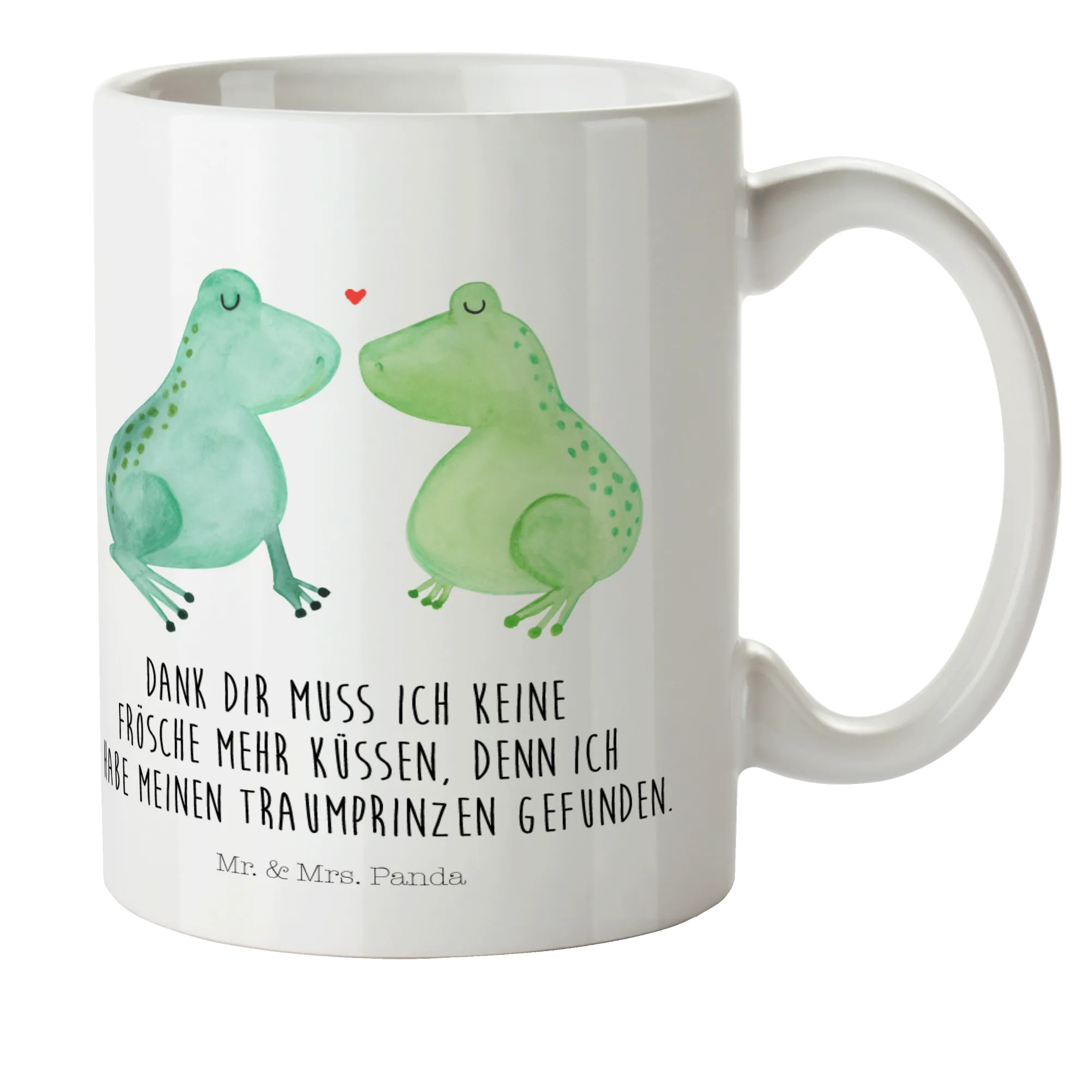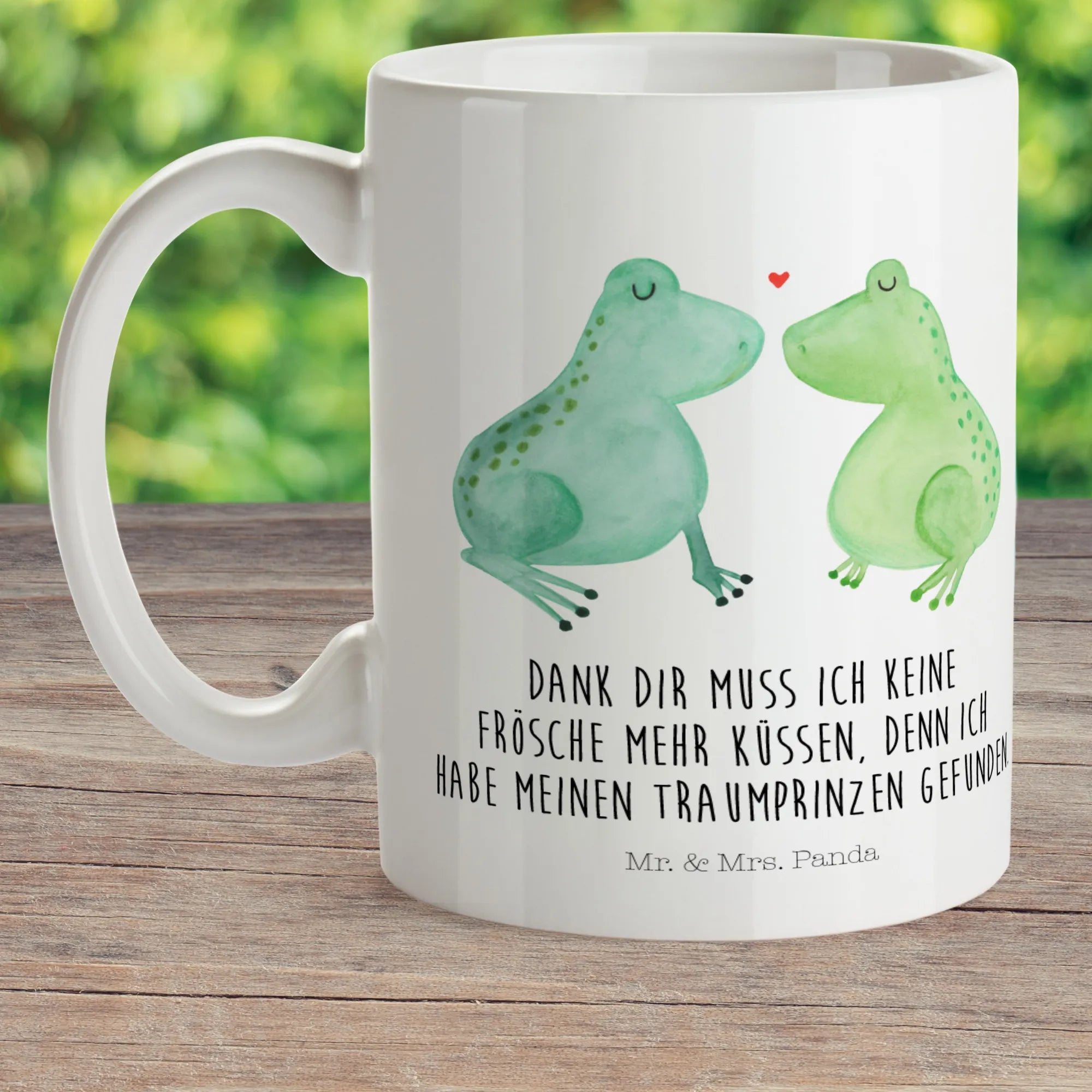 Das schicke Design mit dem Spruch "Dank dir muss ich keine Frösche mehr küssen, denn ich habe meinen Traumprinzen gefunden." macht diese Tasse zu einem süßen Liebesbeweis und auch zu einem tollen Geschenk für beste Freunde, als kleines Mitbringsel für den Jahrestag oder zum Geburtstag.