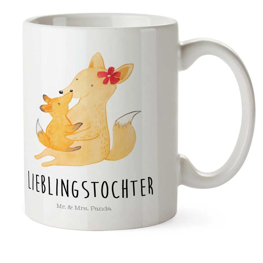 Auf der Tasse prangt ein liebevolles Motiv von einer Füchsin mit ihrem Kind, das Geborgenheit und Zuneigung ausstrahlt. Die Füchse, in warmen Gelb- und Orangetönen, sind ein wahrer Blickfang und schaffen eine familiäre Atmosphäre. Besonders toll ist, dass die Tasse mit dem Spruch „Lieblingstochter“ versehen ist, was sie zu einem ganz besonderen Geschenk macht.