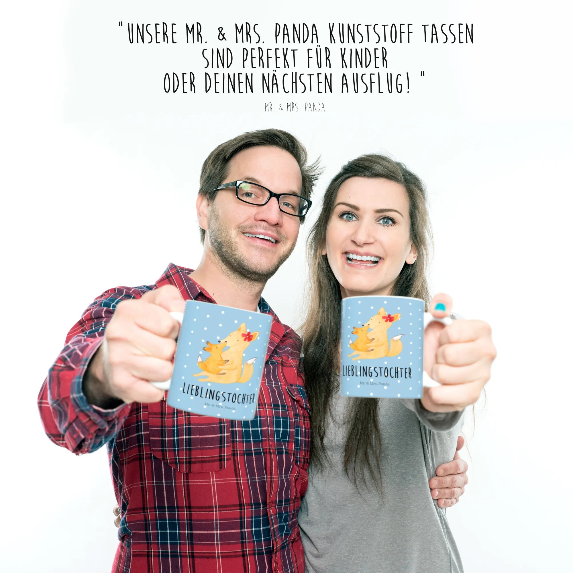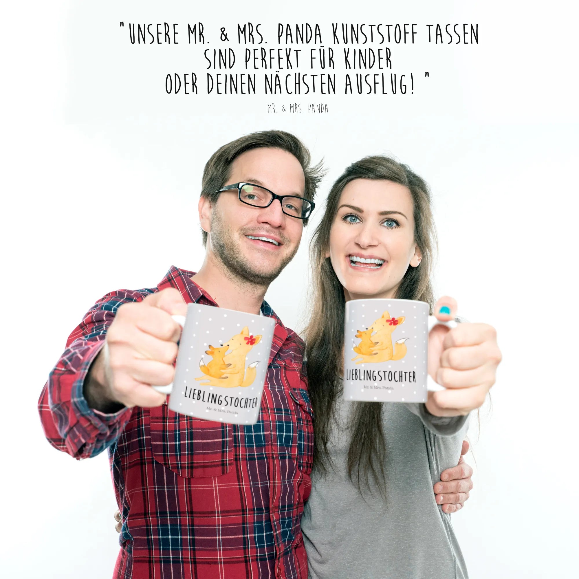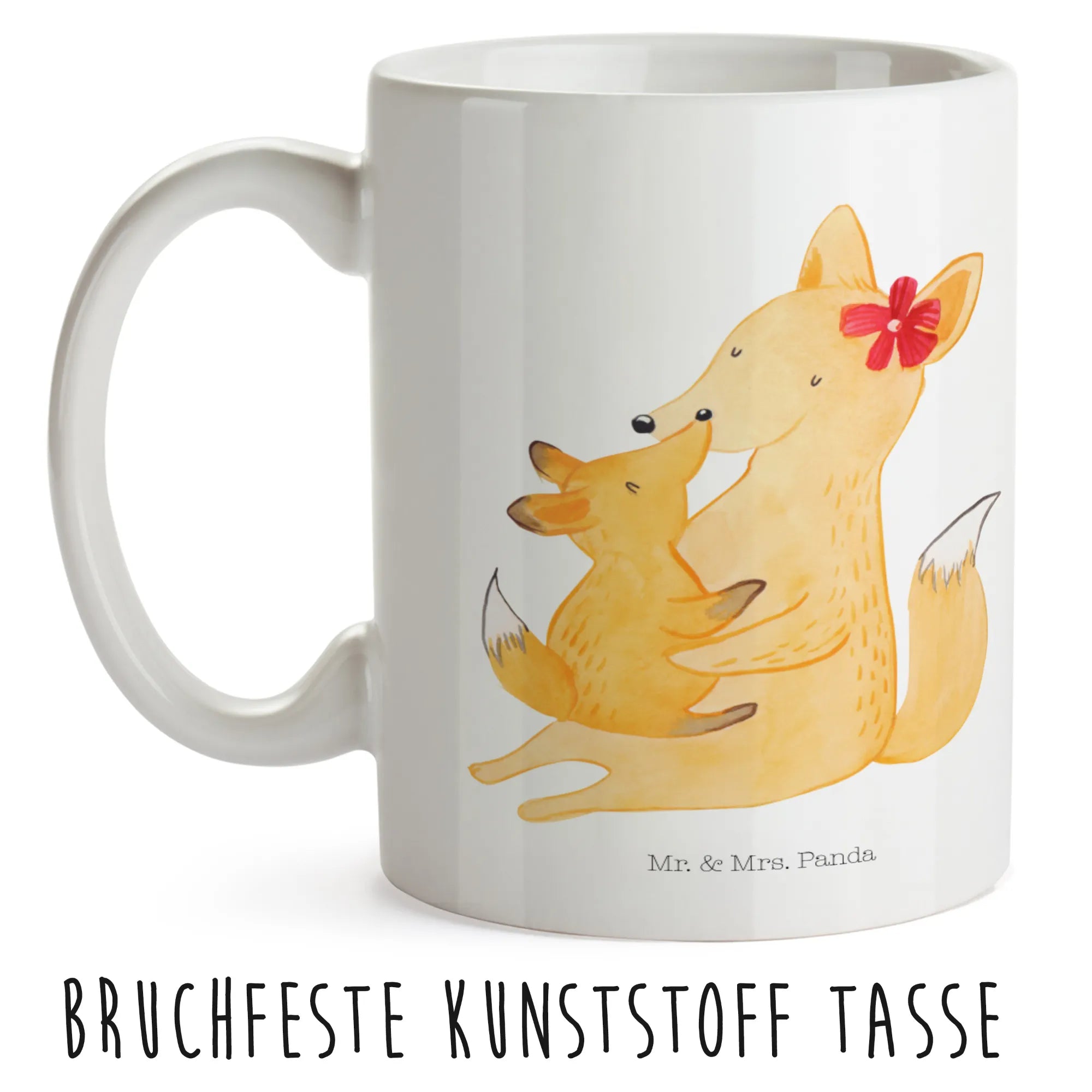 Die Kindertasse Fuchs Mama & Kind aus der Familie Kollektion von Mr. & Mrs. Panda ist das perfekte Geschenk für Deine Lieblingstochter! Diese farbenfrohe und bruchfeste Tasse aus hochwertigem Kunststoff ist nicht nur schön, sondern auch extrem praktisch für den Alltag im Kindergarten.
