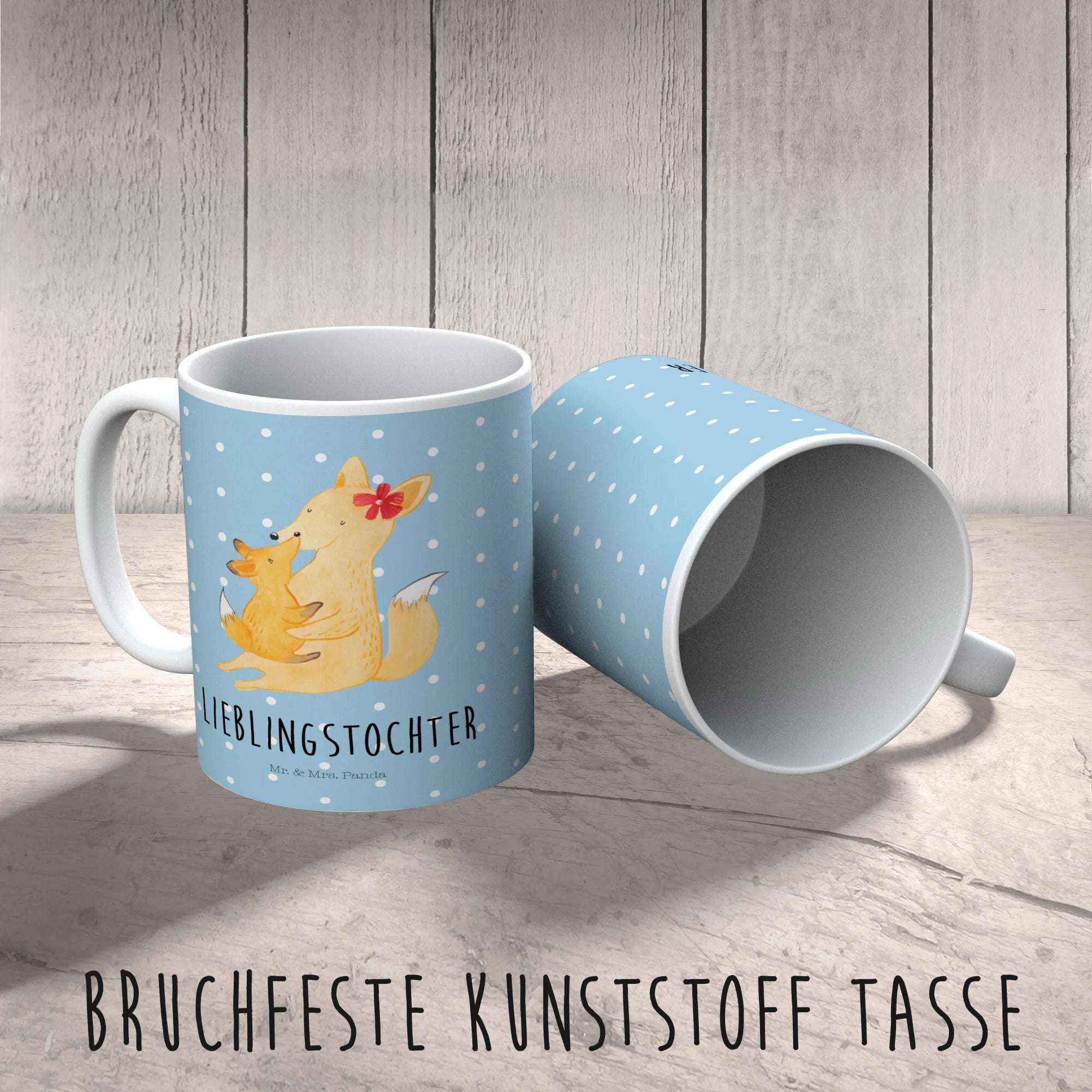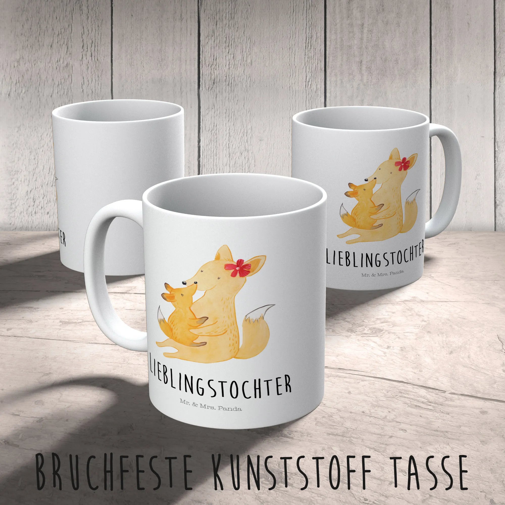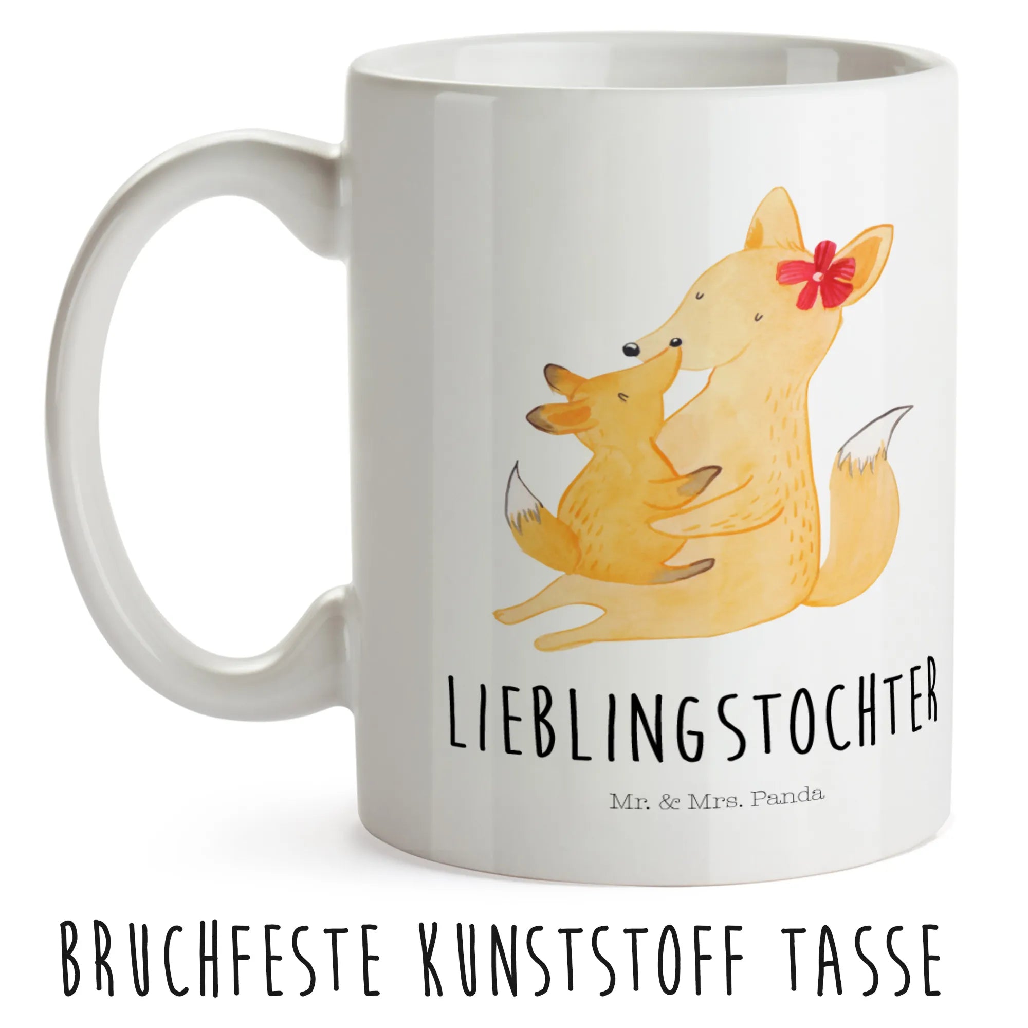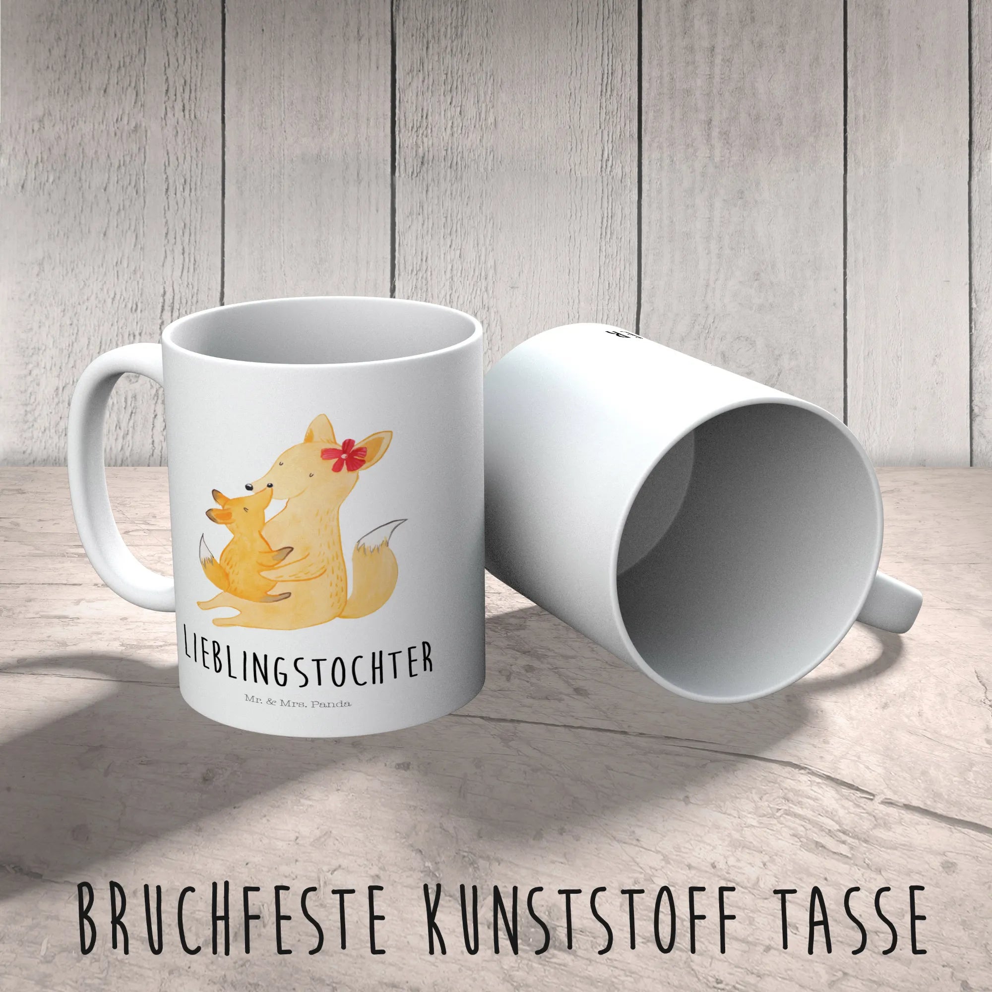 Die Kindertasse Fuchs Mama & Kind aus der Familie Kollektion von Mr. & Mrs. Panda ist das perfekte Geschenk für Deine Lieblingstochter! Diese farbenfrohe und bruchfeste Tasse aus hochwertigem Kunststoff ist nicht nur schön, sondern auch extrem praktisch für den Alltag im Kindergarten.
