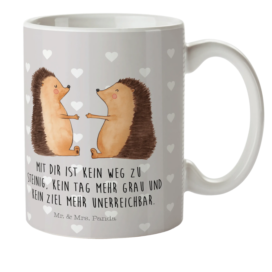 Entdecke die wunderbare Kindertasse "Igel Liebe" von Mr. & Mrs. Panda, die dir und deinem kleinen Schatz jeden Tag ein Lächeln ins Gesicht zaubern wird. Diese farbenfrohe und robuste Kindertasse ist perfekt für Kinder und wurde mit einem liebevollen Motiv von zwei verliebten Igeln designed, die sich glücklich zueinander neigen.