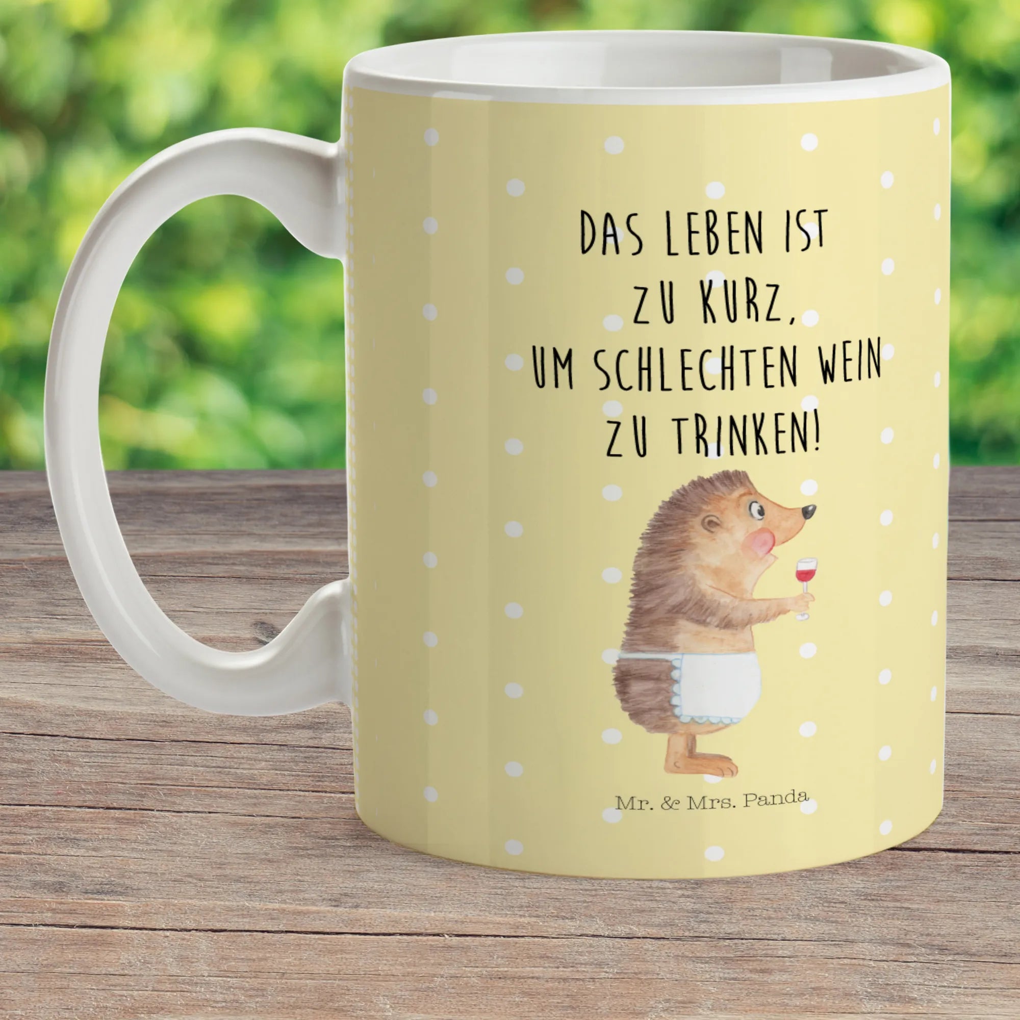 Das charmante Design zeigt einen kleinen Igel, der fröhlich aus einem Rotweinglas schlürft, und bringt garantiert ein Lächeln auf die Gesichter aller kleinen Weinliebhaber. Der Spruch 'Das Leben ist zu kurz, um schlechten Wein zu trinken!' verleiht der Tasse eine besondere Note und eignet sich hervorragend als Geschenk für Eltern und Freunde.