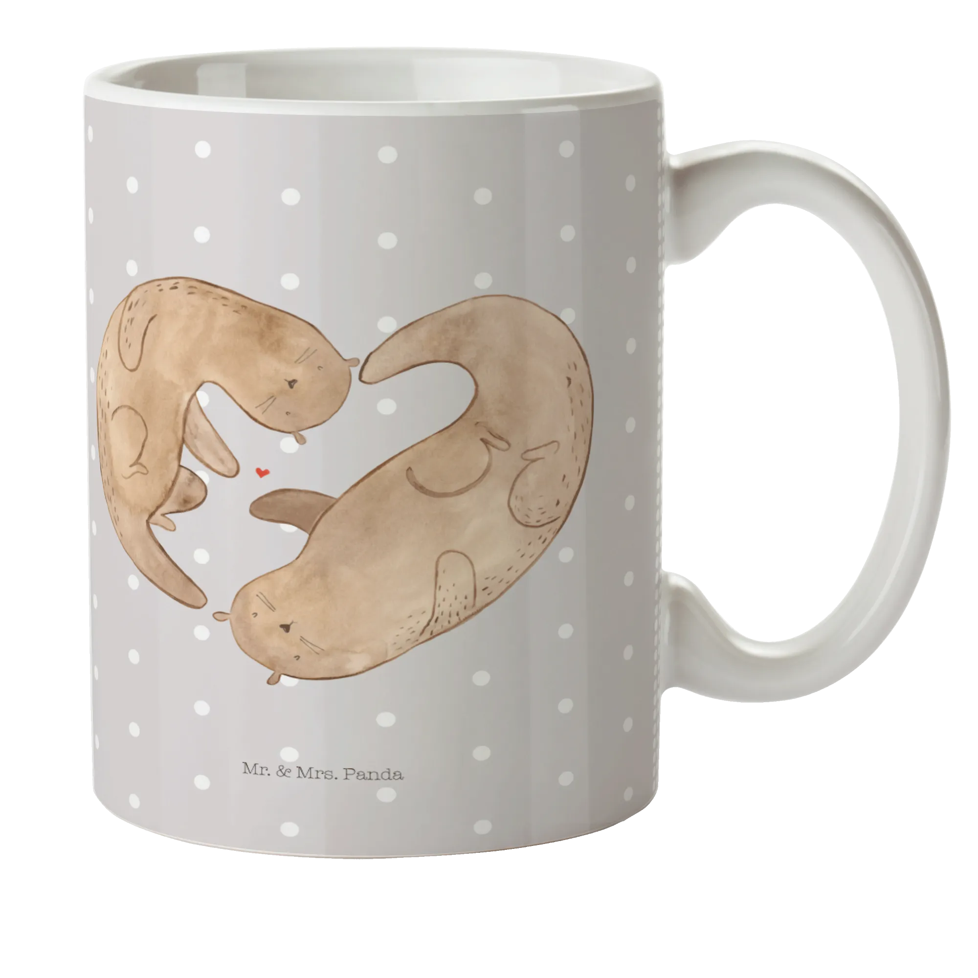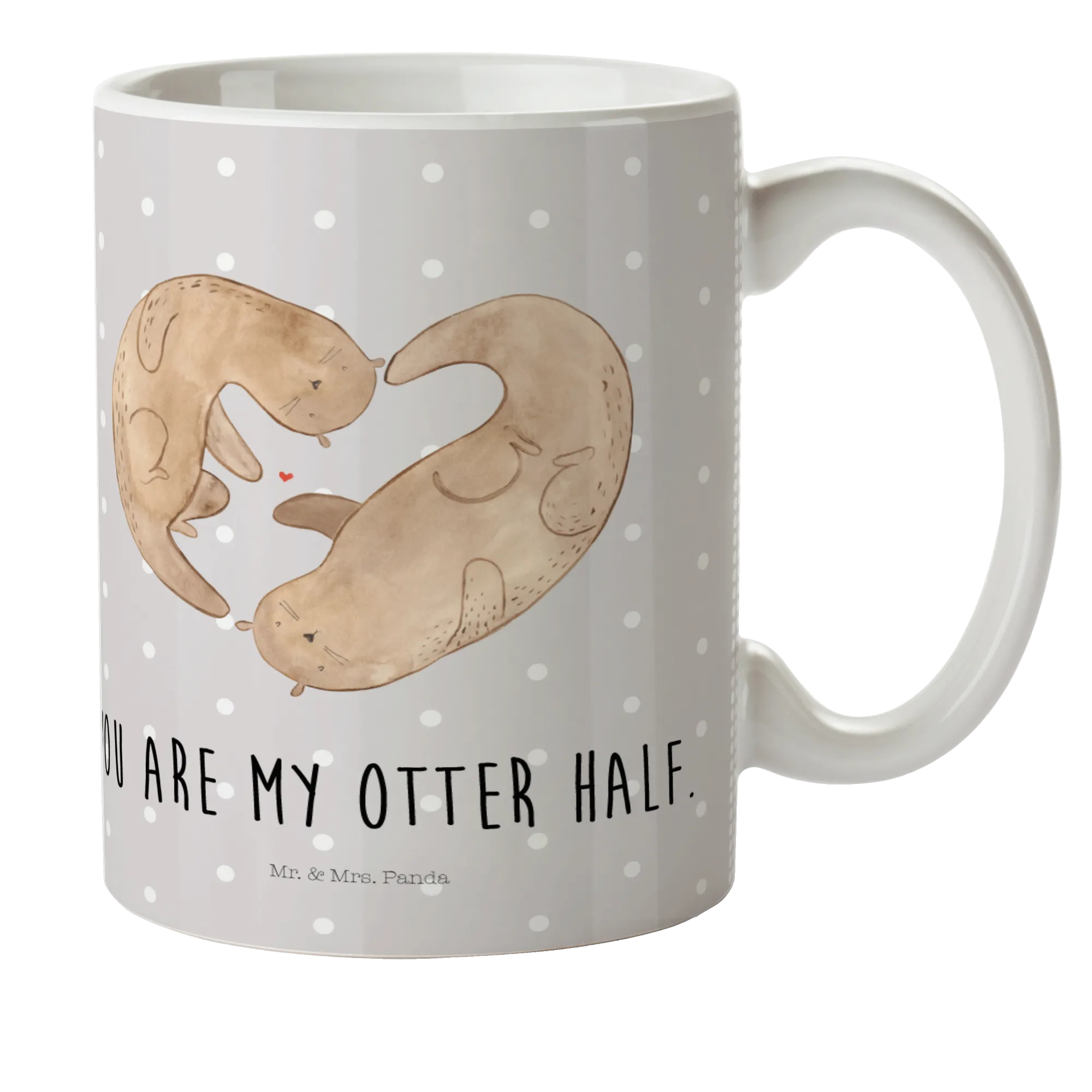 Kindertasse Otter Herz - mit Spruch - Grau Pastell