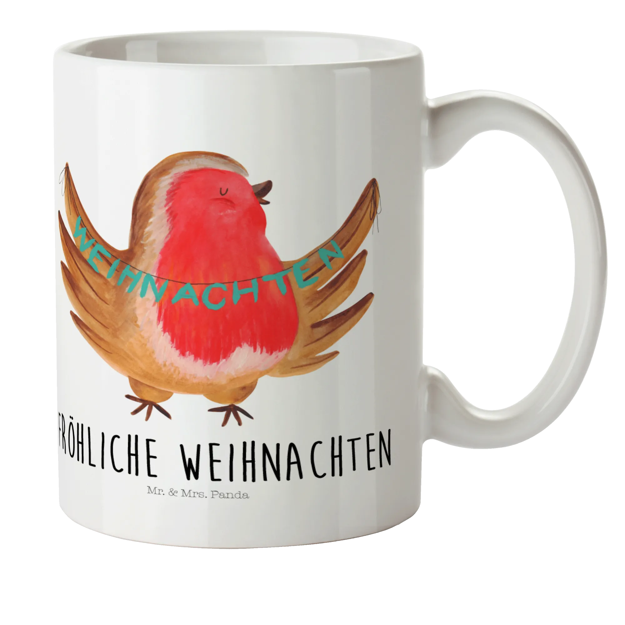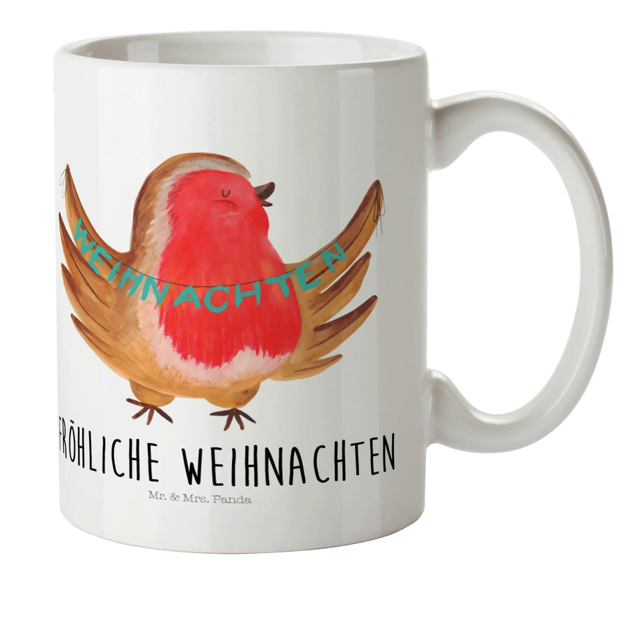 Die Kindertasse Rotkehlchen Weihnachten von Mr. & Mrs. Panda ist der perfekte Begleiter für die besinnliche Weihnachtszeit. Wenn der Duft von frisch gebackenen Keksen in der Luft liegt und das erste Schneegestöber die Landschaft bezaubert, dann darf diese zauberhafte Tasse nicht fehlen! Mit einem durchdachten Motiv, das ein fröhliches Rotkehlchen zeigt, bringt die Tasse eine opulent festliche Stimmung in jedes Kinderzimmer.