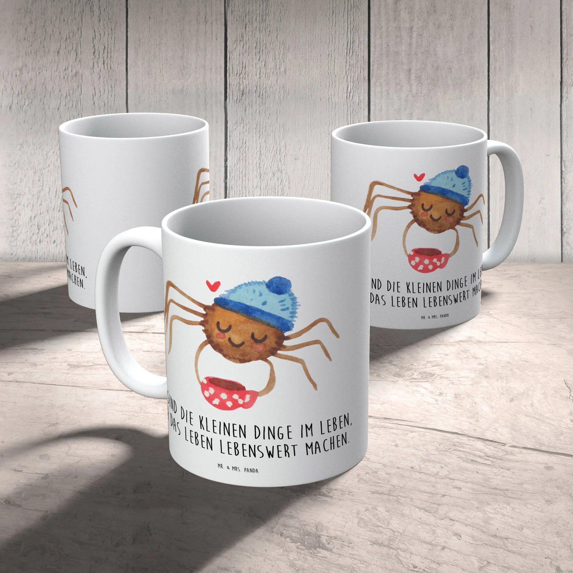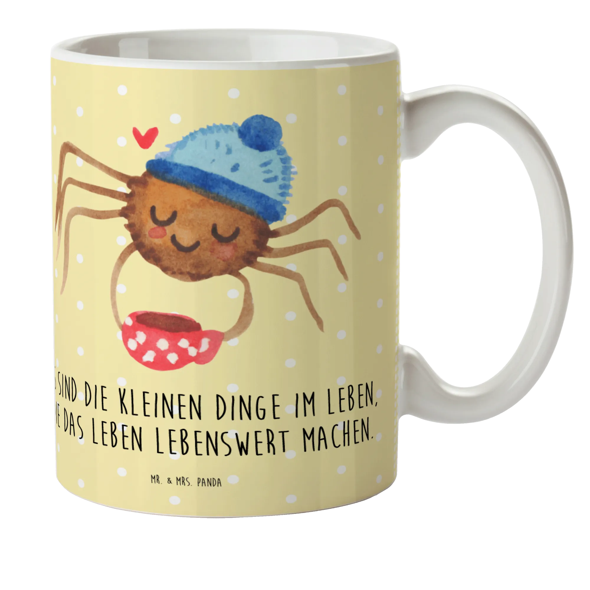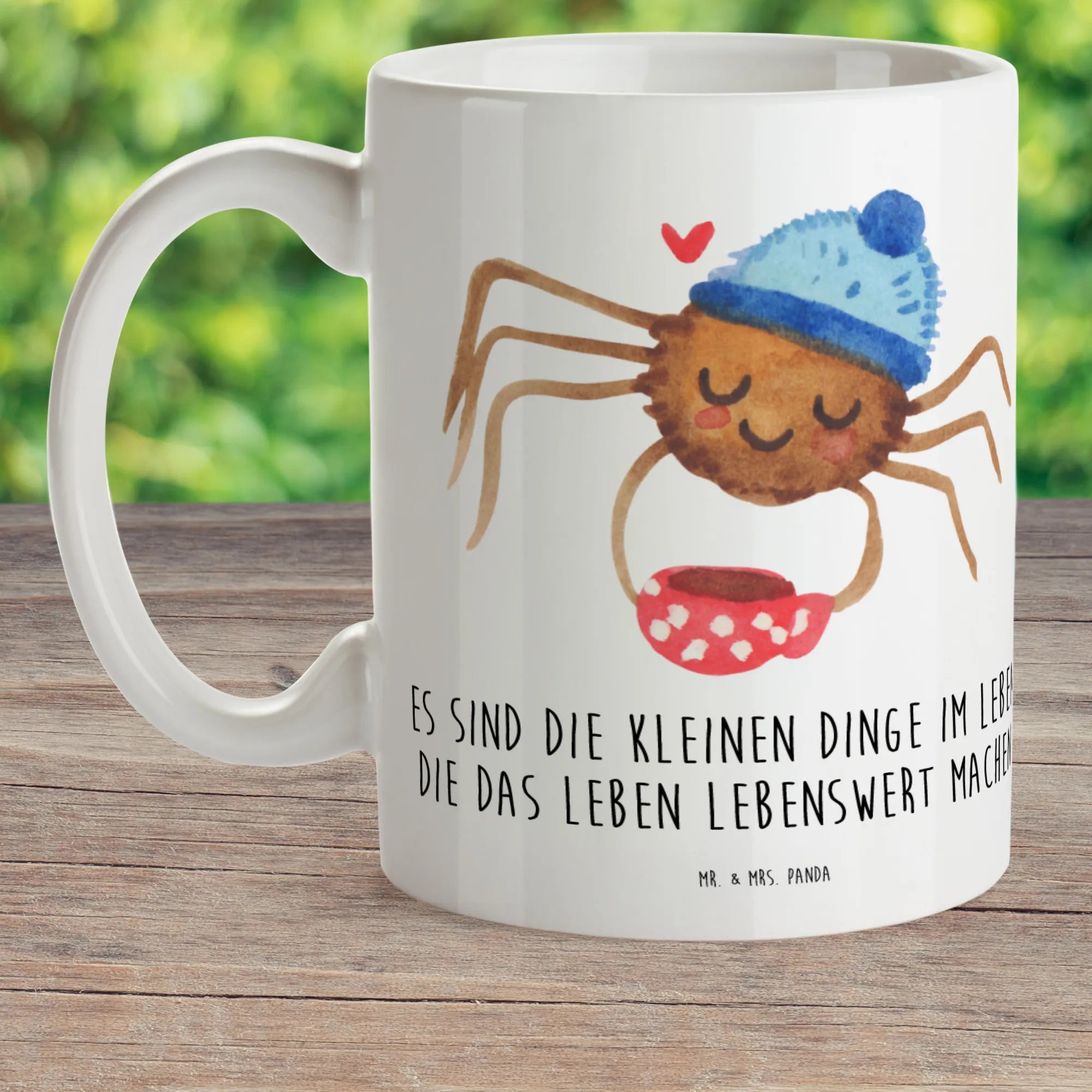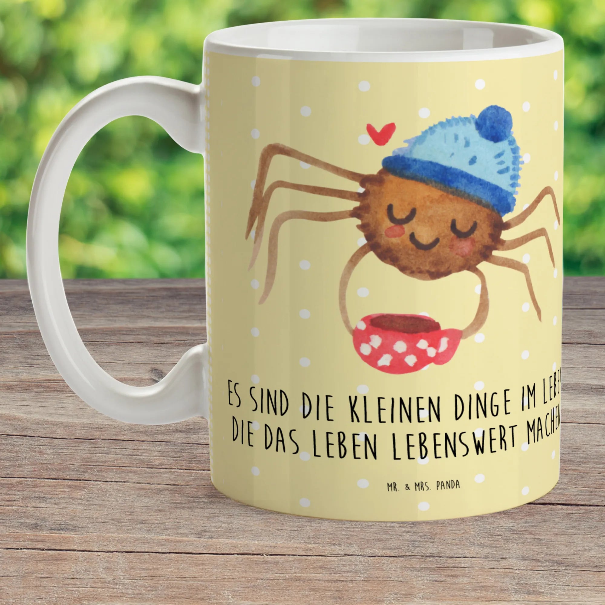 Die Kindertasse Spinne Agathe Kaffee aus der einzigartigen Kollektion von Mr. & Mrs. Panda ist der perfekte Begleiter für die kleinen Abenteurer und die süßen Morgenmuffel. Mit einem entzückenden Motiv der charmanten Spinne Agathe, die genüsslich ihren Kaffee schlürft, bringt diese Tasse frischen Wind in den Alltag deiner Kleinen und sorgt für ein Lächeln beim Trinken. Der brillante Aufdruck und die kindgerechte Größe machen sie ideal für Kindergartenkinder, die das erste Mal selbstständig trinken möchten.