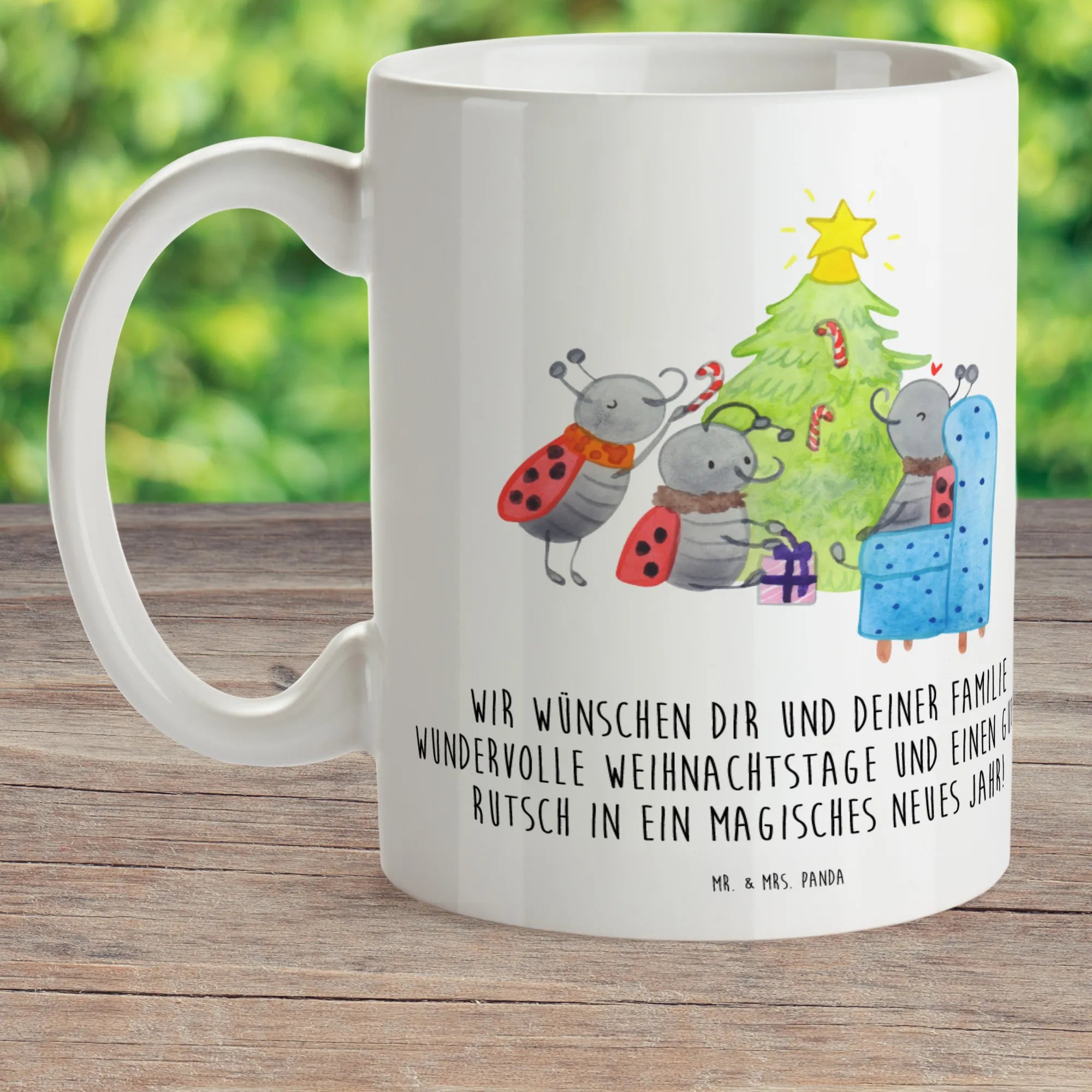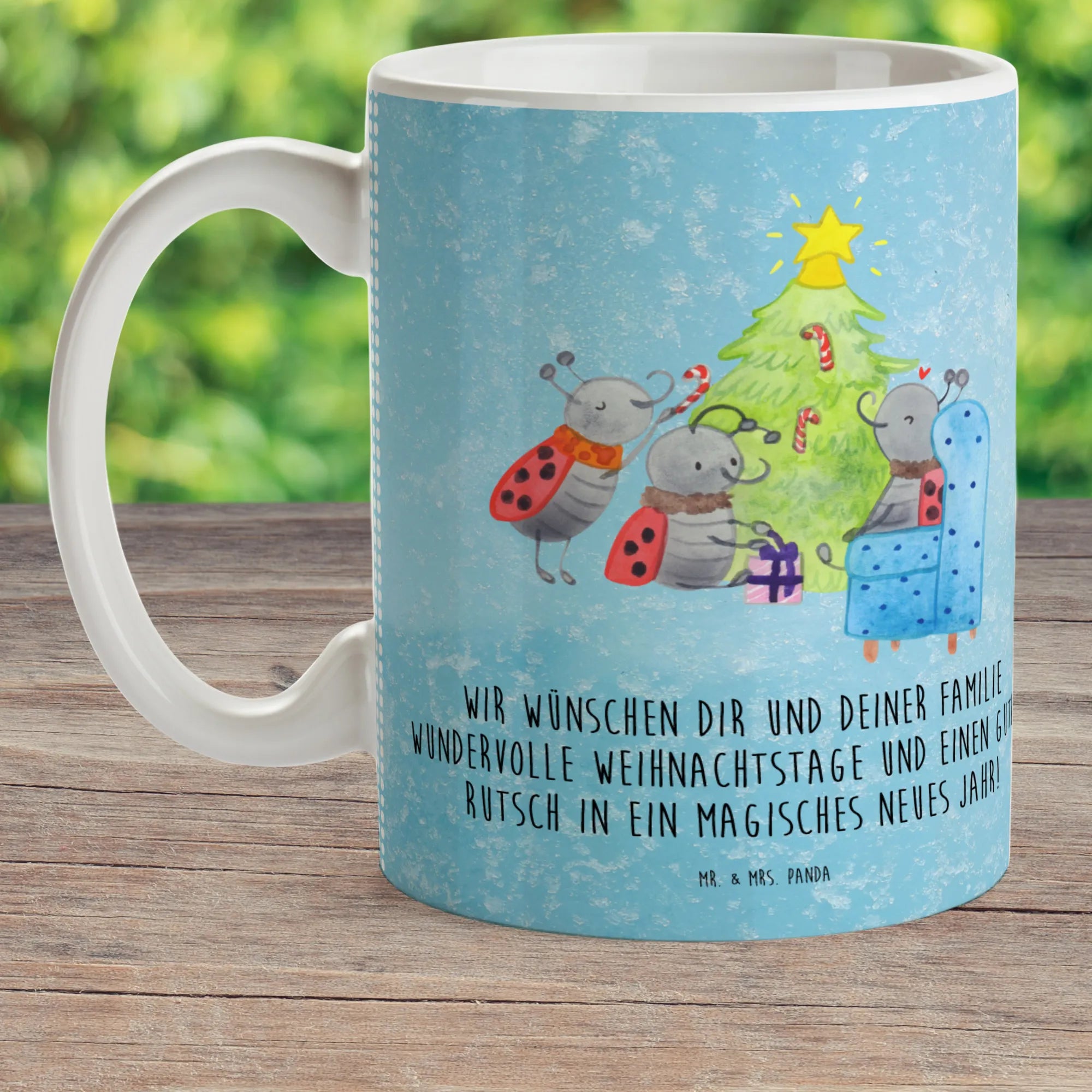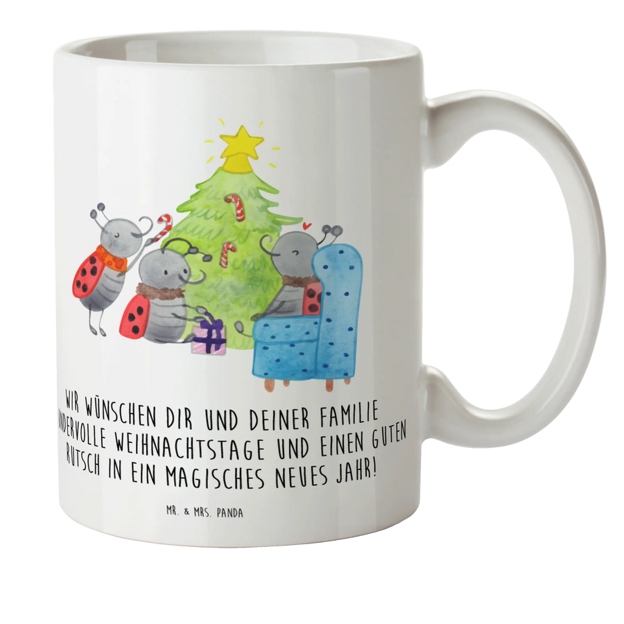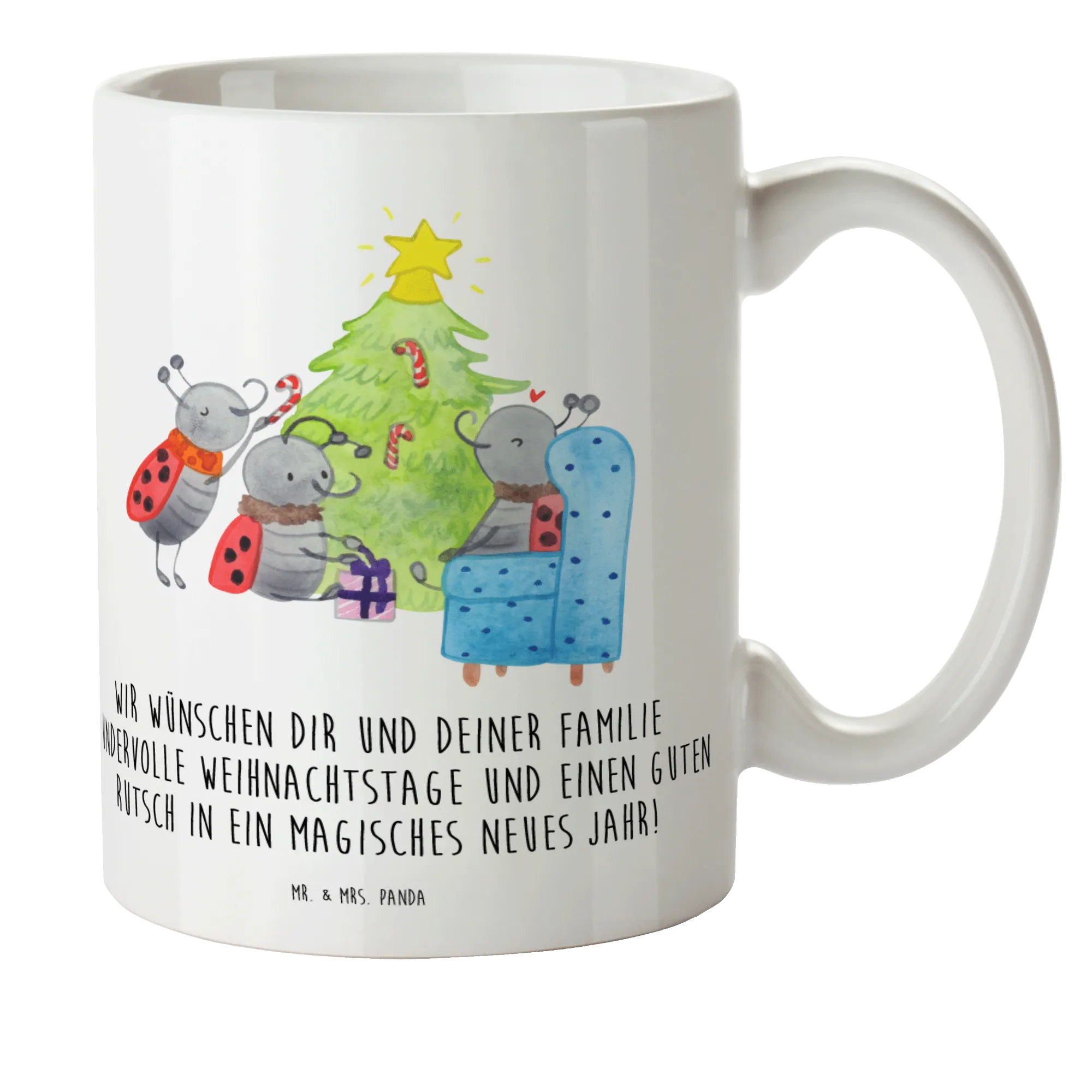 Die Kindertasse Weihnachten Smörle von Mr. & Mrs. Panda ist das perfekte Geschenk für alle kleinen Weihnachtsfans! 🎄 Mit ihrem charmanten Motiv, das liebevoll gezeichnete Marienkäfer zeigt, die um einen festlich geschmückten Weihnachtsbaum herum wuseln, bringt sie den Zauber der Weihnachtszeit direkt ins Kinderzimmer.