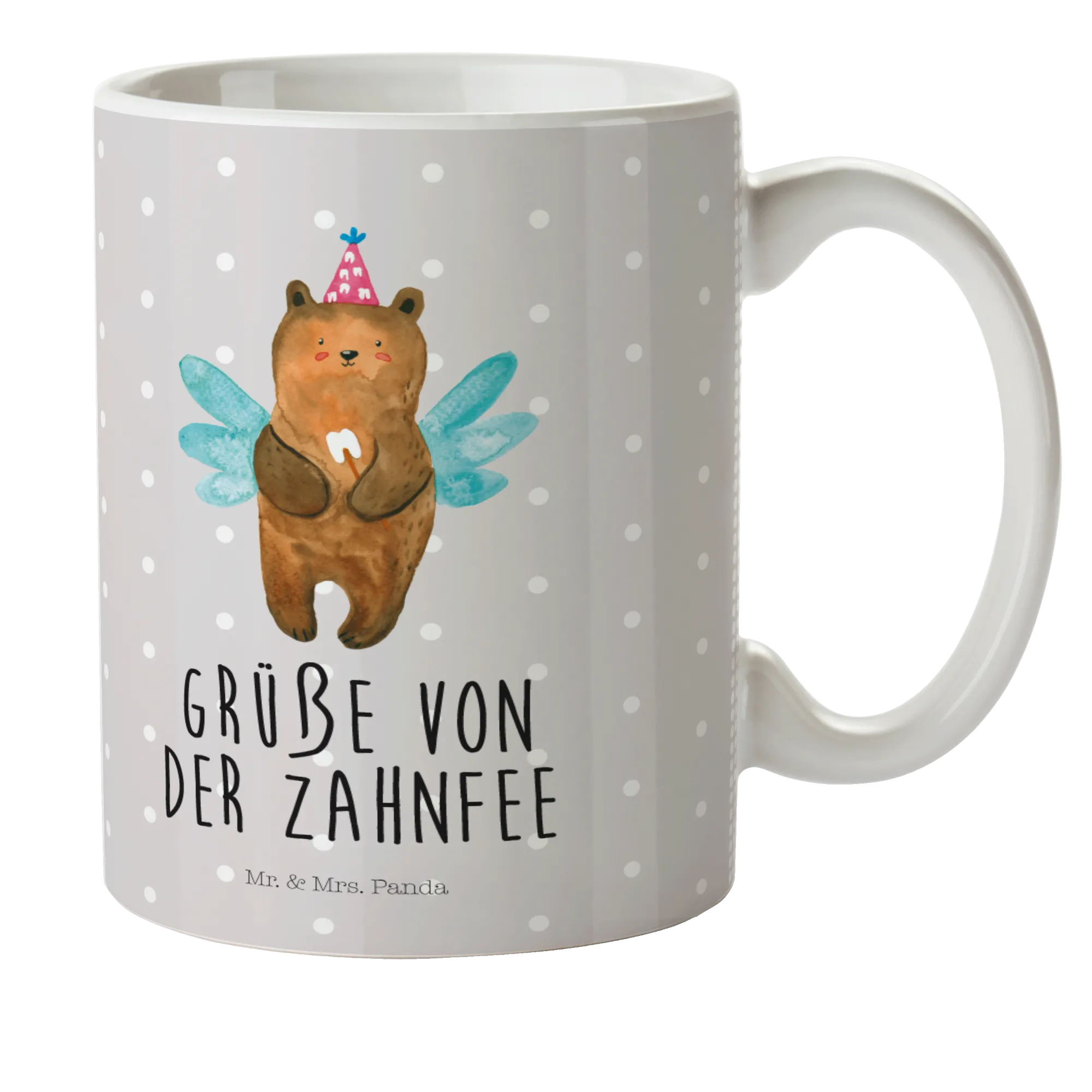 Kindertasse Bär Zahnfee - mit Spruch - Grau Pastell