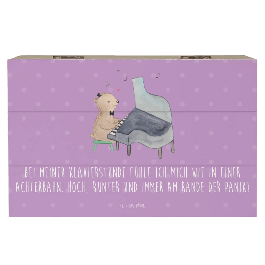 Die Kiste trägt den liebevollen Spruch: 'Bei meiner Klavierstunde fühle ich mich wie in einer Achterbahn. Hoch, runter und immer am Rande der Panik!', der nicht nur für Schmunzeln sorgt, sondern auch perfekt die Emotionen beim Klavierspielen einfängt. Schenke sie einem Musiker zur Kommunion, zur Konfirmation oder einfach als Überraschung - sie wird mit Sicherheit Freude bereiten!