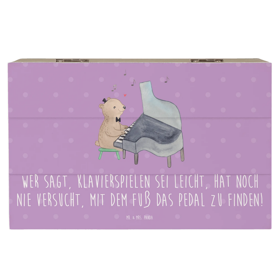 Die wunderschöne Holzkiste von Mr. & Mrs. Panda ist das perfekte Geschenk für alle Musikliebhaber und angehende Pianisten. Mit dem zarten Motiv eines Klaviers und dem humorvollen Spruch "Wer sagt, Klavierspielen sei leicht, hat noch nie versucht, mit dem Fuß das Pedal zu finden!" wird sie zu einem ganz besonderen Aufbewahrungsort für all Deine kostbaren Erinnerungen. Egal, ob als Erinnerungskiste für festliche Anlässe wie Kommunion oder Konfirmation, Schatulle für die Kinderzeit oder sogar als stilvolle Dekokiste für Dein Zuhause – diese Schatzkiste erfüllt ihre Aufgabe mit Bravour.
