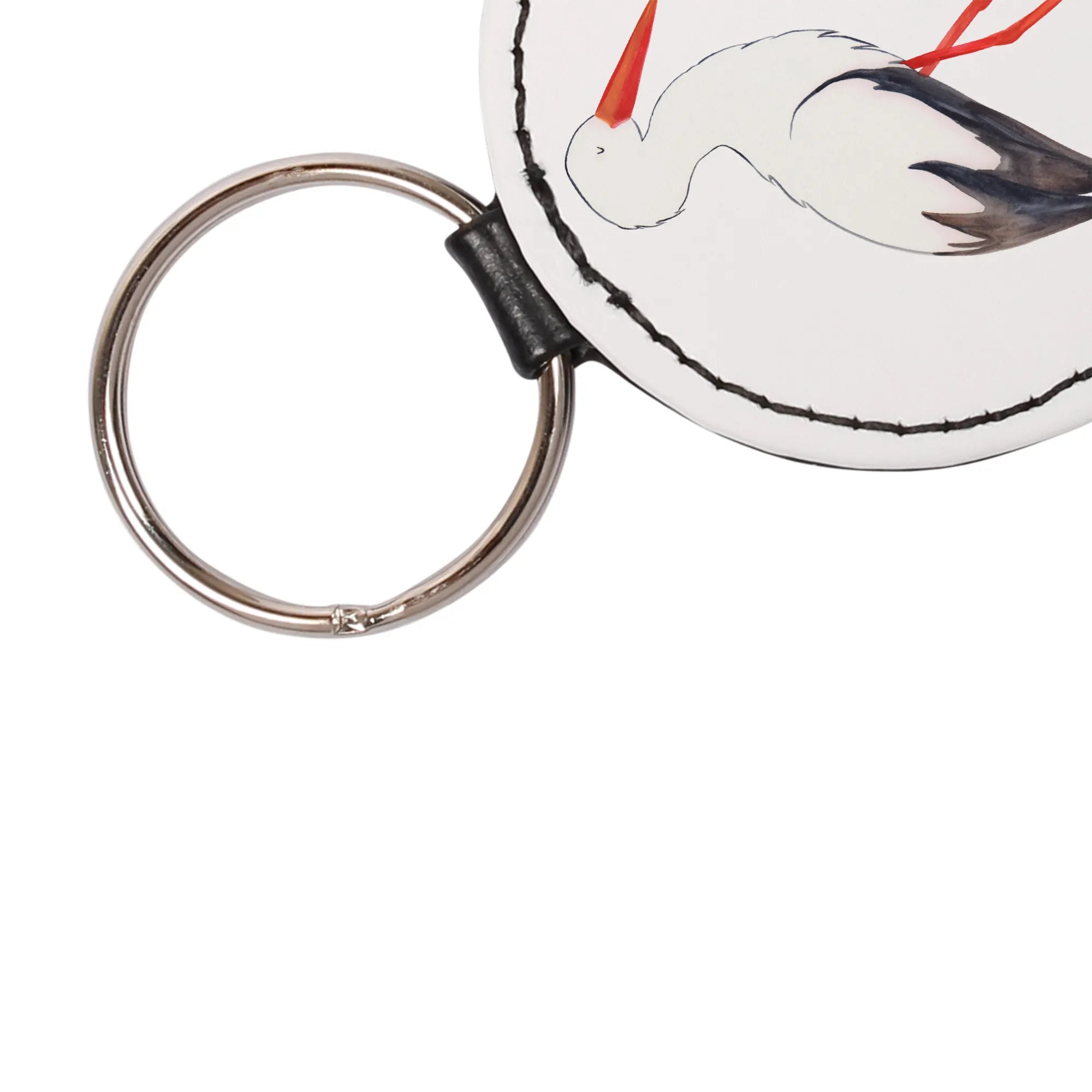 Rund Schlüsselanhänger Storch - Weiß