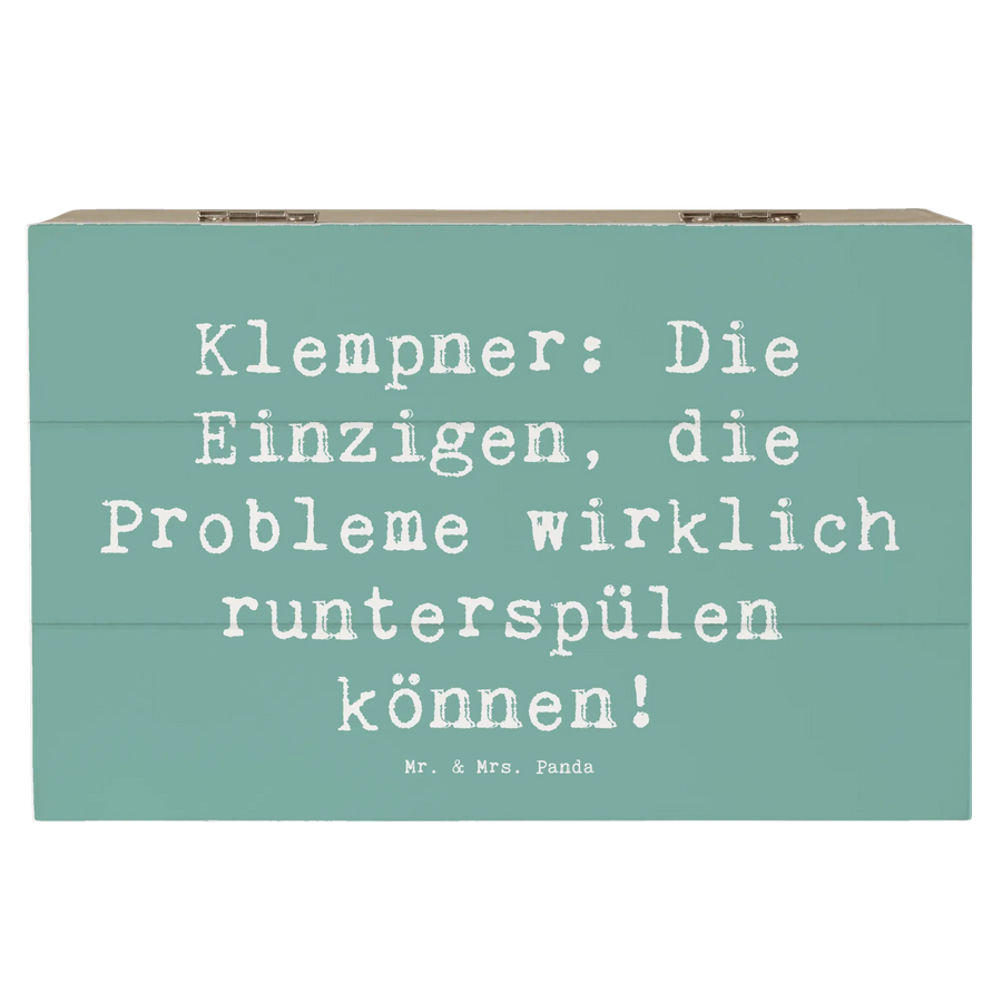Die Holzkiste mit dem lustigen Spruch "Klempner: Die Einzigen, die Probleme wirklich runterspülen können!" von Mr. & Mrs. Panda ist das perfekte Geschenk für alle, die in der Branche arbeiten oder einfach eine besondere Verbindung zu diesem Beruf haben. Egal ob du ein Geschenk zur Berufsausbildung, zum Berufswechsel oder einfach nur so suchst – diese Box wird bestimmt gut ankommen!