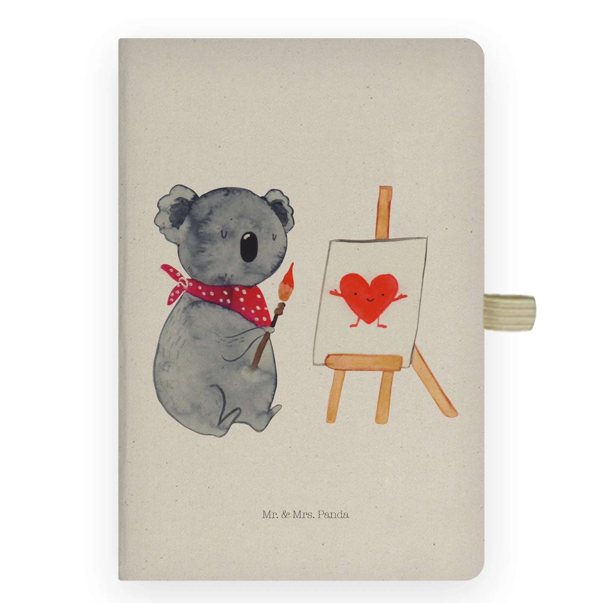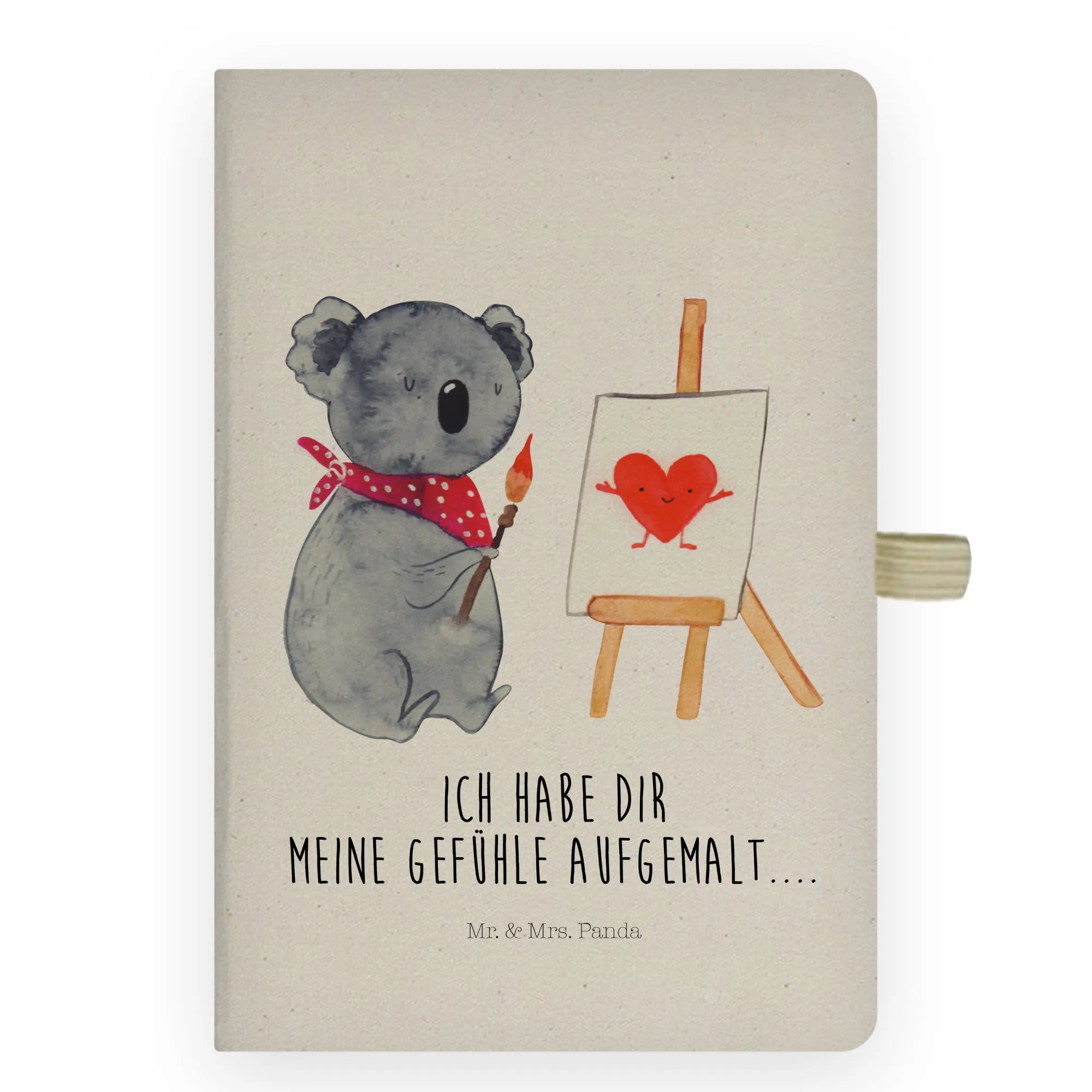Mr. & Mrs. Panda präsentiert: Das DIN A5 Baumwoll Notizbuch „Koala Künstler“ – ein liebevolles Notizbuch A5, das Kreativität und Gefühl verbindet. Der niedliche Koala mit Pinsel und Leinwand und der zärtliche Spruch „Ich habe dir meine Gefühle aufgemalt....“ machen dieses Notizheft A5 zum idealen Liebesgeschenk oder persönlichen Tagebuch für kreative Köpfe.