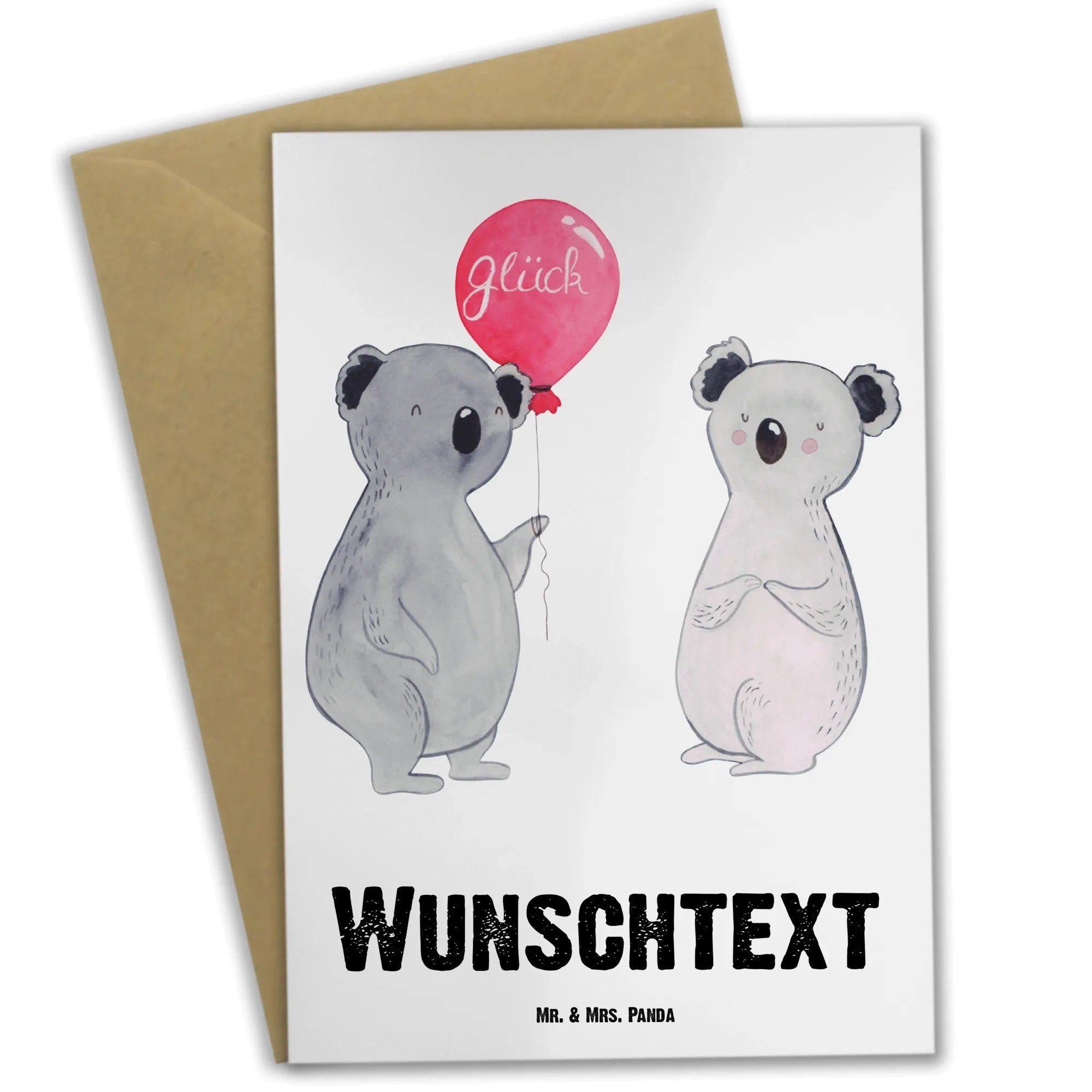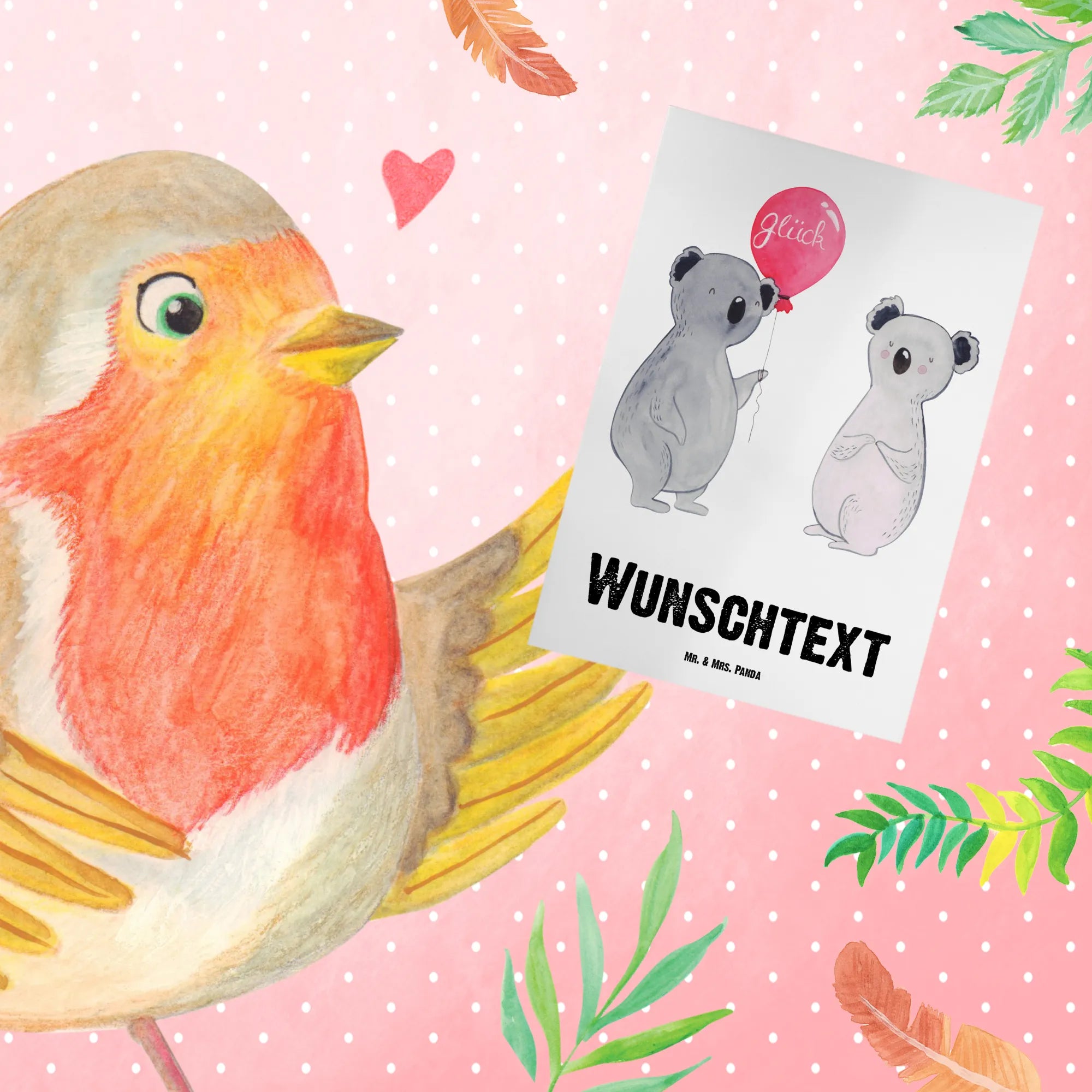 Die personalisierte Grußkarte Koala Luftballon von Mr. & Mrs. Panda ist der perfekte Begleiter für all deine feierlichen Anlässe! Mit ihrem niedlichen Motiv von zwei glücklichen Koalas, die einen bunten Luftballon halten, zaubert sie jedem ein Lächeln ins Gesicht und bringt Freude in jede Geburtstagsfeier oder Einladung.
