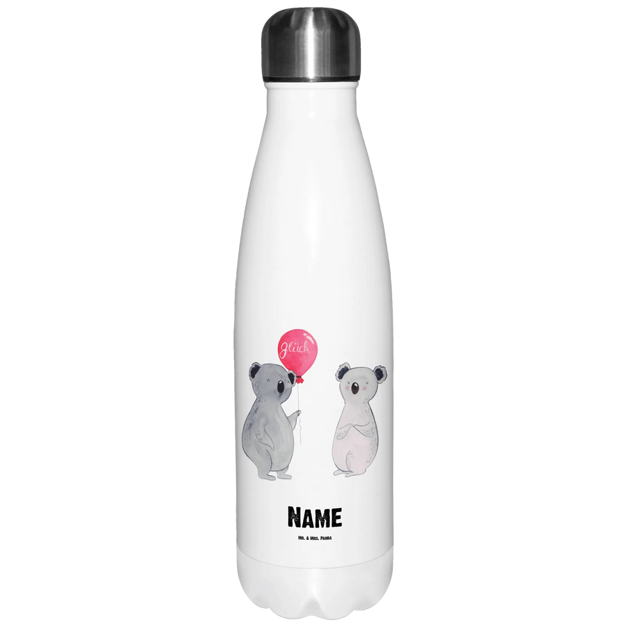 Die personalisierte Thermosflasche mit dem zauberhaften Koala Luftballon Motiv von Mr. & Mrs. Panda ist das perfekte Geschenk für jeden Anlass! Ob für die beste Freundin, den liebsten Verwandten oder einfach für dich selbst, mit dieser einzigartigen Isolierflasche holst du dir ein Stück Freude und gute Laune ins Leben. Das entzückende Design zeigt zwei fröhliche Koalas, die mit einem bunten Luftballon in der Hand voller Glück und Wärme strahlen. Diese liebevolle Botschaft lautet: „Ich wünsche dir Sonnenschein im Herzen, eine nie endende Glückssträhne und das Selbstvertrauen, alles erreichen zu können“.