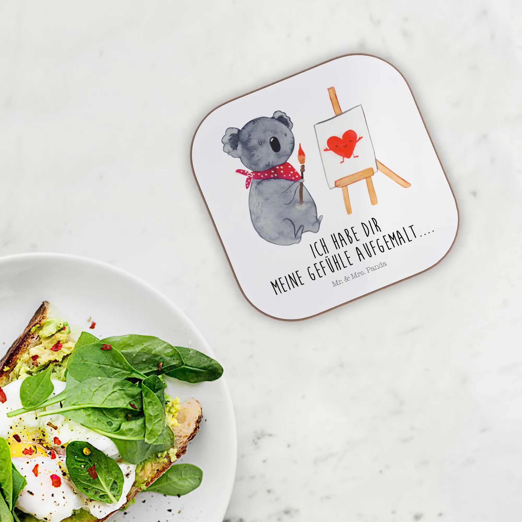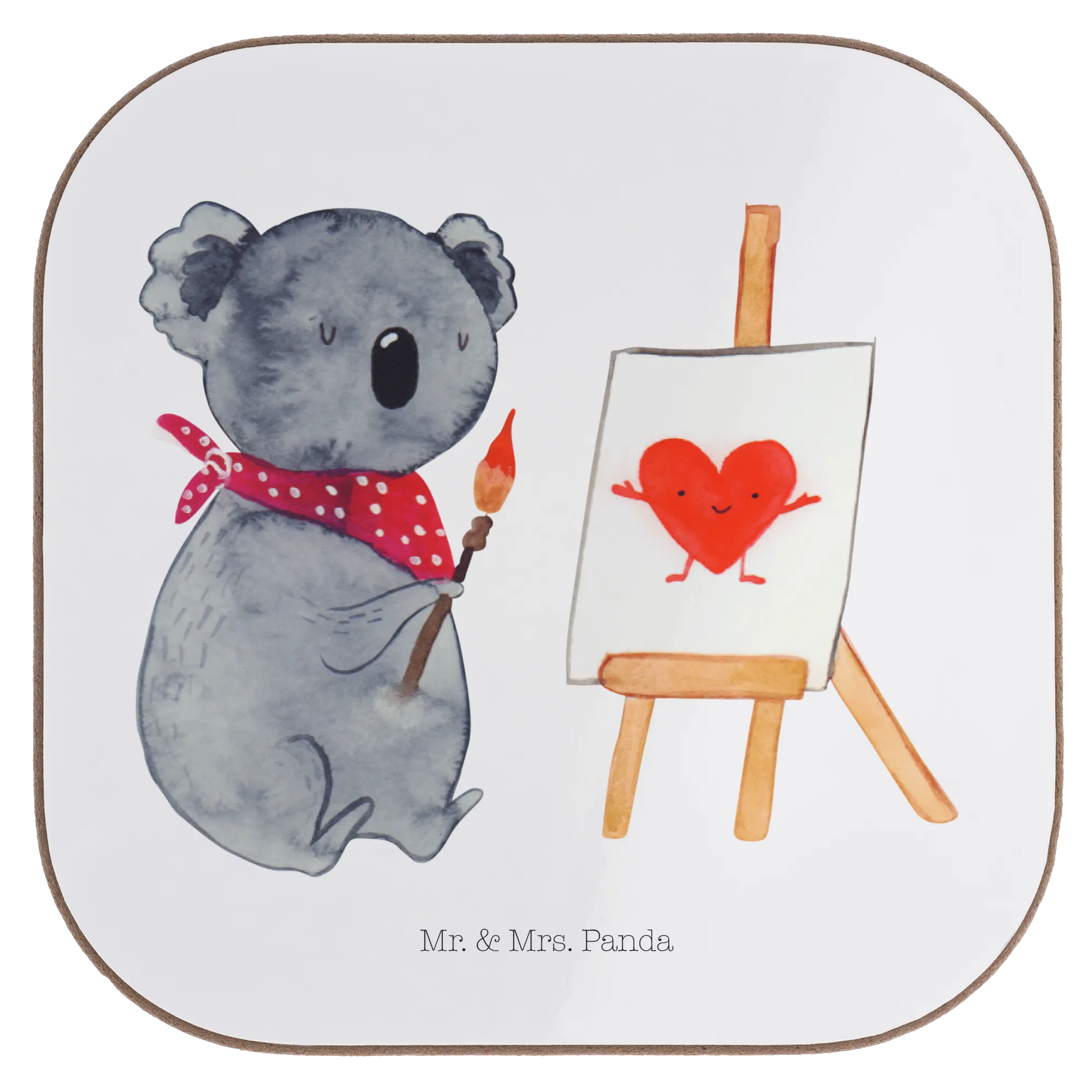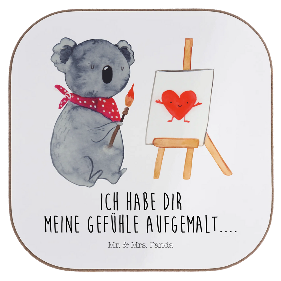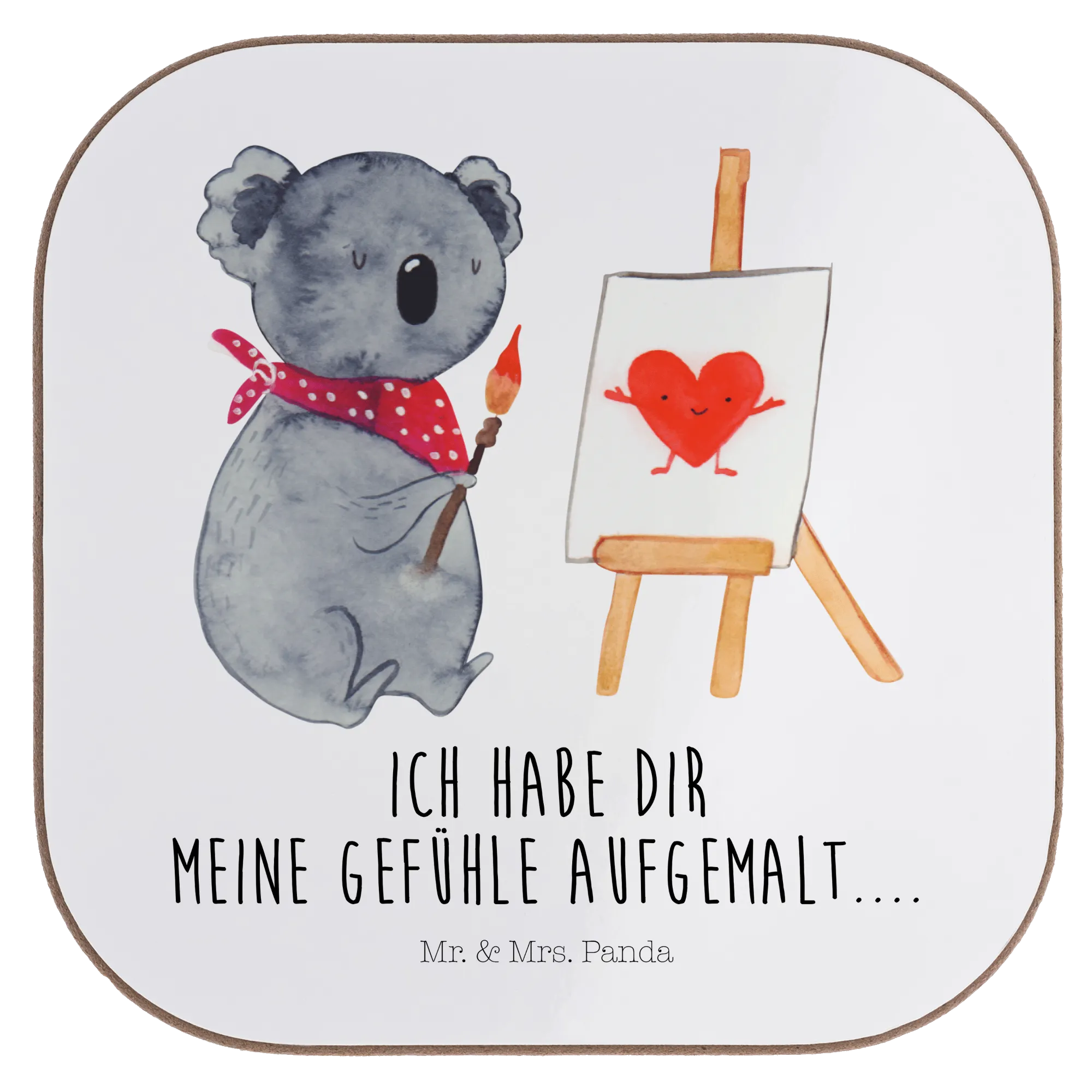 Quadratische Untersetzer Koala Künstler - mit Spruch