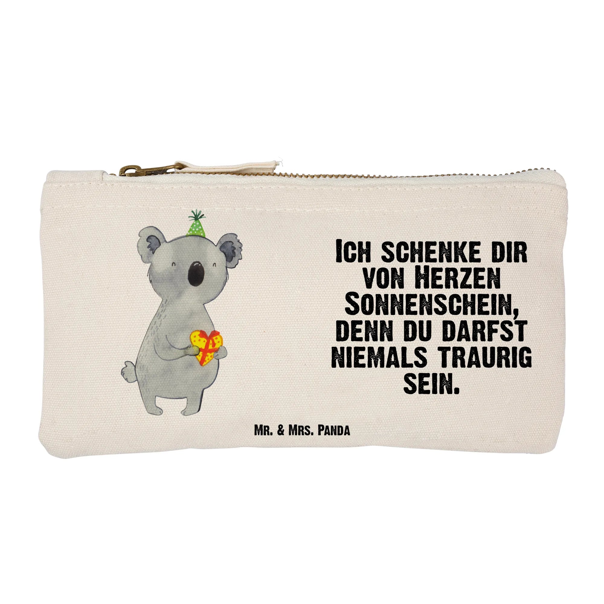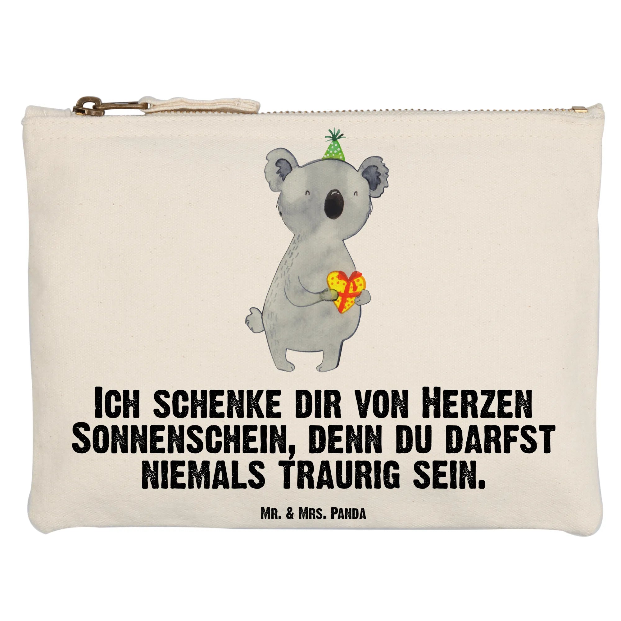 Das Koala Geschenk-Motiv von Mr. & Mrs. Panda ist eine fröhliche Ode an die Freude des Schenkens! Mit seinem tollen Partyhut und dem wunderschönen Herzgeschenk bringt unser Koala eine extra Portion Glück. Der Spruch ‘Ich schenke dir von Herzen Sonnenschein, denn du darfst niemals traurig sein’ symbolisiert die Lebensfreude, die in jedem Geschenk steckt. Egal ob für Geburtstagsfeiern oder um einfach einen lieben Menschen zu erfreuen – dieser Koala bringt Freude pur!