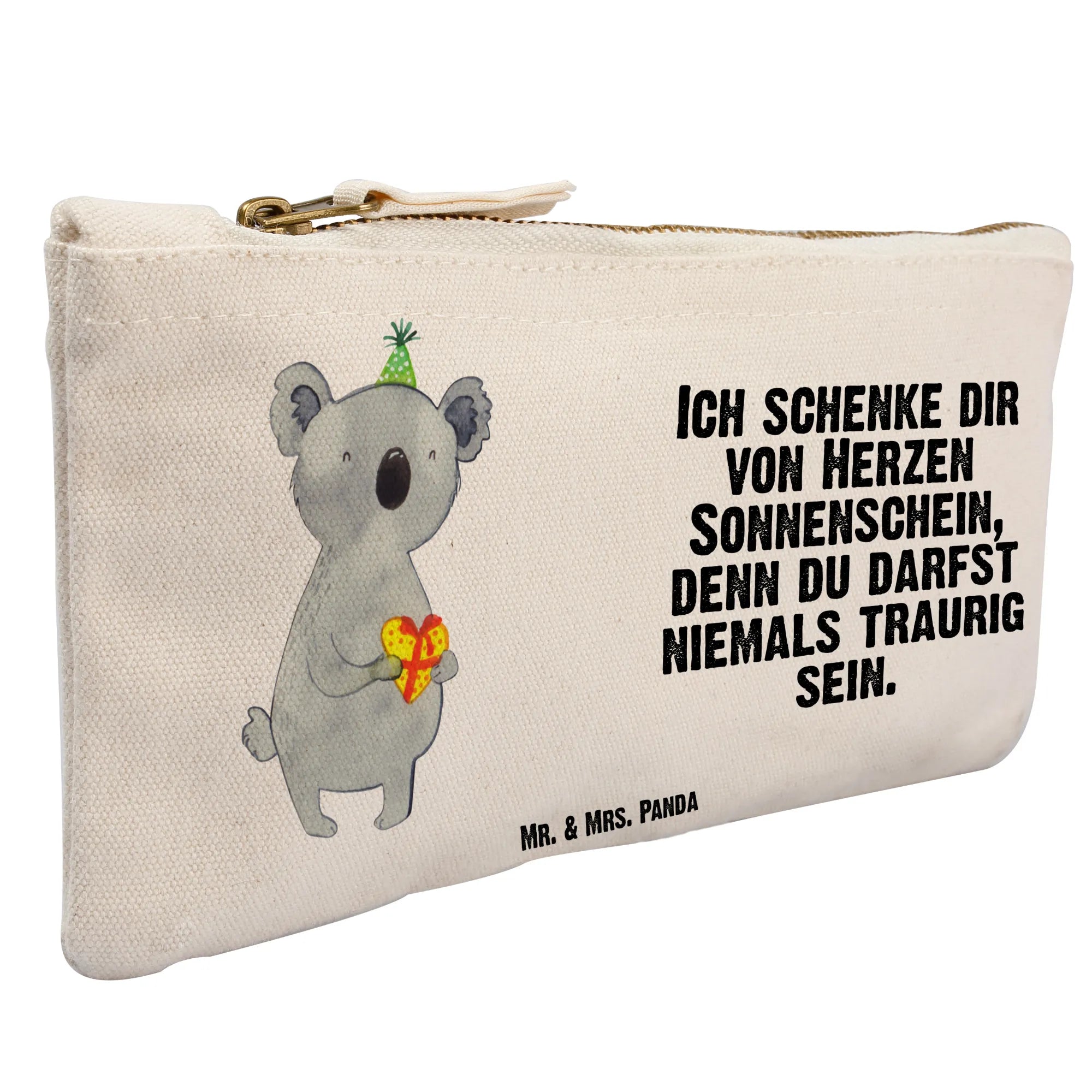 Entdecke die charmante Schminktasche von Mr. & Mrs. Panda! Diese Tasche aus 100% weicher Baumwolle ist nicht nur praktisch, sondern auch ein schöner Hingucker mit ihren süßen Motiven und Sprüchen. In verschiedenen Größen erhältlich, bietet sie ausreichend Platz für all deine Kosmetikartikel. Sie eignet sich ebenso, um Belege zu verstauen oder als stylisches Stiftemäppchen zu dienen. Die umsäumten und eingeschlagenen Innennähte machen die Tasche besonders formbeständig und langlebig. Achte nur darauf, sie bei Bedarf per Handwäsche in lauwarmem Wasser zu reinigen. Diese Schminktasche bringt Freude und Ordnung – perfekt, um dich selbst oder deine Liebsten zu beschenken!