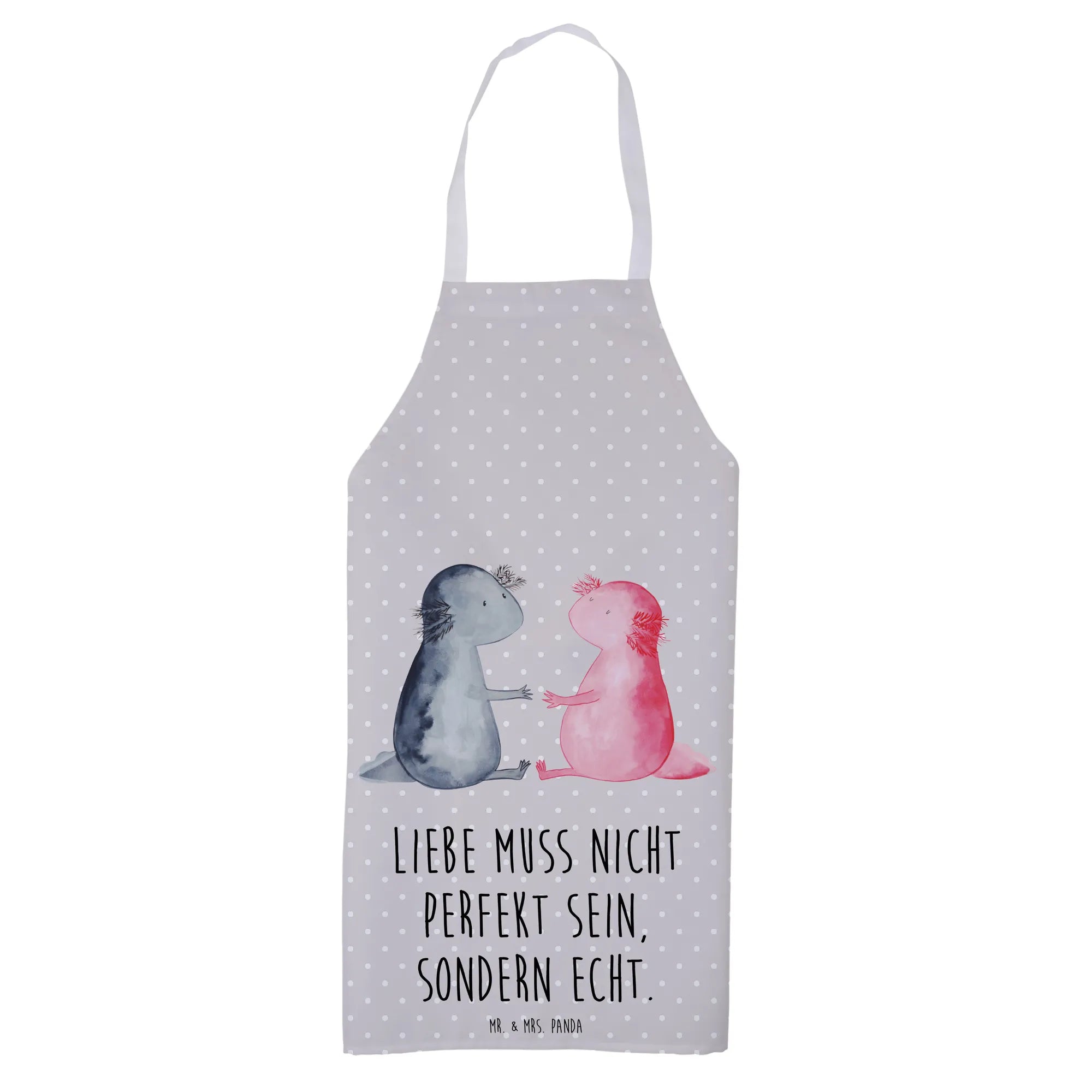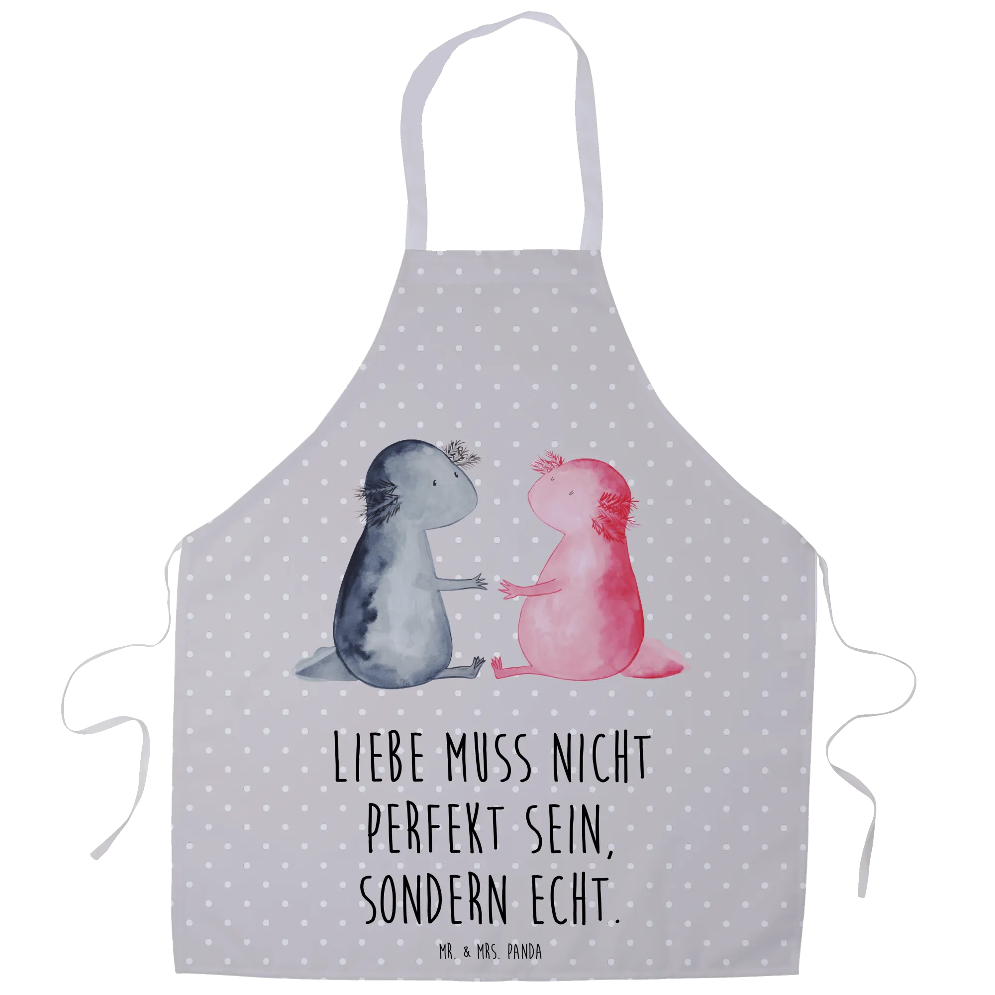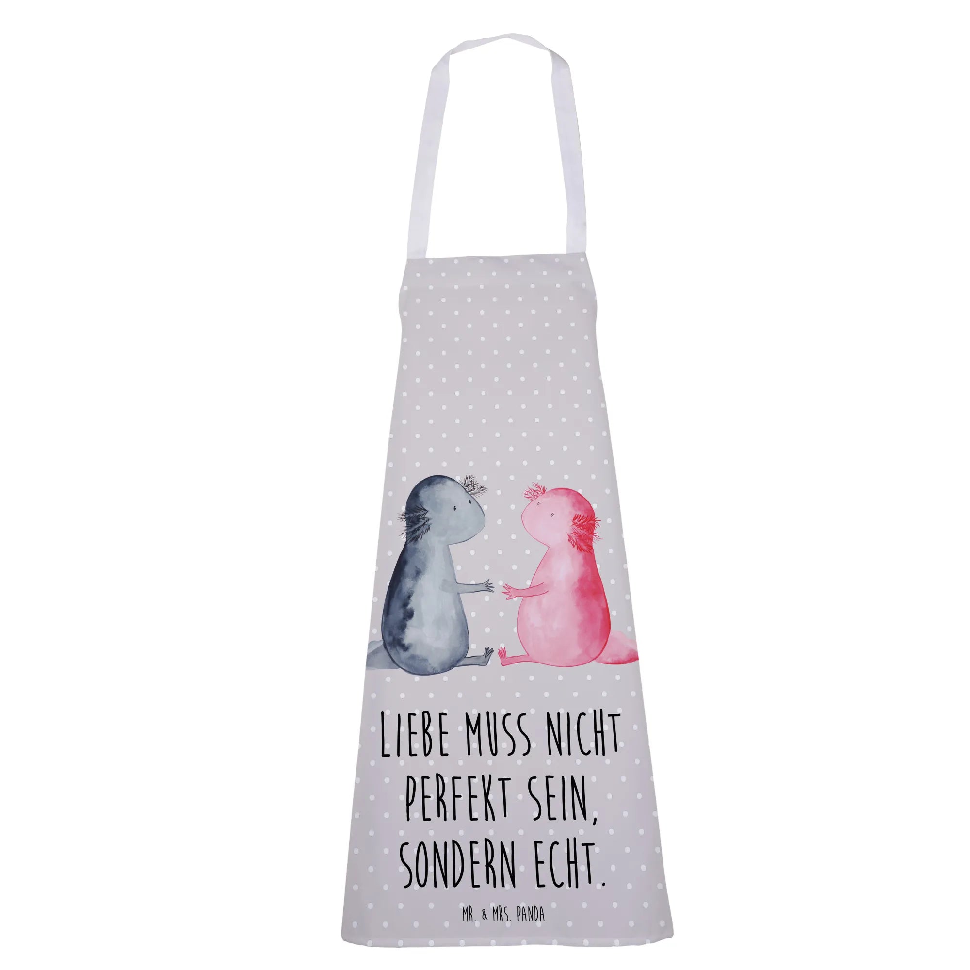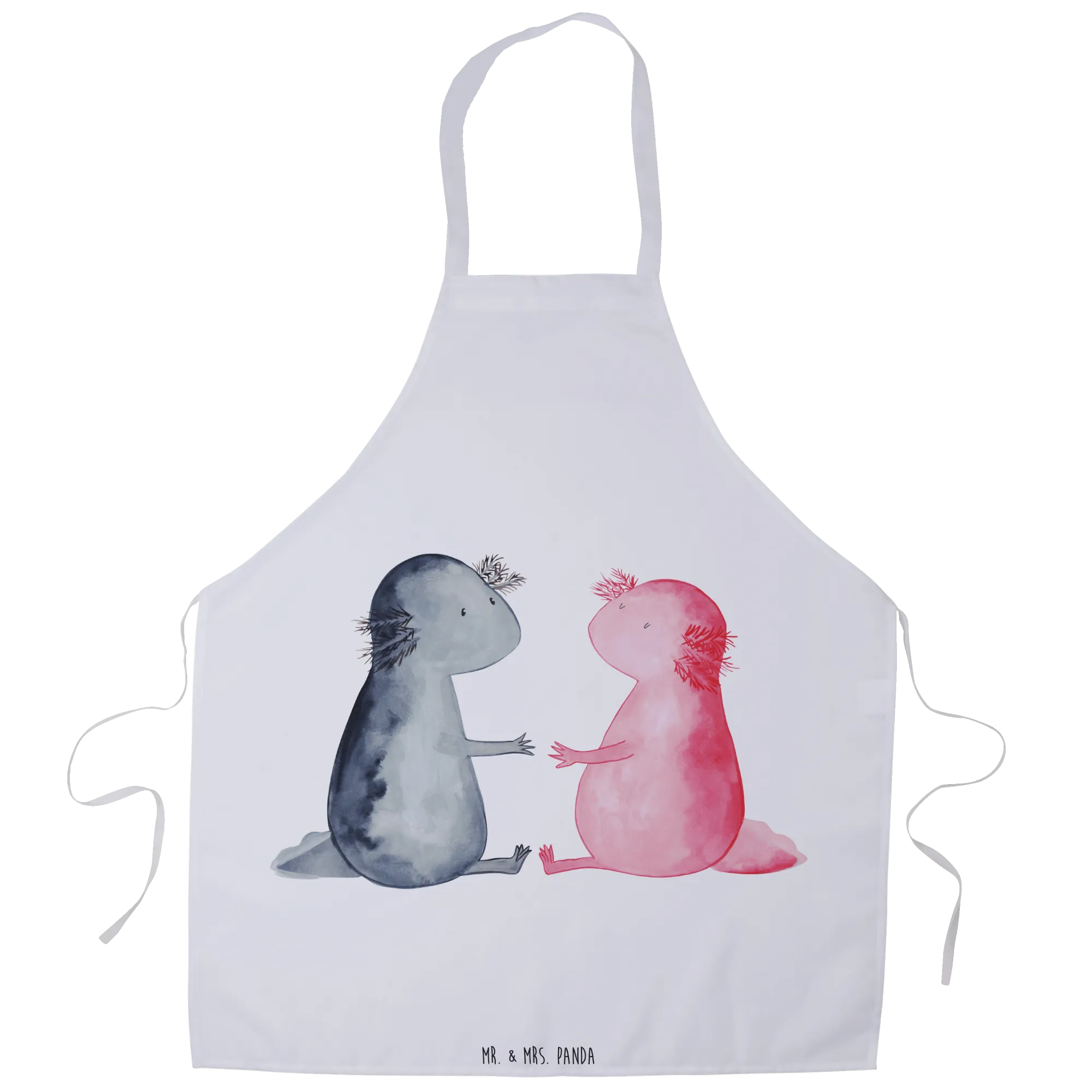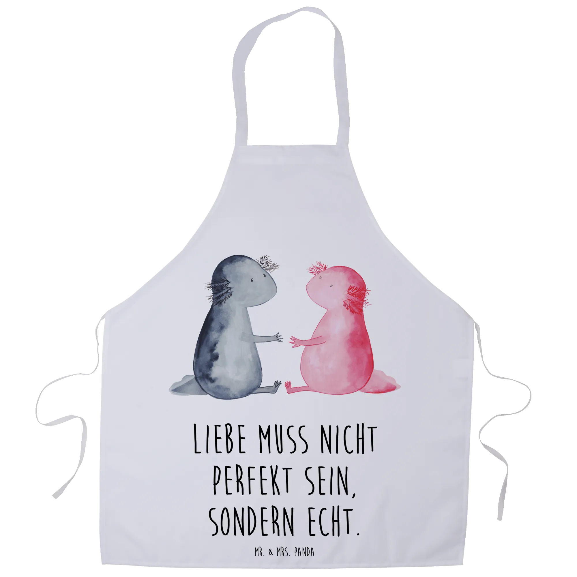 Die wunderschöne Kochschürze mit dem süßen Axolotl-Motiv "Axolotl Liebe" von Mr. & Mrs. Panda ist das perfekte Geschenk für all jene, die das Kochen oder Grillen lieben!