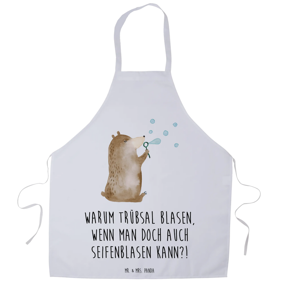 Die Kochschürze mit dem niedlichen Bär-Motiv von Mr. & Mrs. Panda ist das perfekte Geschenk für alle, die das Kochen und Backen lieben! Mit ihrem fröhlichen Design und dem Spruch "Warum Trübsal blasen, wenn man doch auch Seifenblasen kann?!" bringt sie Freude in jede Küche. Ob für die beste Freundin, die Mama oder den lieben Ehemann, diese Schürze sorgt für ein Lächeln und gute Laune bei jedem Kochabend.