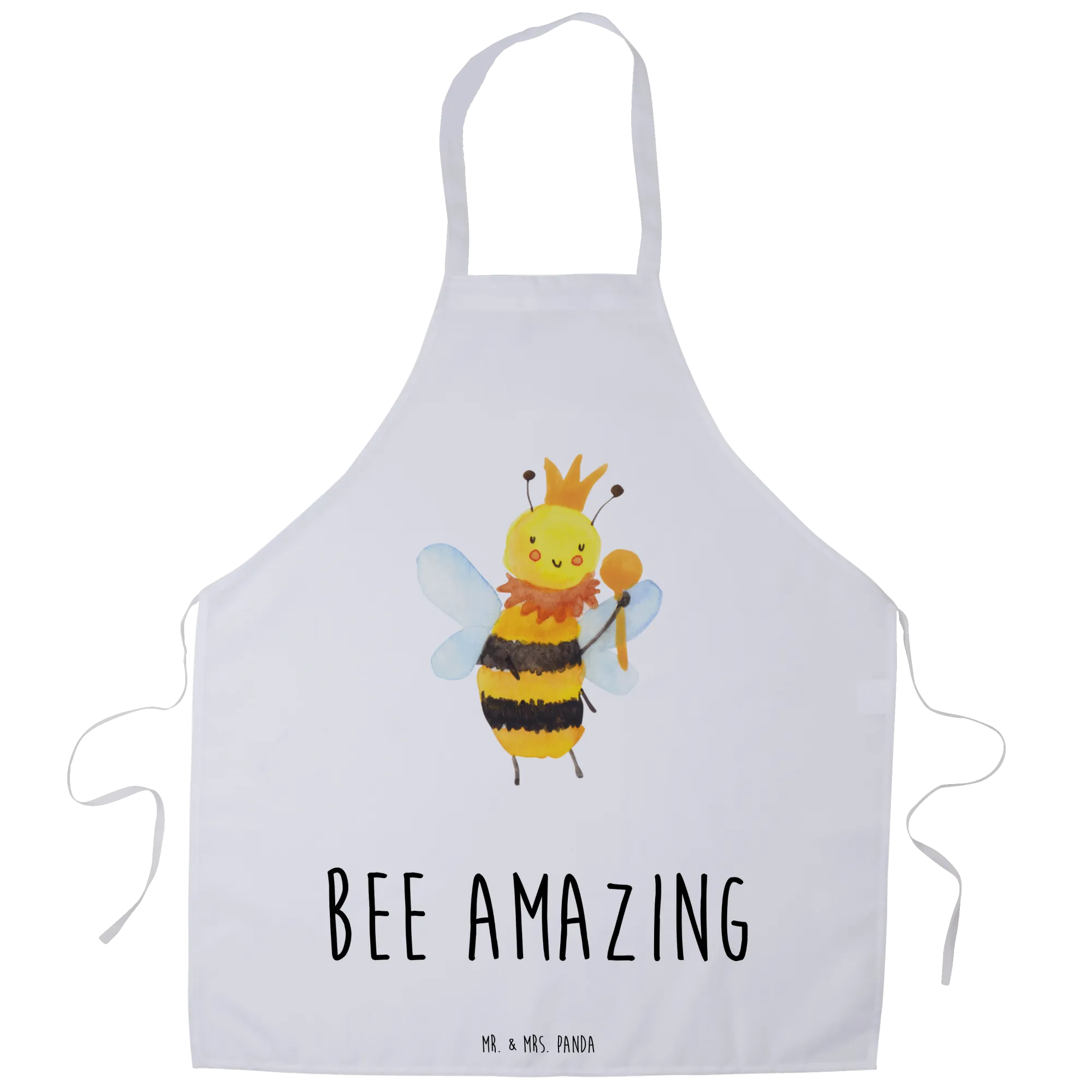 Die Kochschürze "Biene König" von Mr. & Mrs. Panda ist das perfekte Accessoire für alle, die in der Küche oder am Grill stehen und dabei stilvoll und geschützt sein möchten. Die Schürze ist aus hochwertiger Premium-Kunstfaser gefertigt und bietet dank ihrer samtweichen und atmungsaktiven Eigenschaften höchsten Tragekomfort. Mit einer Größe von 950 mm x 700 mm und einer stabilen Nackenschlaufe von 200 mm passt sie sowohl Männern als auch Frauen und ist somit eine ideale Küchenschürze für jeden Anlass.