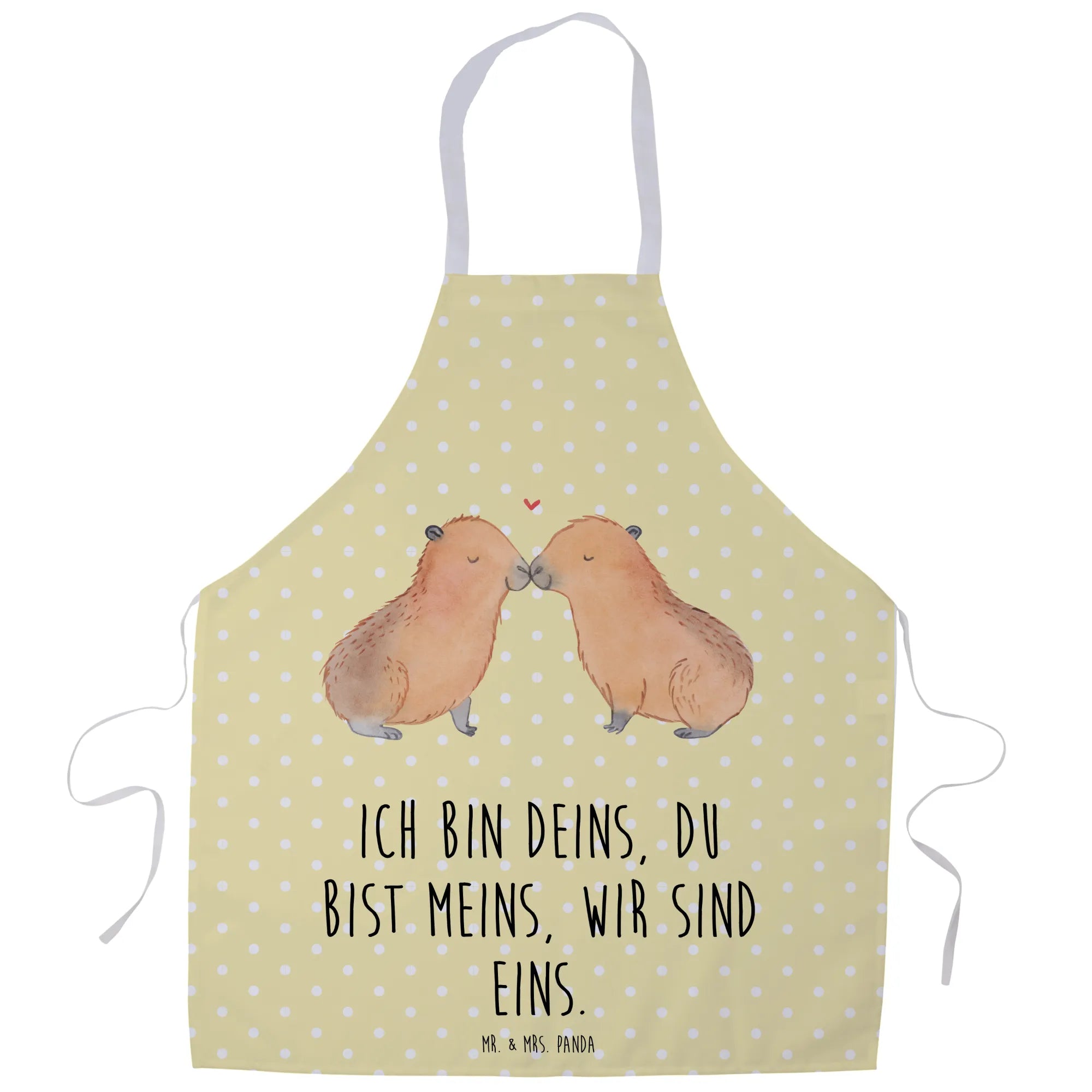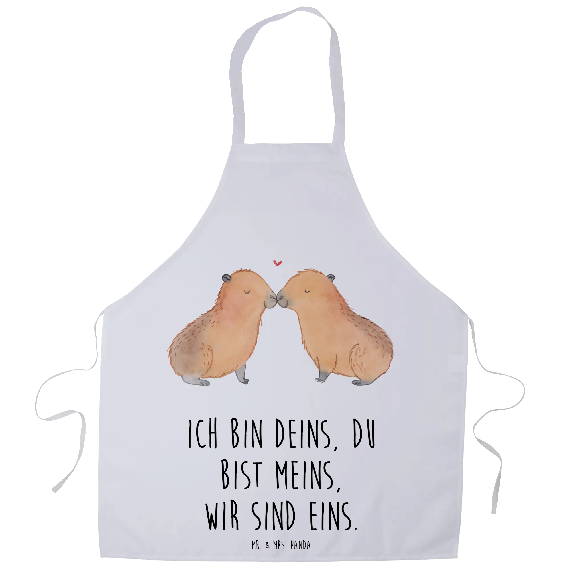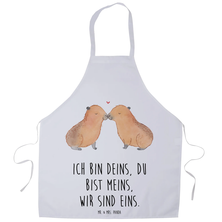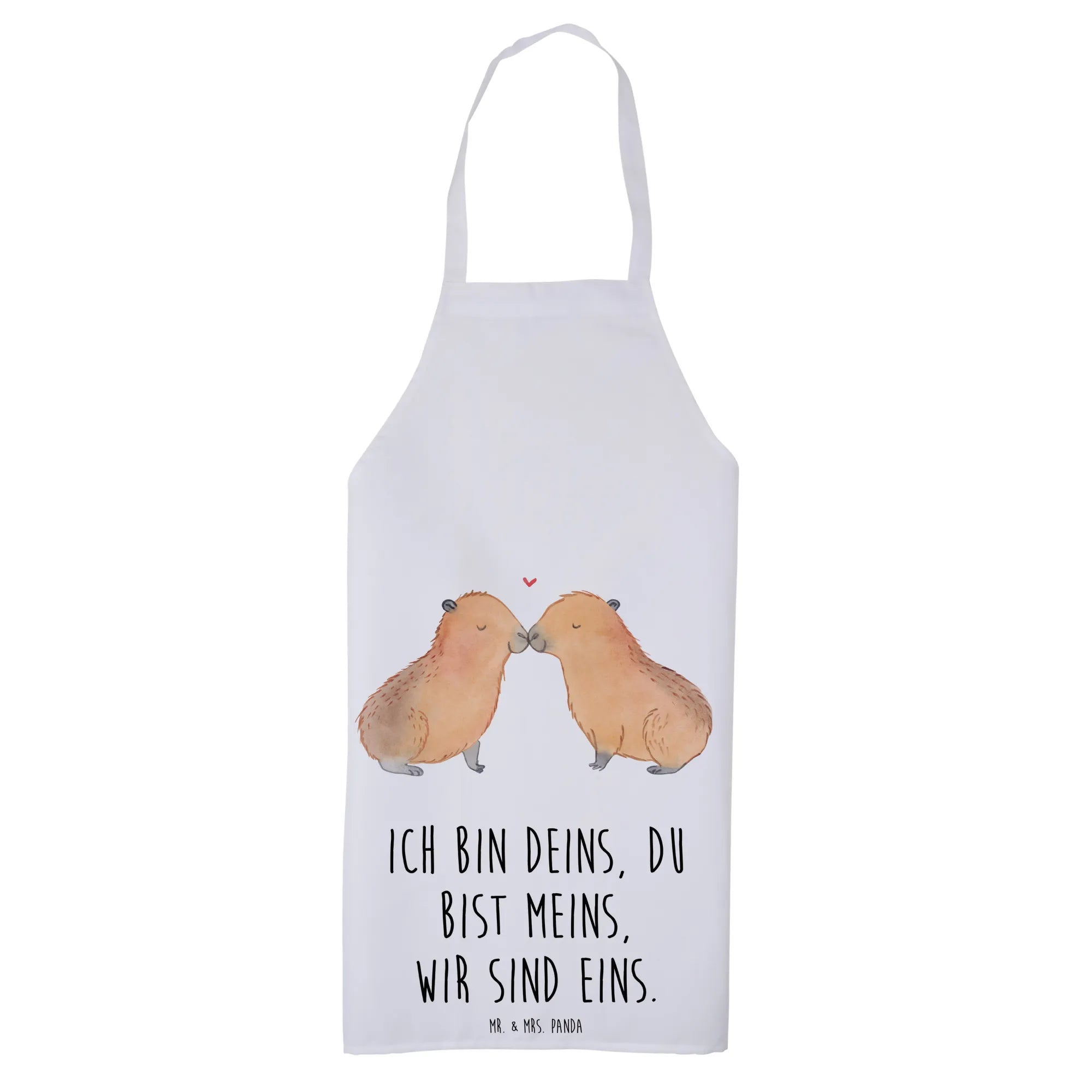 Entdecke die zauberhafte Kochschürze mit dem süßen Motiv der Capybara Liebe von Mr. & Mrs. Panda! Diese wunderschöne Küchenschürze ist nicht nur funktional, sondern auch ein tolles Geschenk für alle, die die Liebe zum Kochen und Backen teilen. Mit dem liebevoll handgezeichneten Design von zwei Kuschel-Capybaras, die sich zärtlich küssen und dabei ein Herz bilden, bringt diese Schürze Freude in jede Küche.