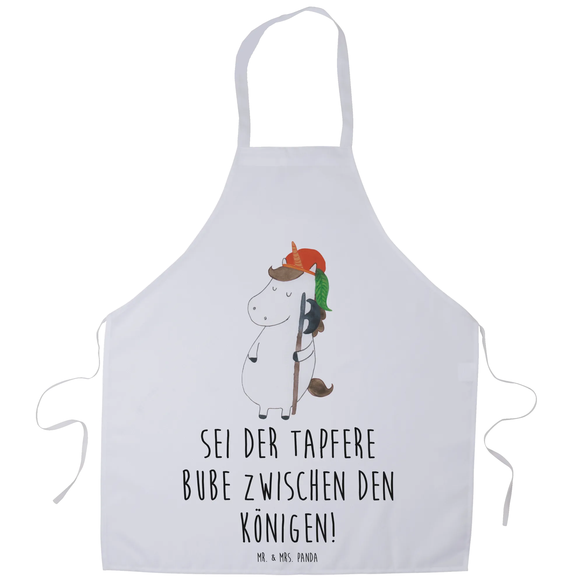 Du liebst kochen und Einhörner? Dann ist die Kochschürze "Einhorn Bube" aus der zauberhaften Einhorn-Kollektion von Mr. & Mrs. Panda genau das richtige für dich! Diese wunderschöne Kochschürze ist hochwertig bedruckt mit einem freundlich wirkenden Einhorn, das einen Helm trägt und dich mit seinem kindlich-charmanten Charakter zum Schmunzeln bringt. Auf der Schürze steht der Slogan "Sei der tapfere Bube zwischen den Königen!", der dich und deine Freunde ermutigt, bei jeder Zubereitung das Beste zu geben.