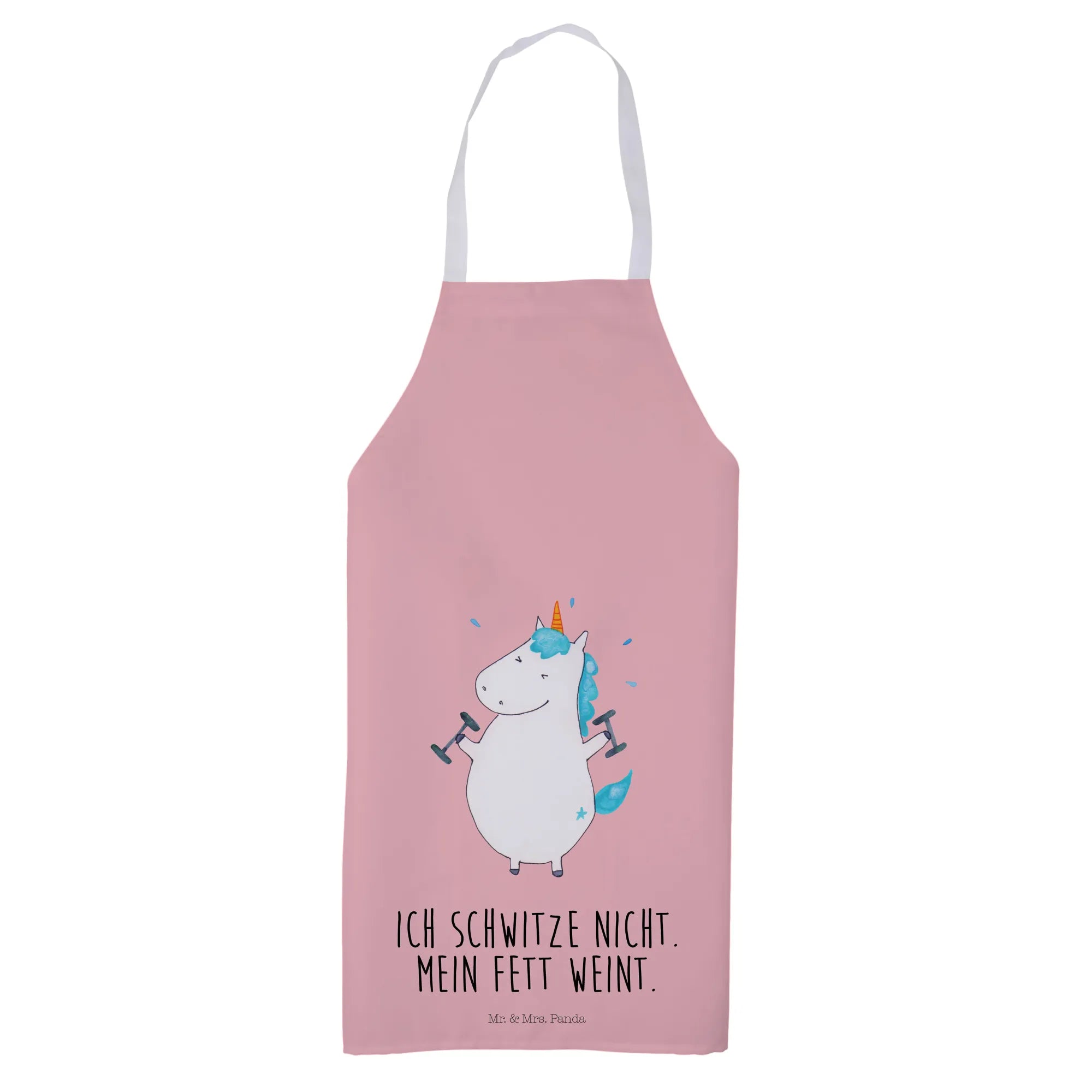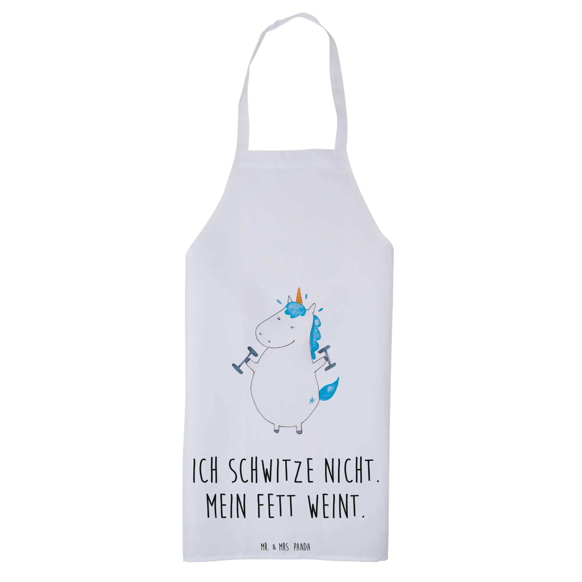 Die Kochschürze Einhorn Fitness von Mr. & Mrs. Panda ist ein absolutes Must-Have für alle Fitness-Fans und jene, die den Spaß beim Kochen und Grillen lieben! Mit dem süßen Einhorn-Motiv und dem witzigen Spruch "Ich schwitze nicht. Mein Fett weint." bringt diese Schürze ein Lächeln in jede Küche.