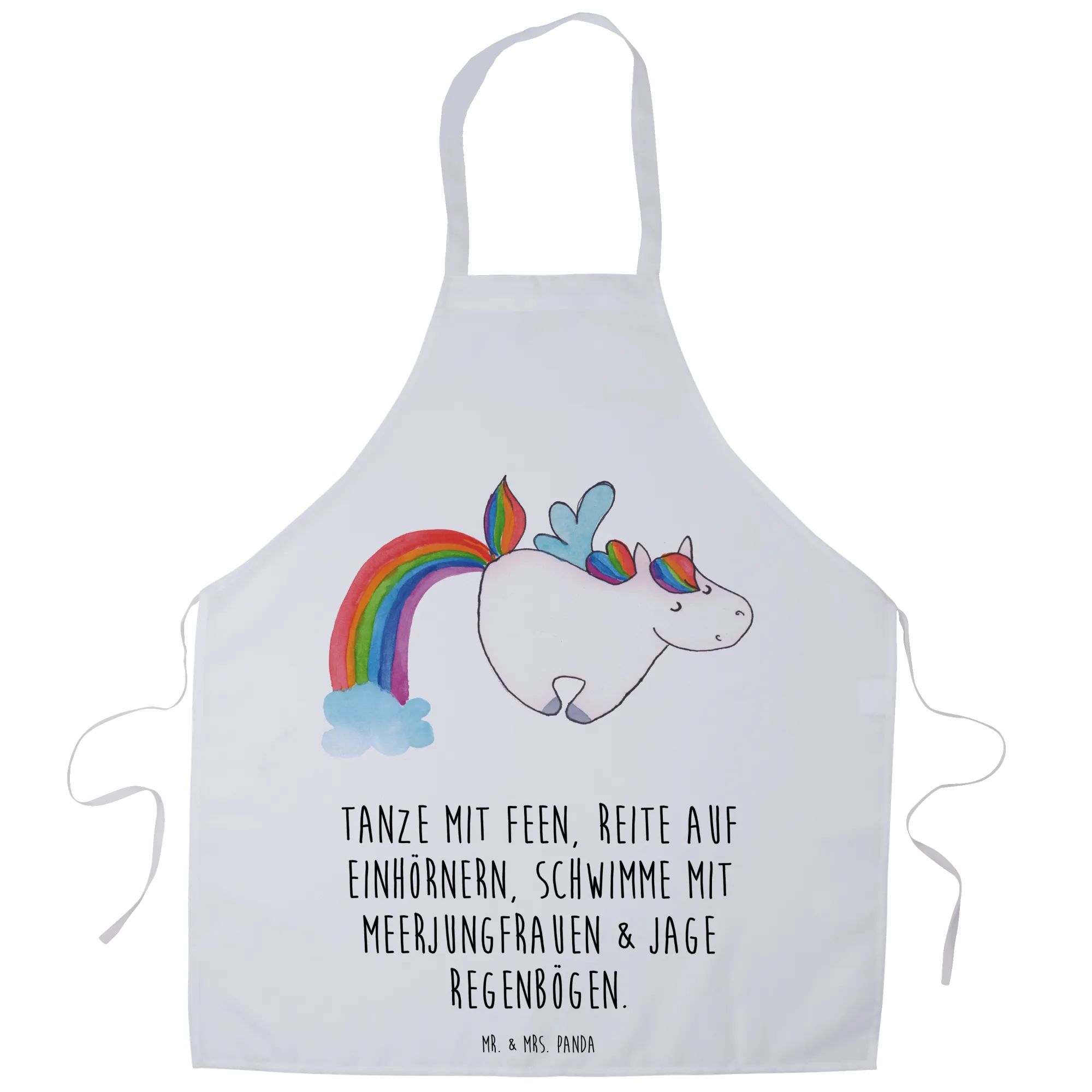 Du liebst Einhörner und suchst eine Küchenschürze, die Herzen höherschlagen lässt? Unsere Einhorn Kochschürze bringt Magie in Küche, Backstube und an den Grill. Das süße, fliegende Einhorn mit dem liebevollen Spruch „Tanze mit Feen, reite auf Einhörnern, schwimme mit Meerjungfrauen & jage Regenbögen.“ wurde von Mrs. Panda handgezeichnet und zaubert jedem ein Lächeln ins Gesicht. ✨