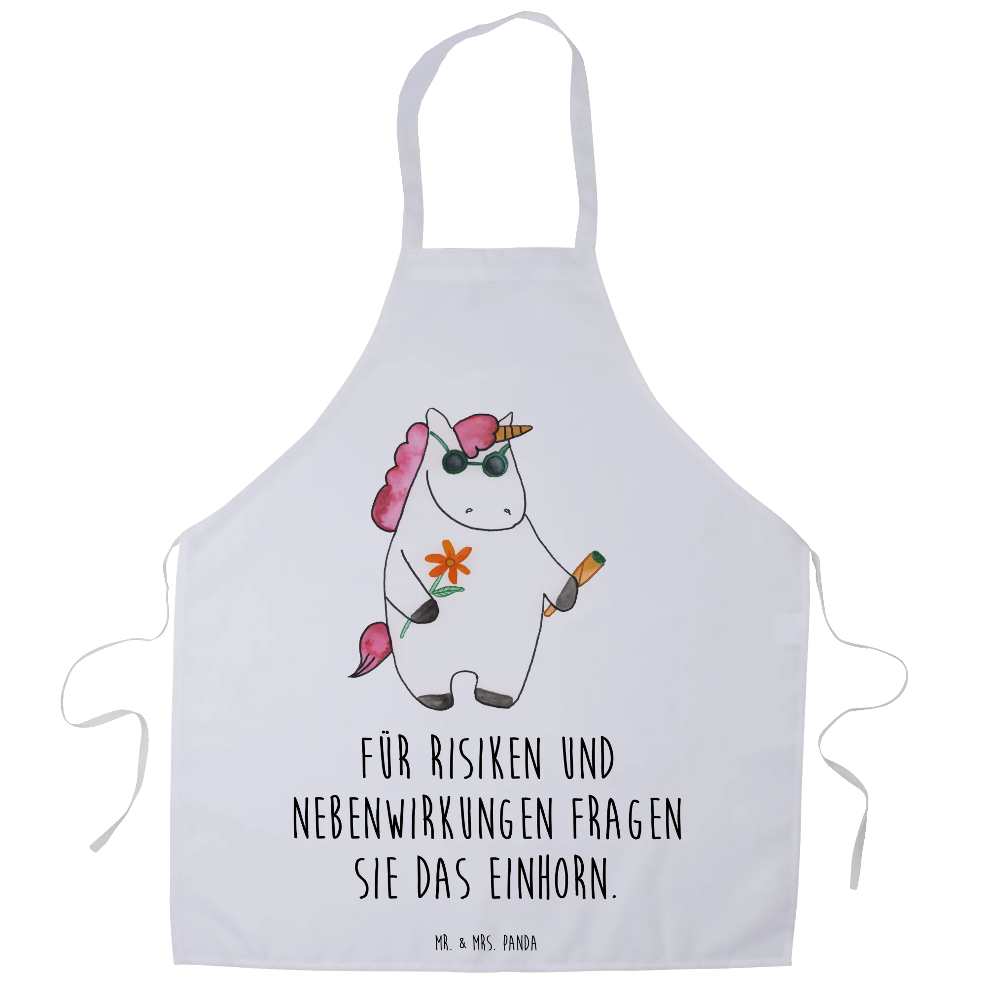 Das witzige Motiv zeigt ein Einhorn mit Sonnenbrille und Joint, das mit dem Slogan „Für Risiken und Nebenwirkungen fragen Sie das Einhorn“ auf humorvolle Weise für gute Laune sorgt. Diese Schürze ist nicht nur ein praktisches Kleidungsstück, sondern auch ein lustiges Accessoire, das Gespräche anregt und die Stimmung hebt. Perfekt für Grillfeste, Partys oder einfach zum Kochen zu Hause, ist sie ein Must-have für jeden Einhorn-Liebhaber.