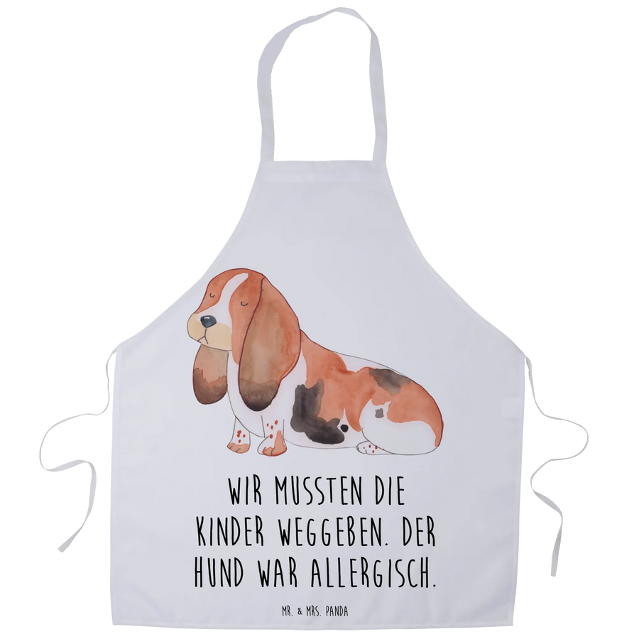 Entdecke die perfekte Kochschürze für alle Hundeliebhaber und Hobbyköche! Diese wunderschöne Kochschürze von Mr. & Mrs. Panda im lebensfrohen Design mit einem süßen Basset Hound Motiv ist ein absolutes Must-Have für alle, die ihre Liebe zu Hunden und zum Kochen auf einzigartige Weise ausdrücken möchten. Mit dem humorvollen Slogan "Wir mussten die Kinder weggeben. Der Hund war allergisch." wird jedes Kochen und Grillen zu einem Schmunzler.