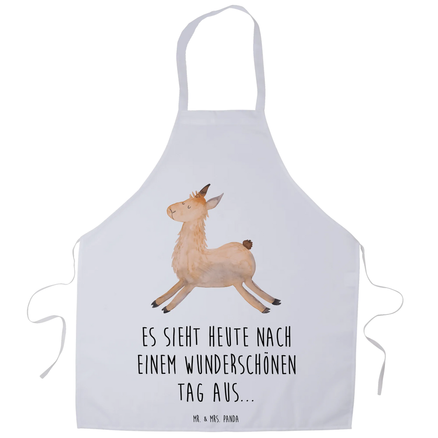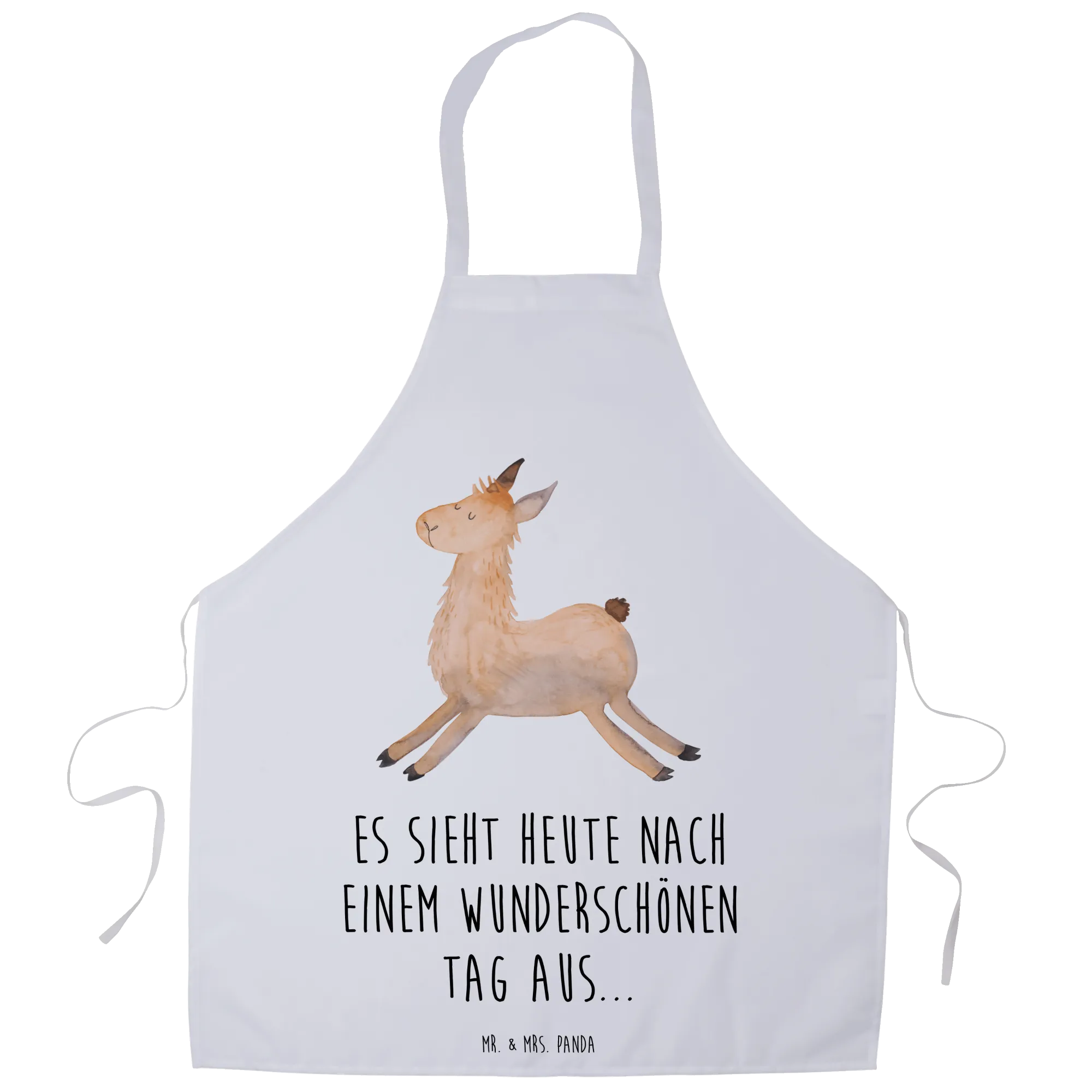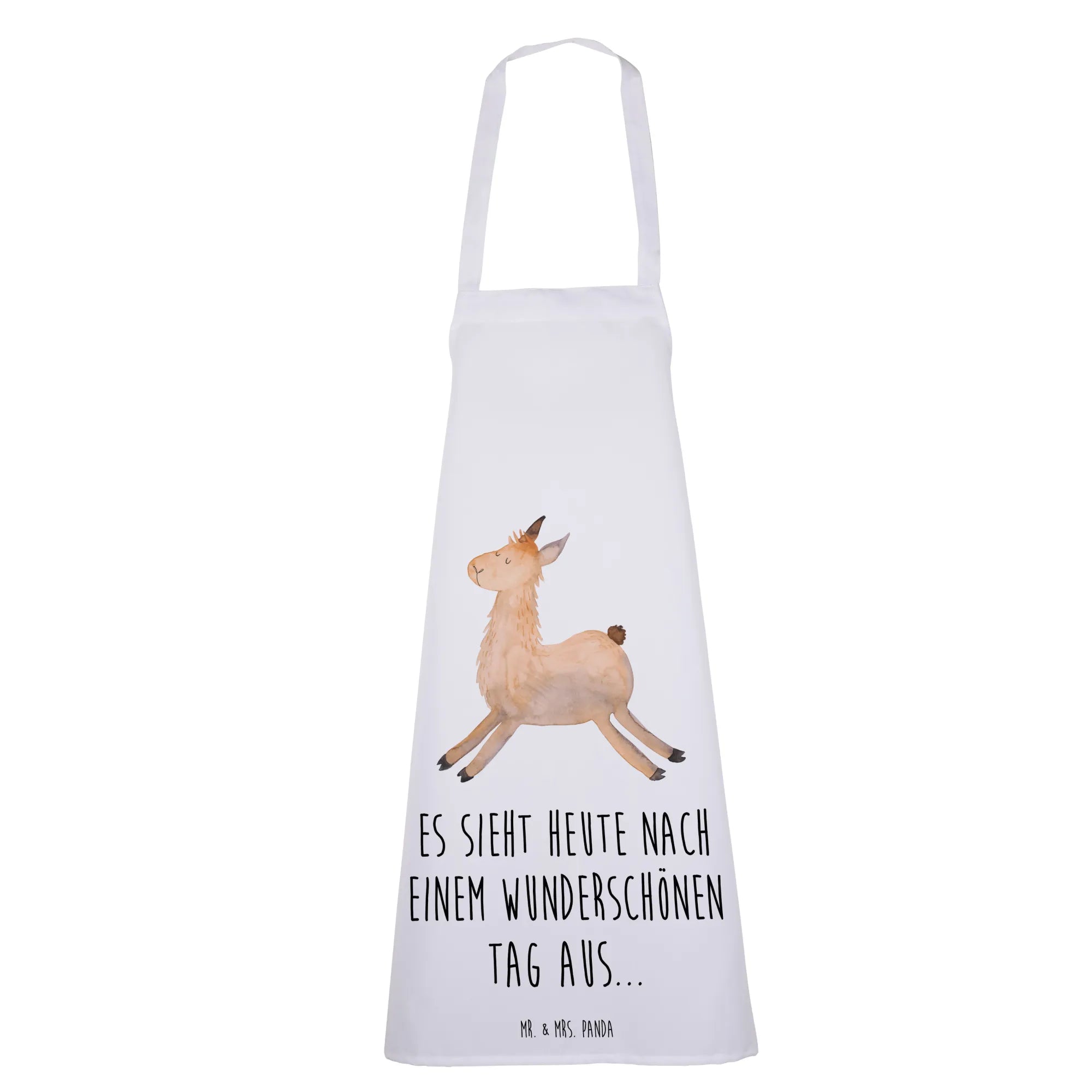 Du liebst es zu kochen und dabei eine gute Zeit zu haben? Dann ist die Kochschürze "Lama springend" aus der Lama - Kollektion von Mr. & Mrs. Panda genau das Richtige für dich! Diese wunderschöne Kochschürze strahlt fröhliche Vibes aus und lässt dich beim Kochen noch mehr glänzen.