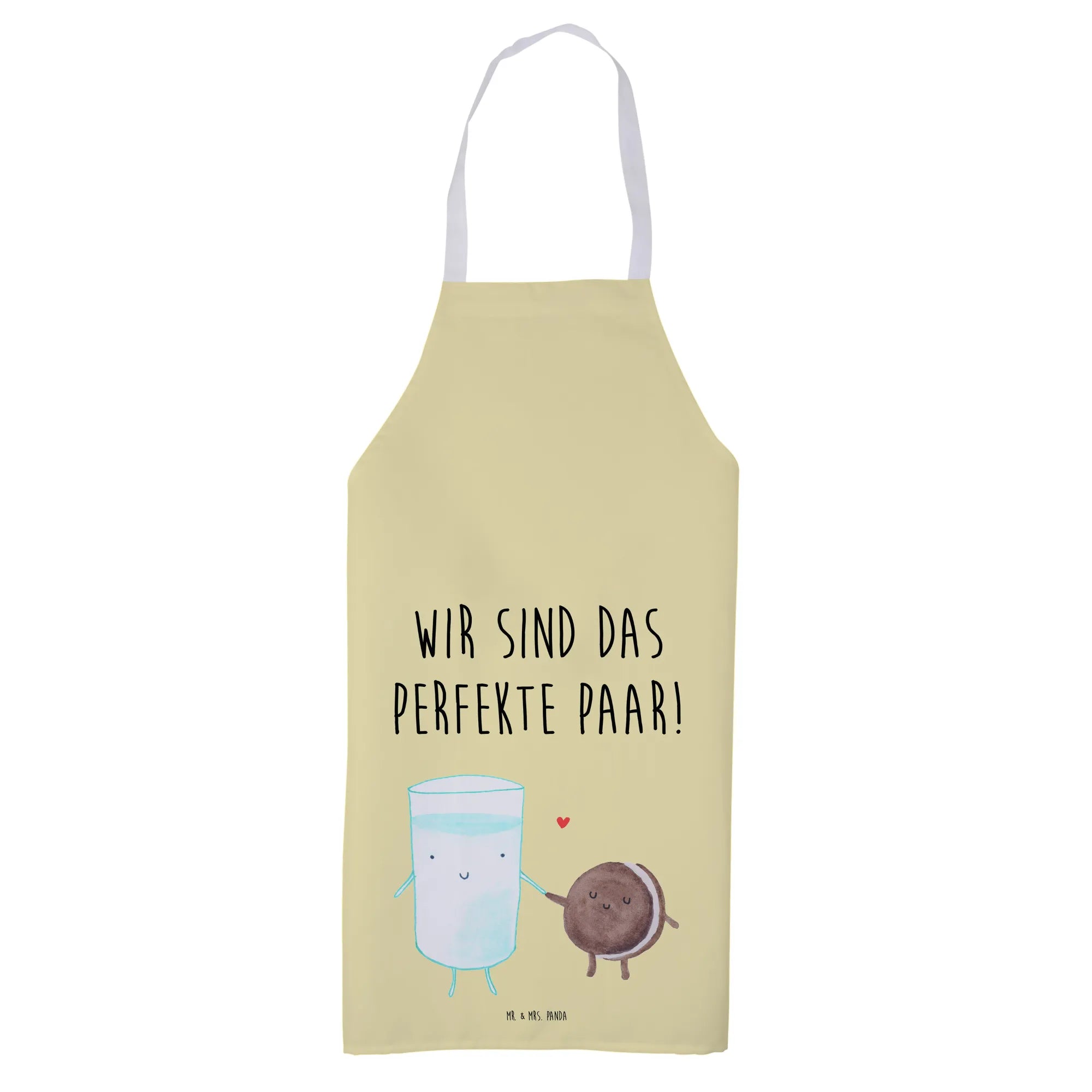 Die Kochschürze "Milch & Keks" von Mr. & Mrs. Panda ist das perfekte Geschenk für alle Naschkatzen und Backliebhaber! Diese bezaubernde Küchenschürze aus der beliebten Small World Kollektion begeistert mit ihrem süßen Design: Ein liebevolles Motiv zeigt ein Glas Milch und einen Keks, die Händchen halten und für gute Laune in der Küche sorgen.
