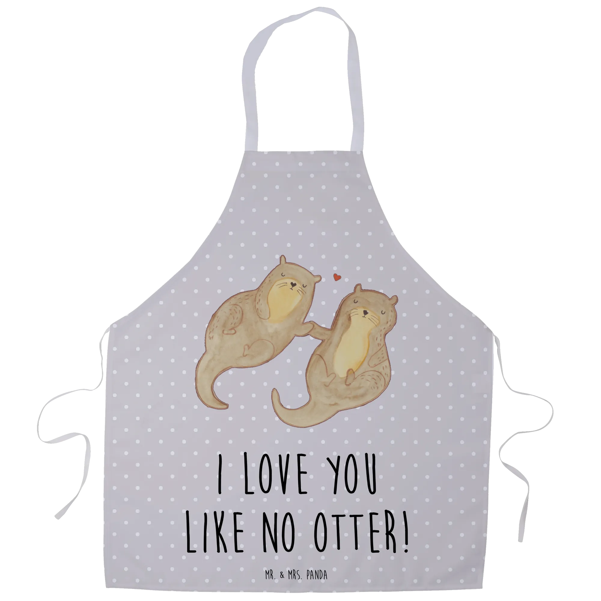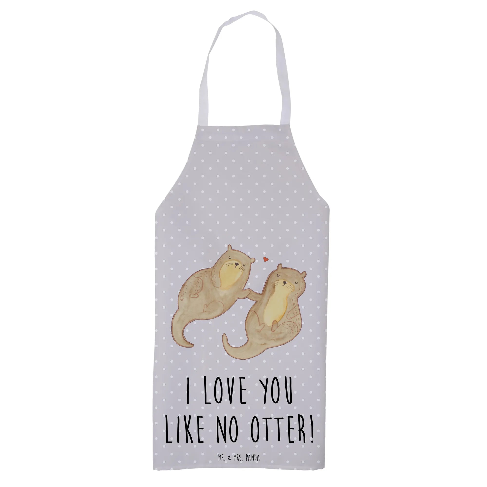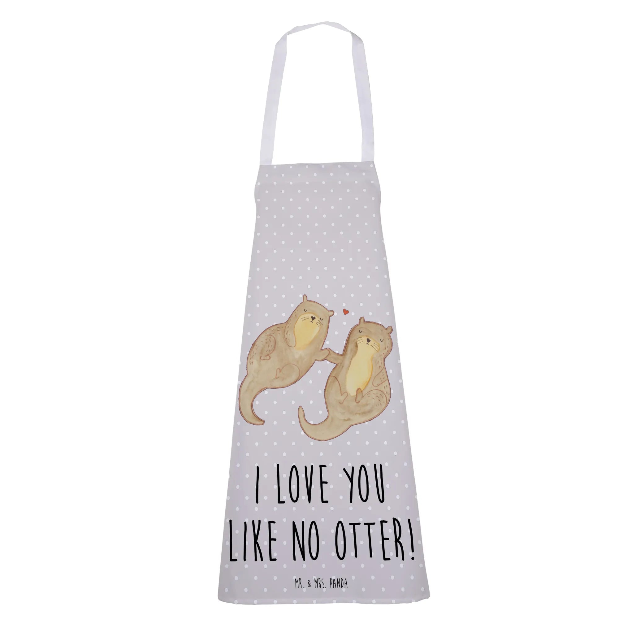 Entdecke die zauberhafte Kochschürze von Mr. & Mrs. Panda, ein absolutes Muss für alle Otter-Liebhaber! Diese wunderschöne küchenschürze zeigt ein niedliches Otterpaar, das Händchen haltend auf dem Rücken schwimmt – einfach herzallerliebst!