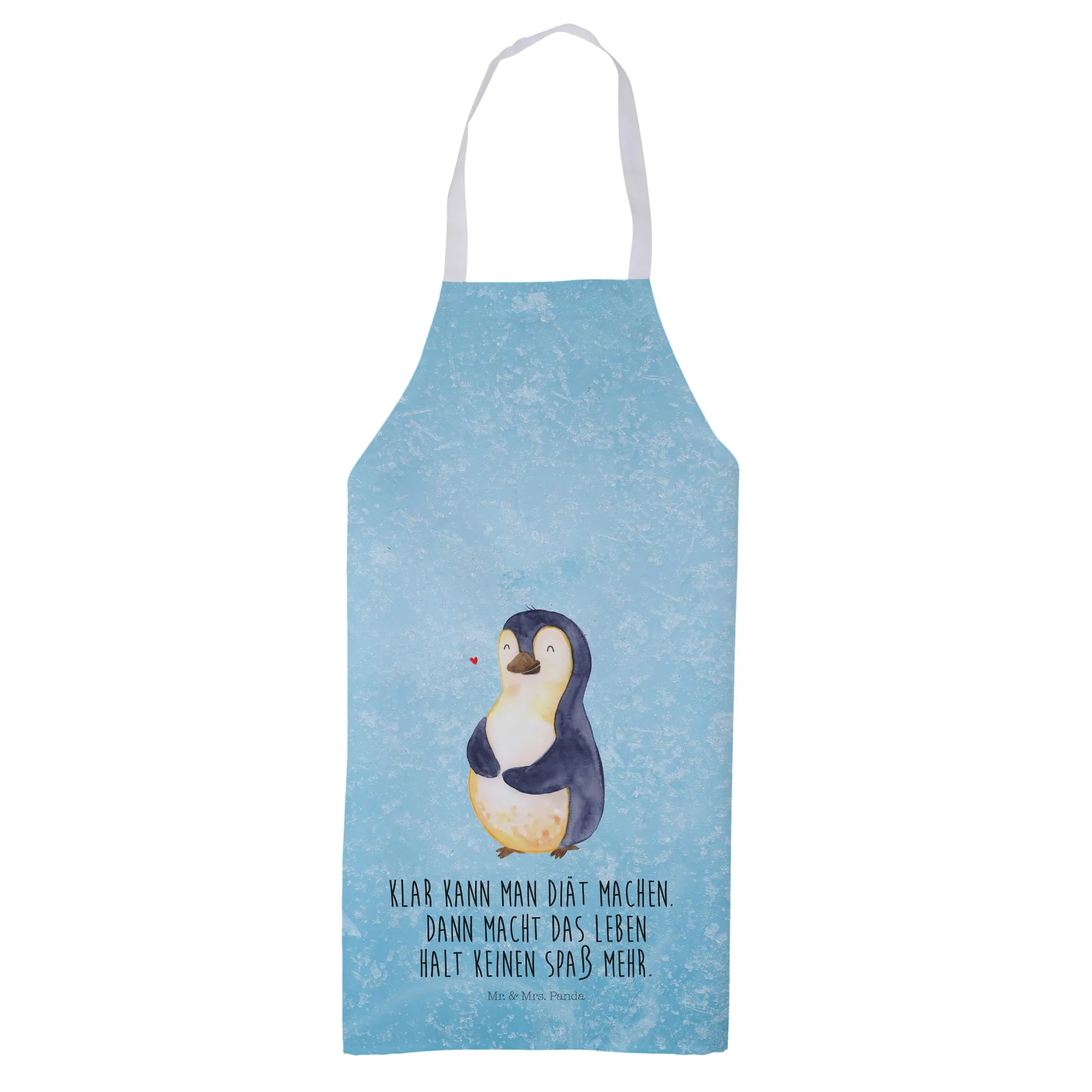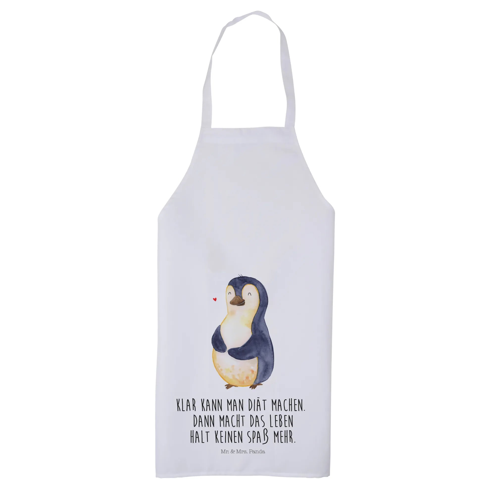 Entdecke die wunderbare Kochschürze mit dem fröhlichen Pinguin-Motiv aus der Pinguin-Kollektion von Mr. & Mrs. Panda! Diese hochwertige Kochschürze ist nicht nur praktisch, sondern auch ein echter Hingucker. Mit einem süßen Pinguin, der sich über seinen dicken Bauch streicht, erinnert sie dich daran, dass du auch ohne strenge Diäten glücklich sein kannst. Der Slogan "Klar kann man Diät machen. Dann macht das Leben halt keinen Spaß mehr" bringt nicht nur ein Lächeln auf dein Gesicht, sondern motiviert dich auch, das Leben zu genießen.