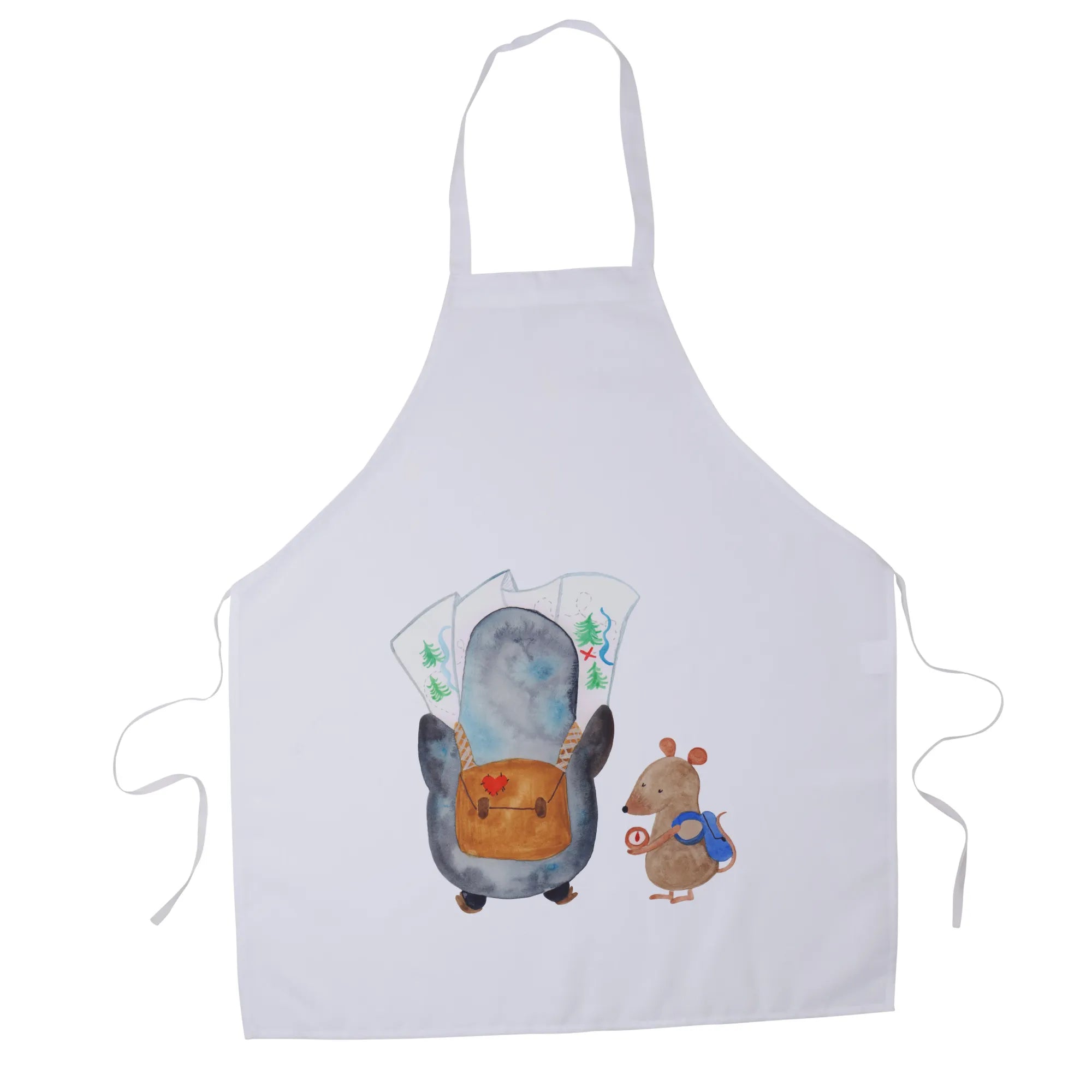 Kochschürze Pinguin & Maus Wanderer - mit Spruch - Weiß